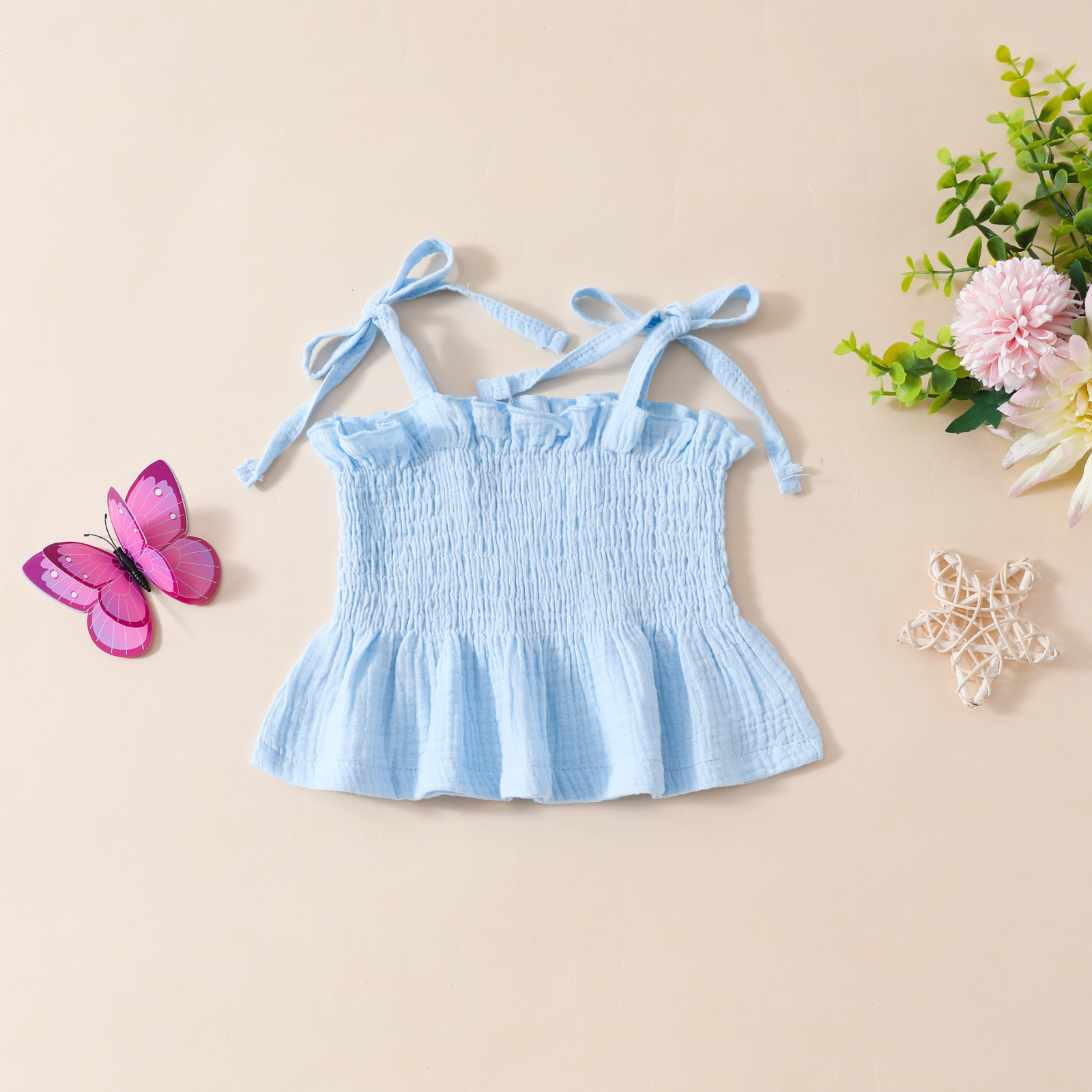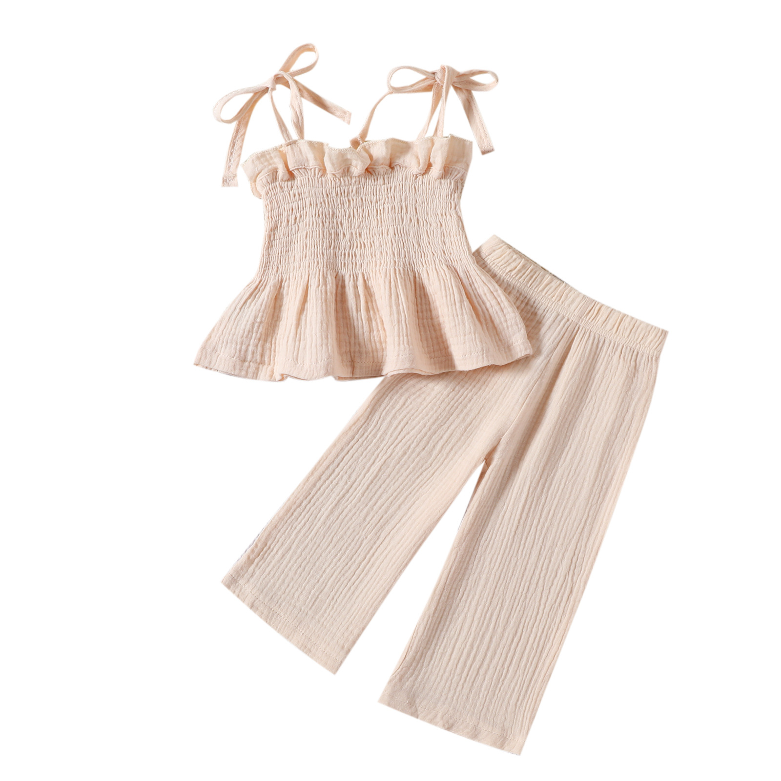 2024 새로운 0-3 세 아기 간단한 캐주얼 스타일 스트랩 탑 스트레이트 바지 소녀 솔리드 컬러 세트