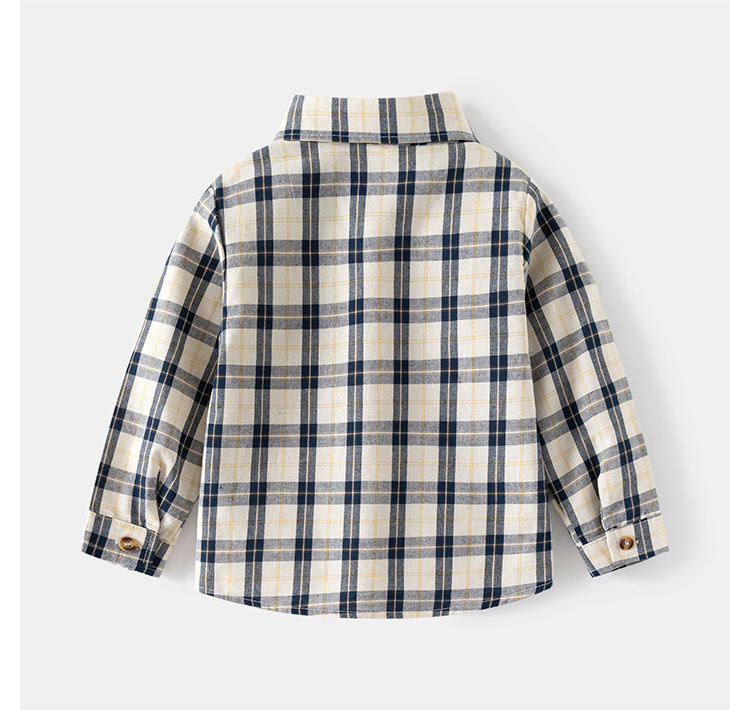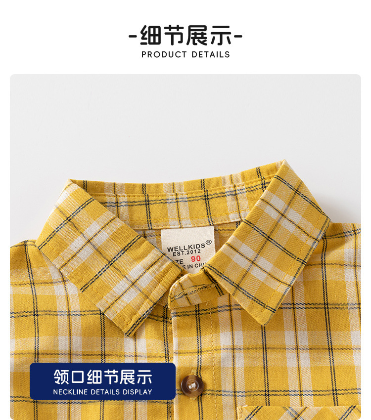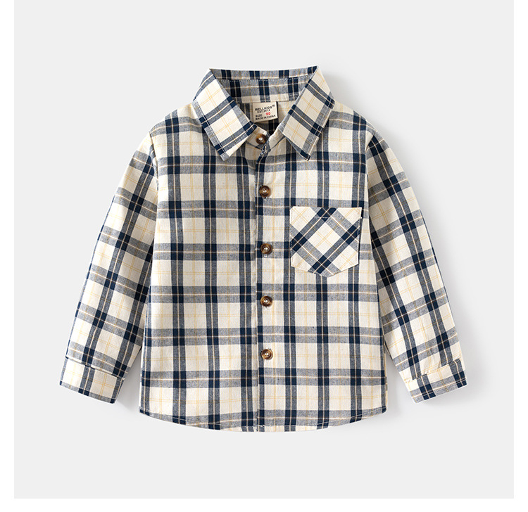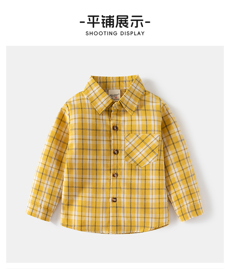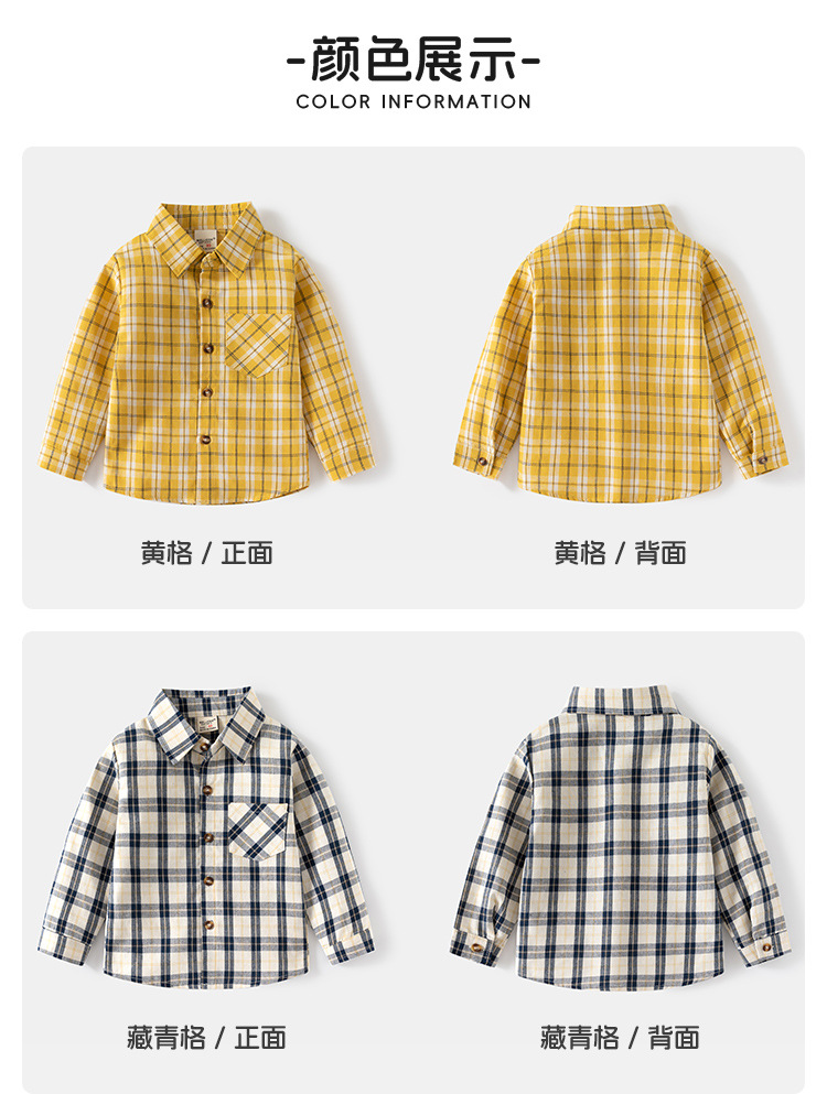 2024 봄 새 소년의 긴팔 체크 무늬 셔츠 어린이 얇은 옷깃 탑 아동복 도매 원피스 배달스토어 가기