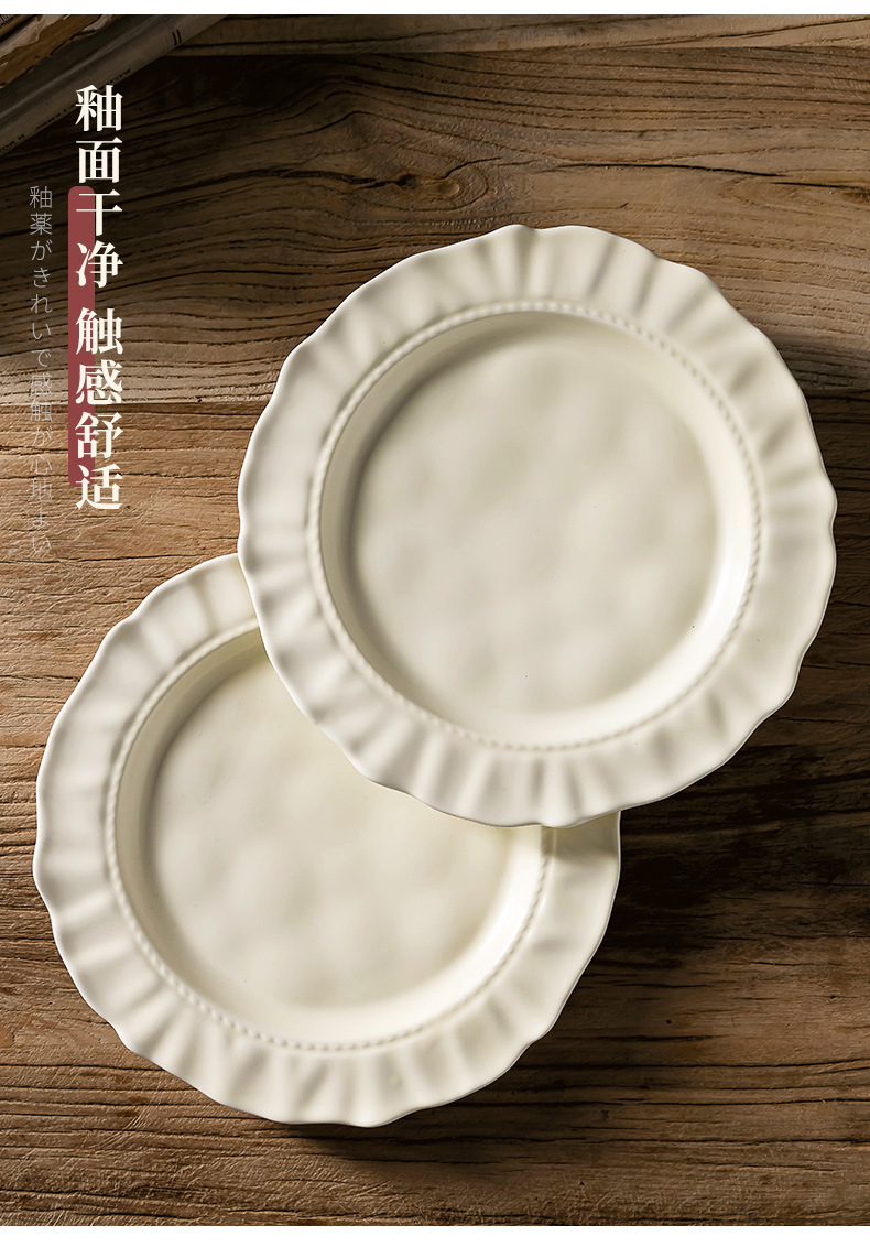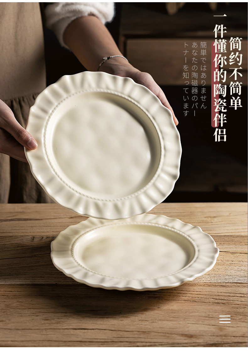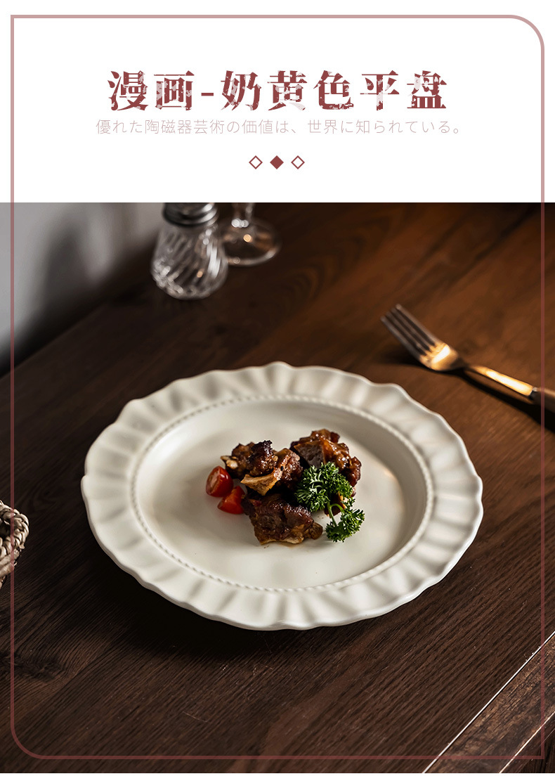 솔리드 컬러 크림 시리즈 세라믹 플레이트 고급 디저트 플레이트 레트로 가정용 Pancagette 플레이트 과일 플레이트 접시 접시