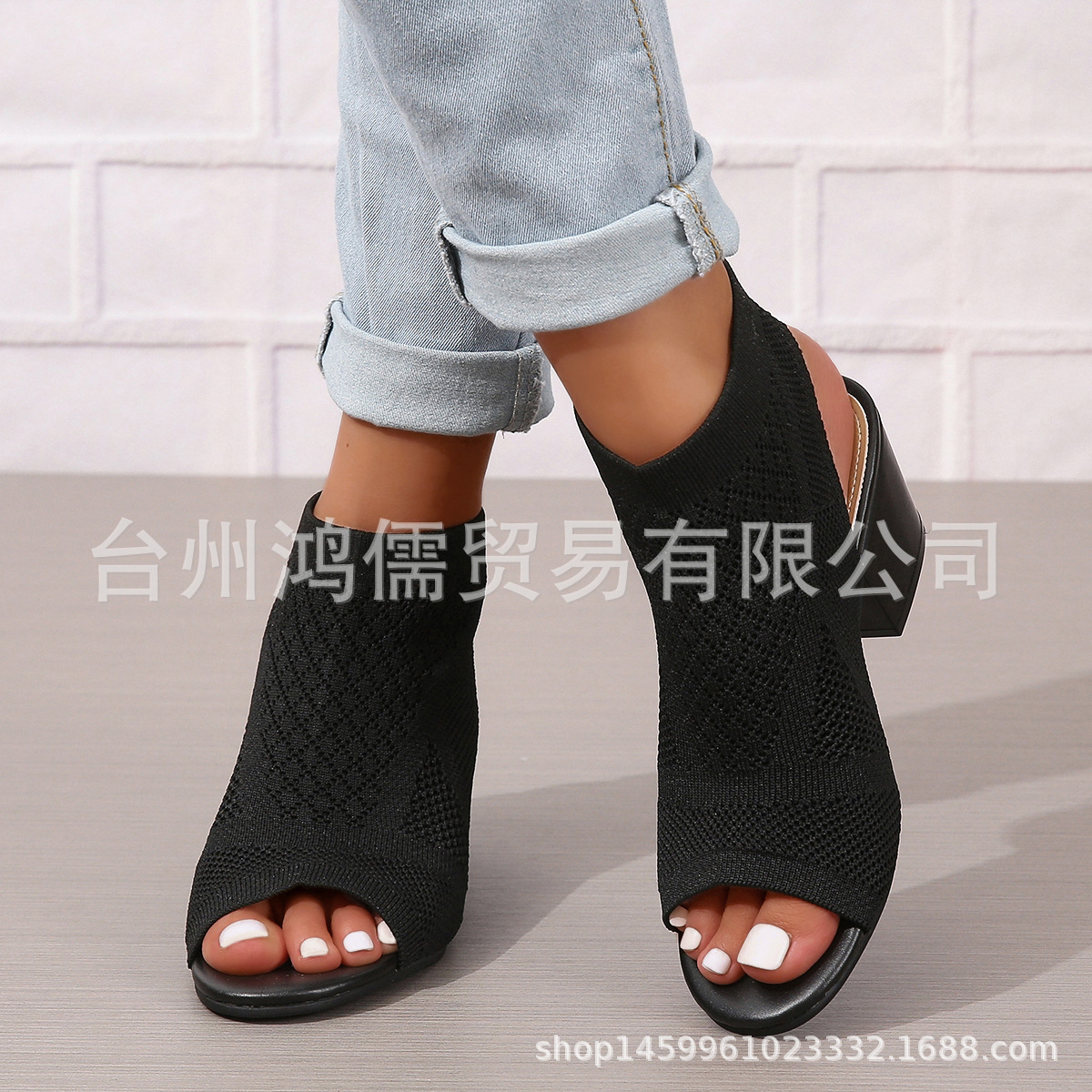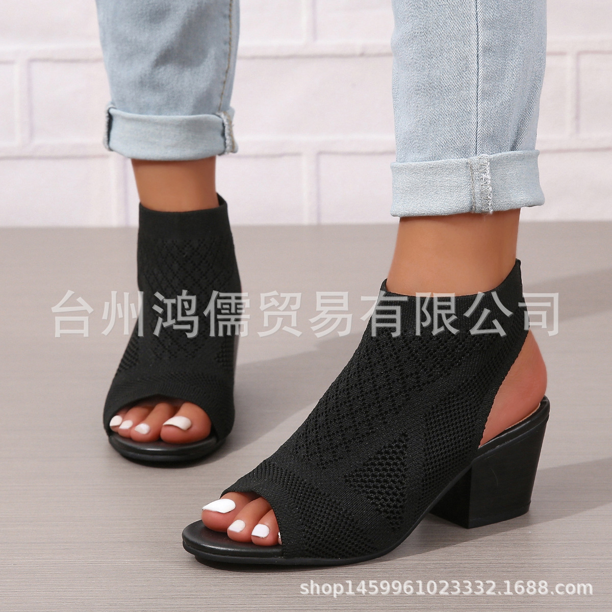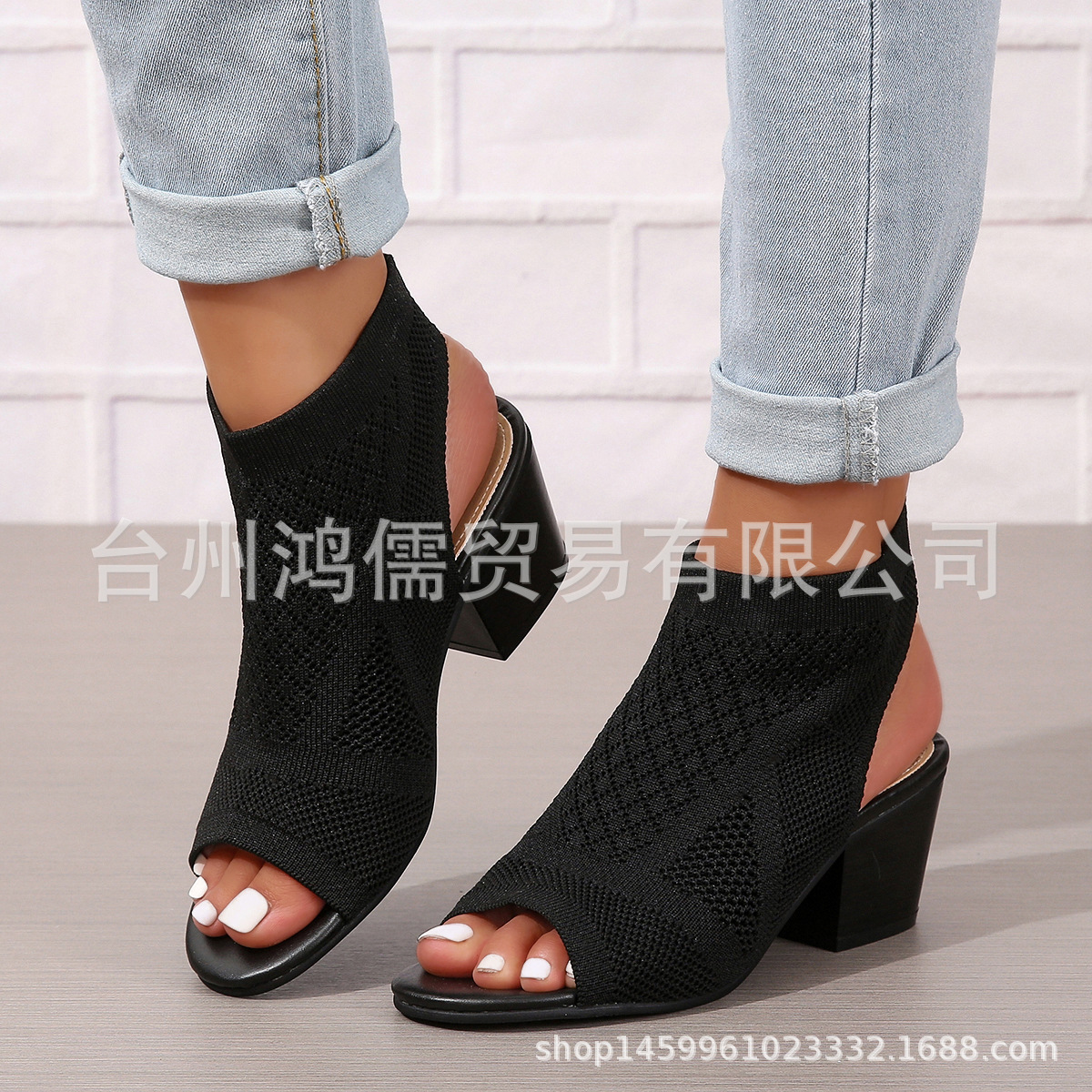 재고 새로운 유럽과 미국의 패션 플러스 사이즈 청키 한 뒤꿈치 여성 샌들 대외 무역 여성 슬립 온 하이힐 샌들