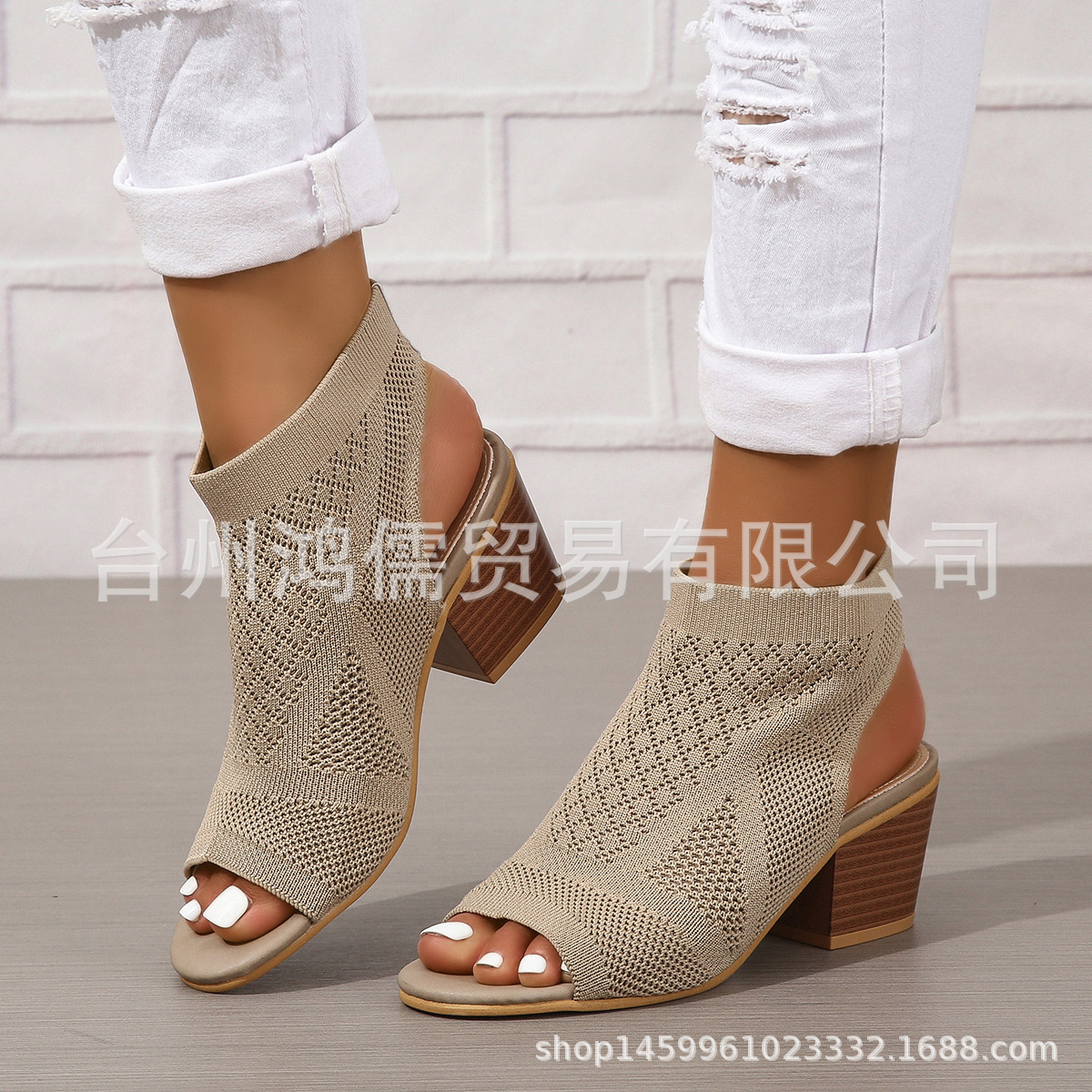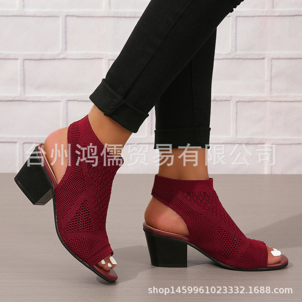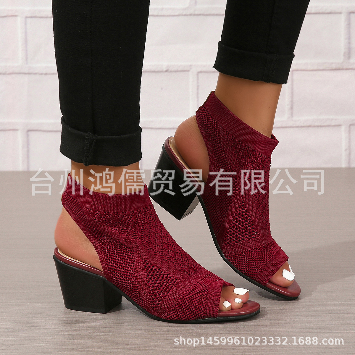 재고 새로운 유럽과 미국의 패션 플러스 사이즈 청키 한 뒤꿈치 여성 샌들 대외 무역 여성 슬립 온 하이힐 샌들