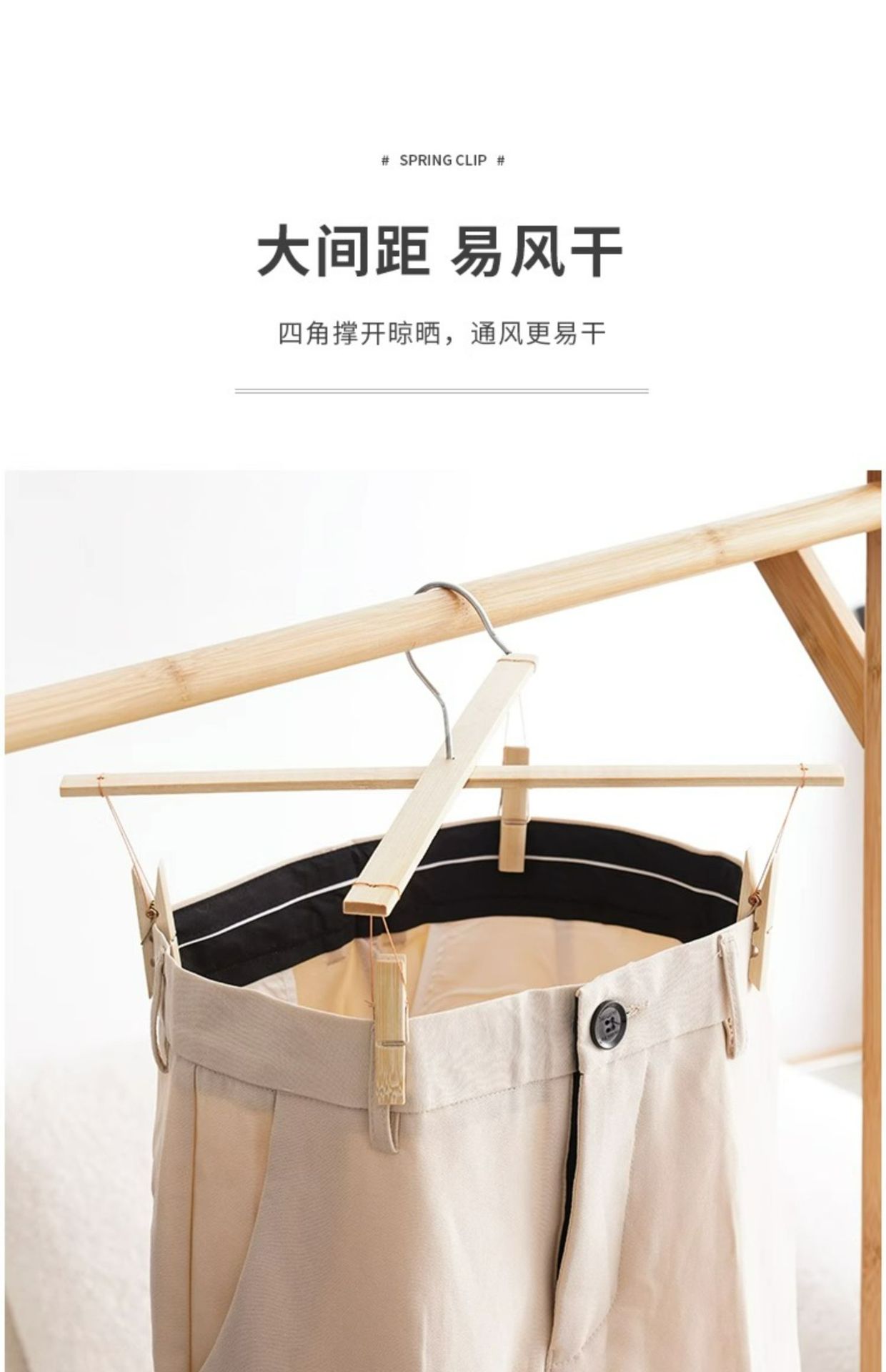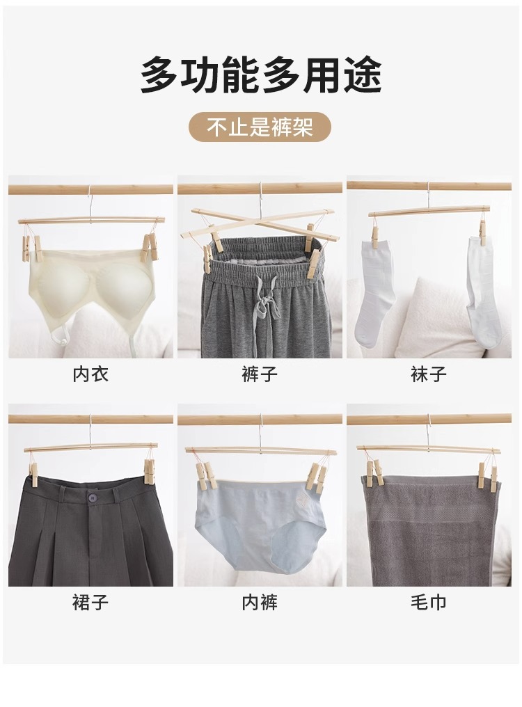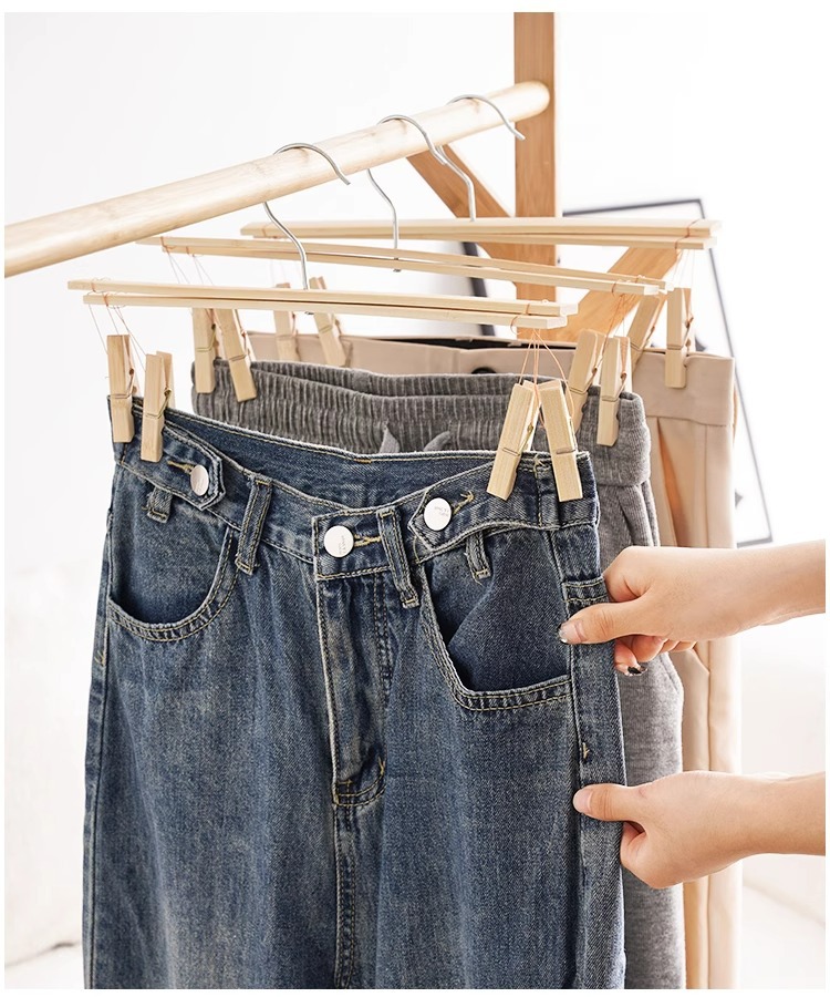 구식 대나무 바지 랙 4 개 바지 클립 가정용 원활한 바지 교수형 특수 대나무 랙 크로스 행거 건조 클립