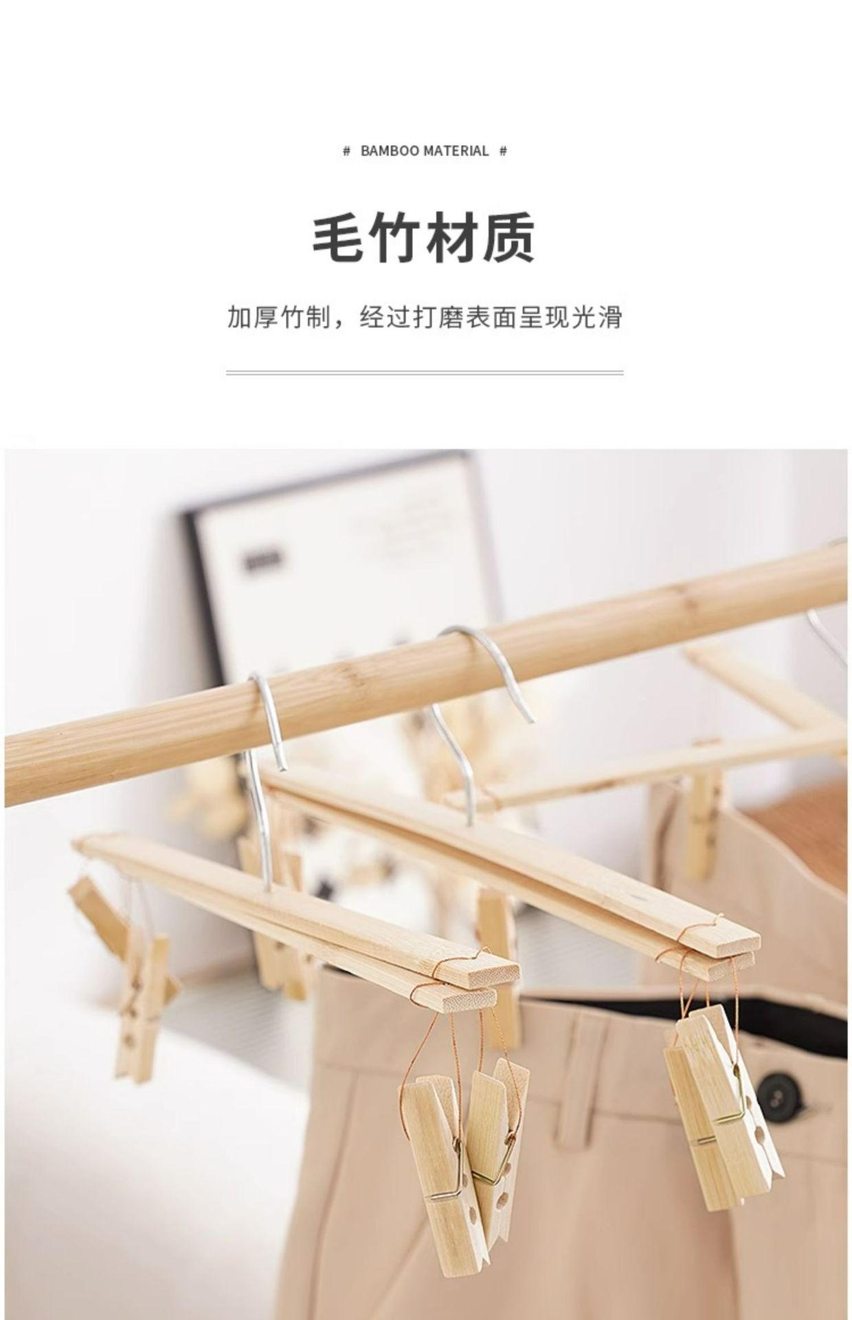• 4 대나무 바지 랙 [1 팩] 미끄럼 방지 및 흔적 없음
