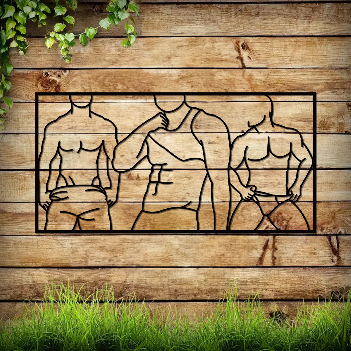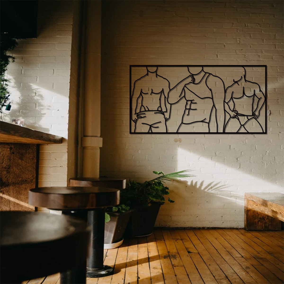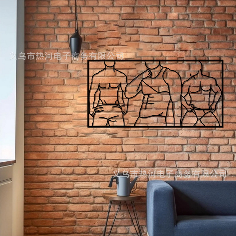 누드 맨 금속 벽 교수형 현대 남성 금속 라인 아트 독특한 침실 장식