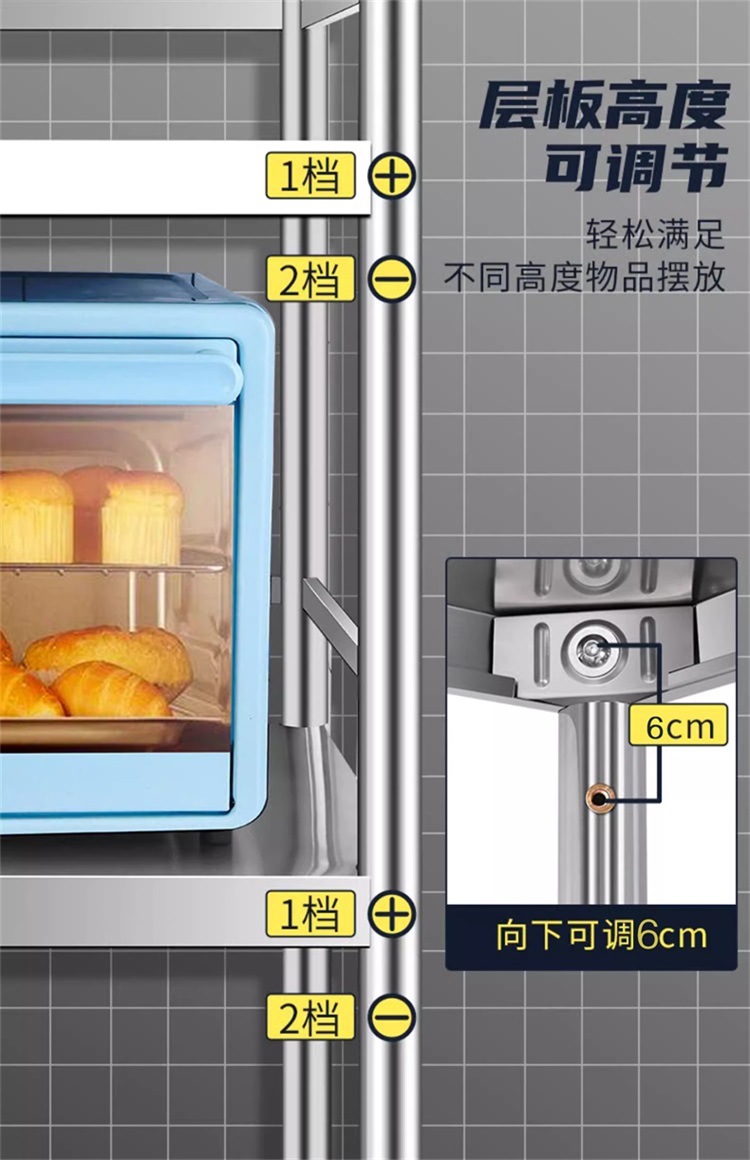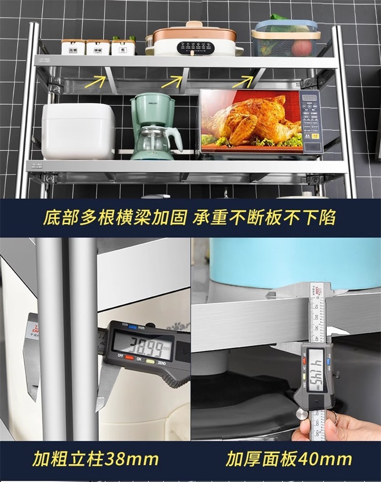 304 스테인레스 스틸 주방 스토리지 랙 바닥 다층 다기능 전자 레인지 스토리지 랙 포트 랙 캐비닛 스토리지 랙