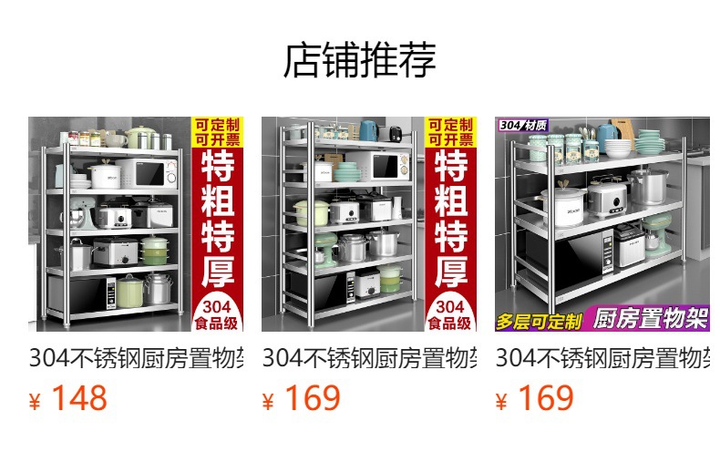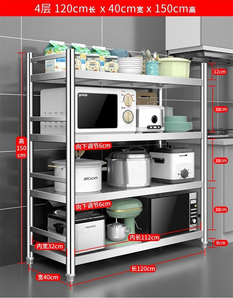 304 스테인레스 스틸 주방 스토리지 랙 바닥 다층 다기능 전자 레인지 스토리지 랙 포트 랙 캐비닛 스토리지 랙스토어 가기