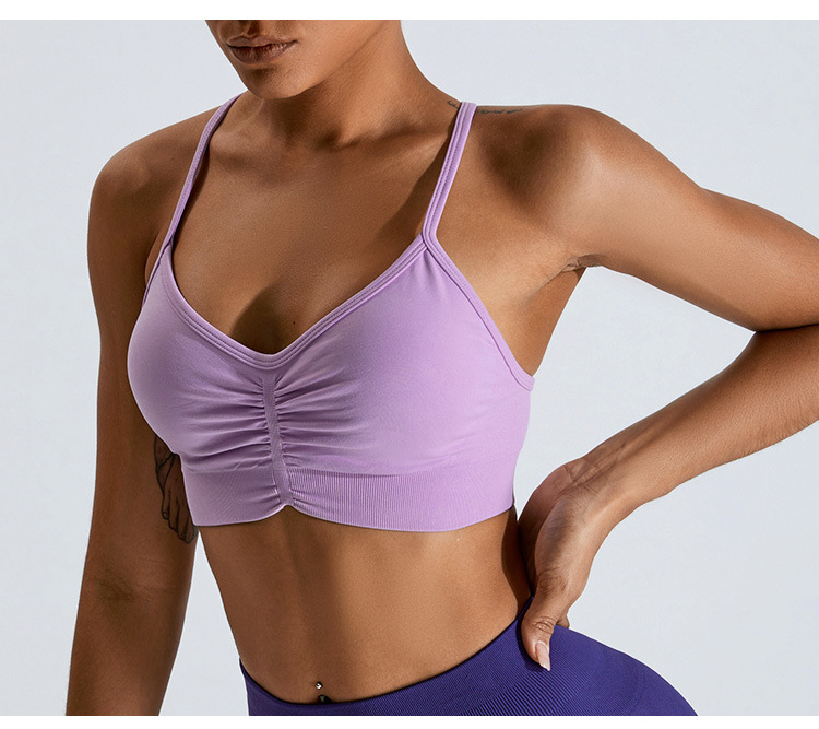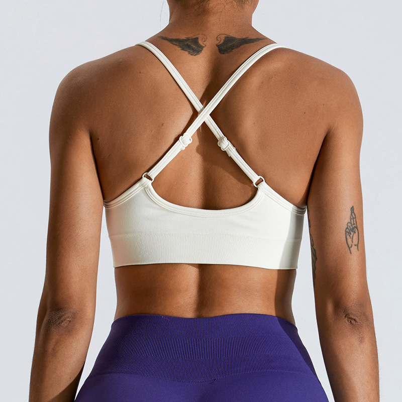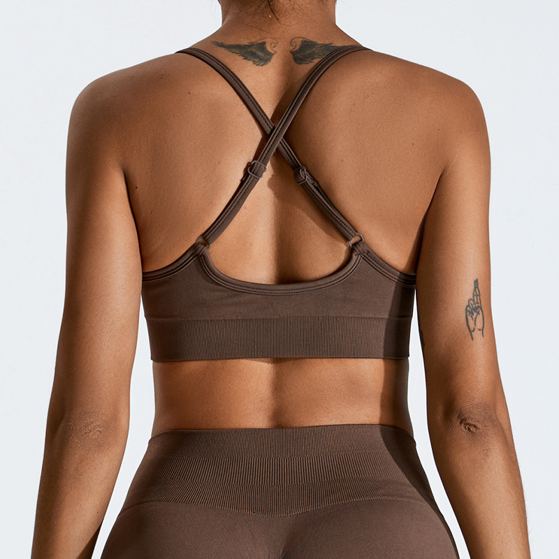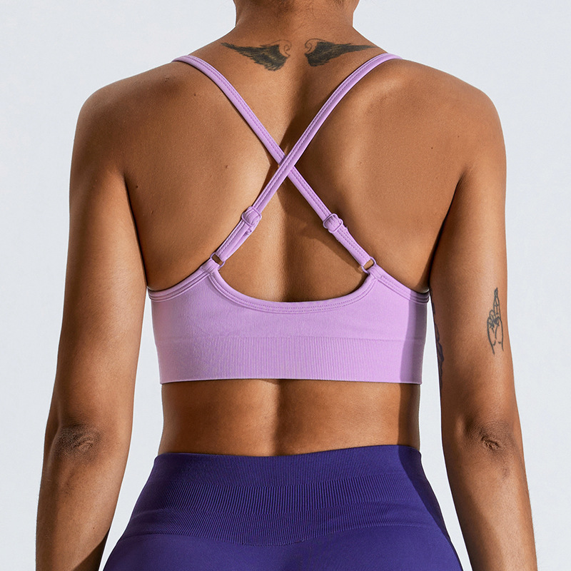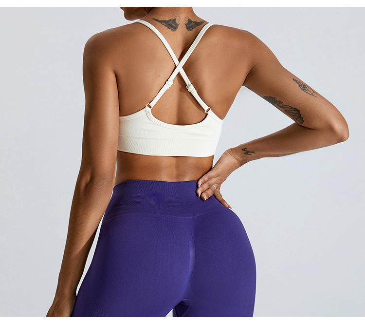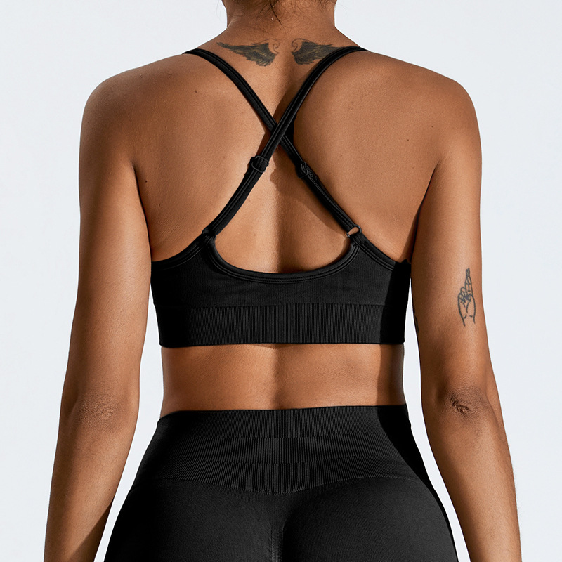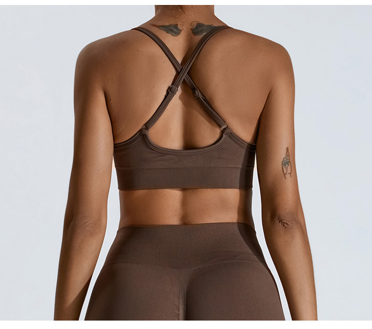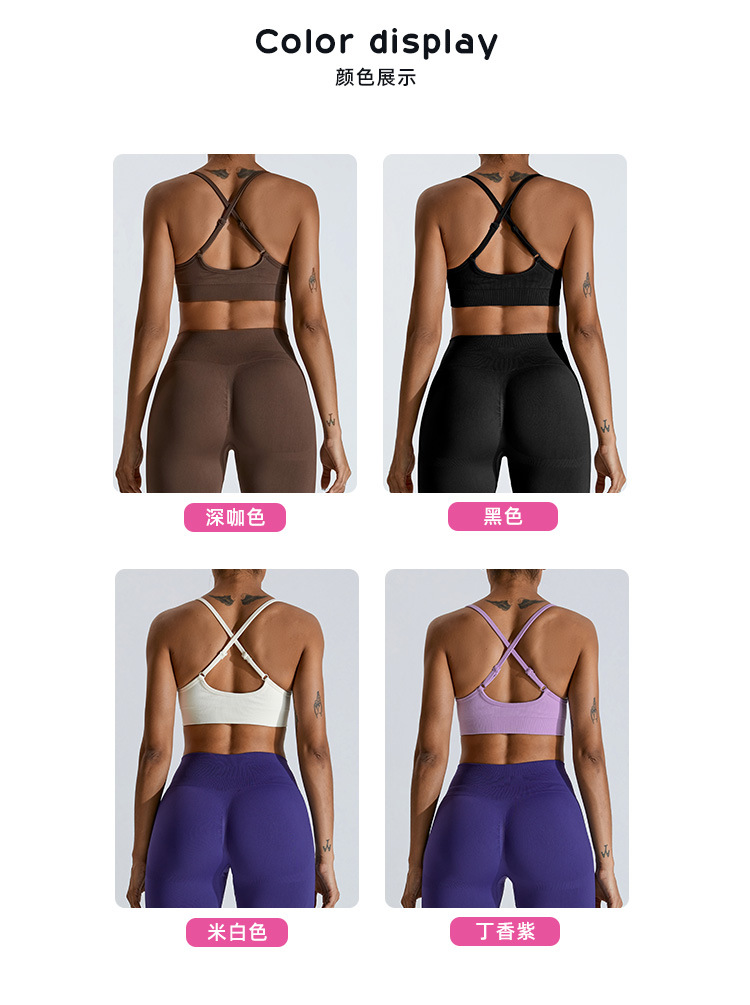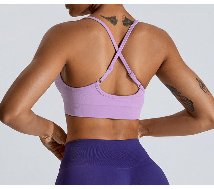 국경 간 새로운 원활한 스포츠 속옷 여성 크로스 백 요가 조끼 높은 탄성 야외 달리기 운동 의류 탑