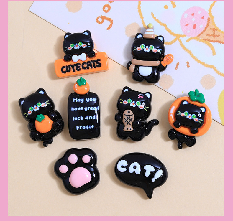 어두운 오렌지 고양이 만화 크림 접착제 수지 액세서리 diy 보석 소재 수제 신발 버클 펜던트 액세서리스토어 가기