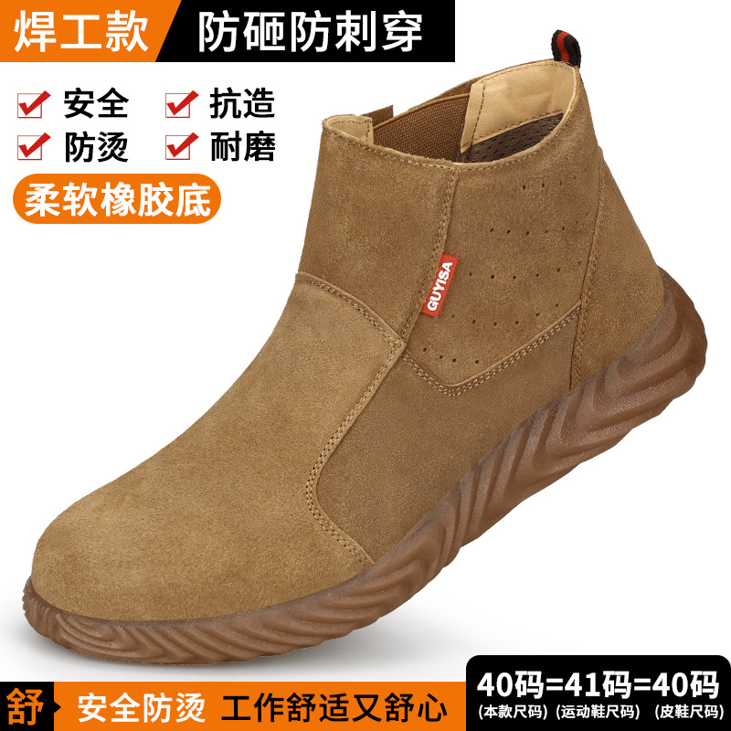 용접 하이탑 여름 노동 보호 신발, 파손 방지, 펑크 방지, 고온 방지, 화상 방지 용접기 신발, 강철 발가락 작업 안전 신발스토어 가기