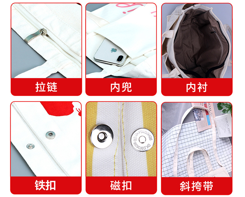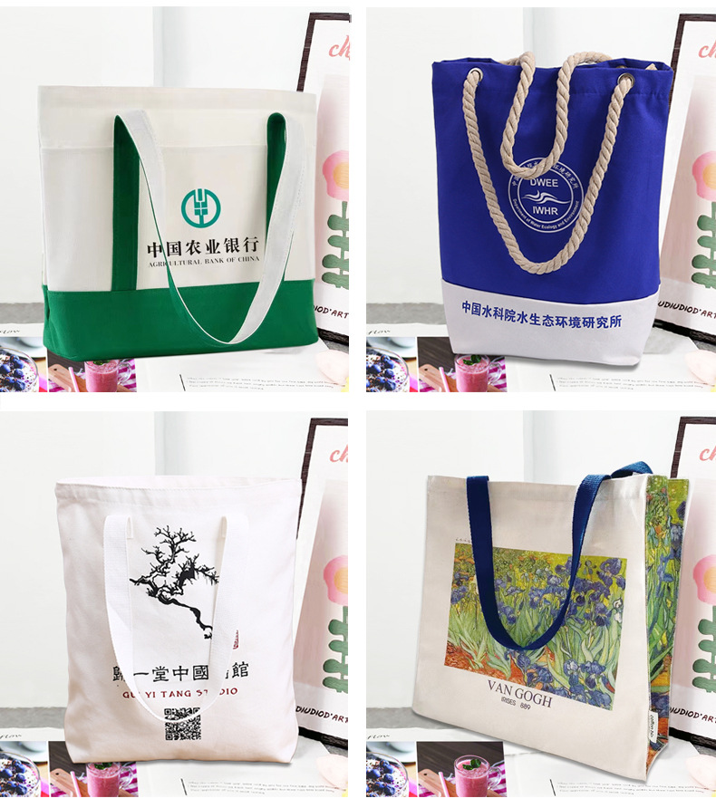 캔버스 가방 맞춤 로고 패턴 제작 캔버스 백 맞춤 토트백 지퍼 질감 있는 손잡이 수납 면 가방스토어 가기