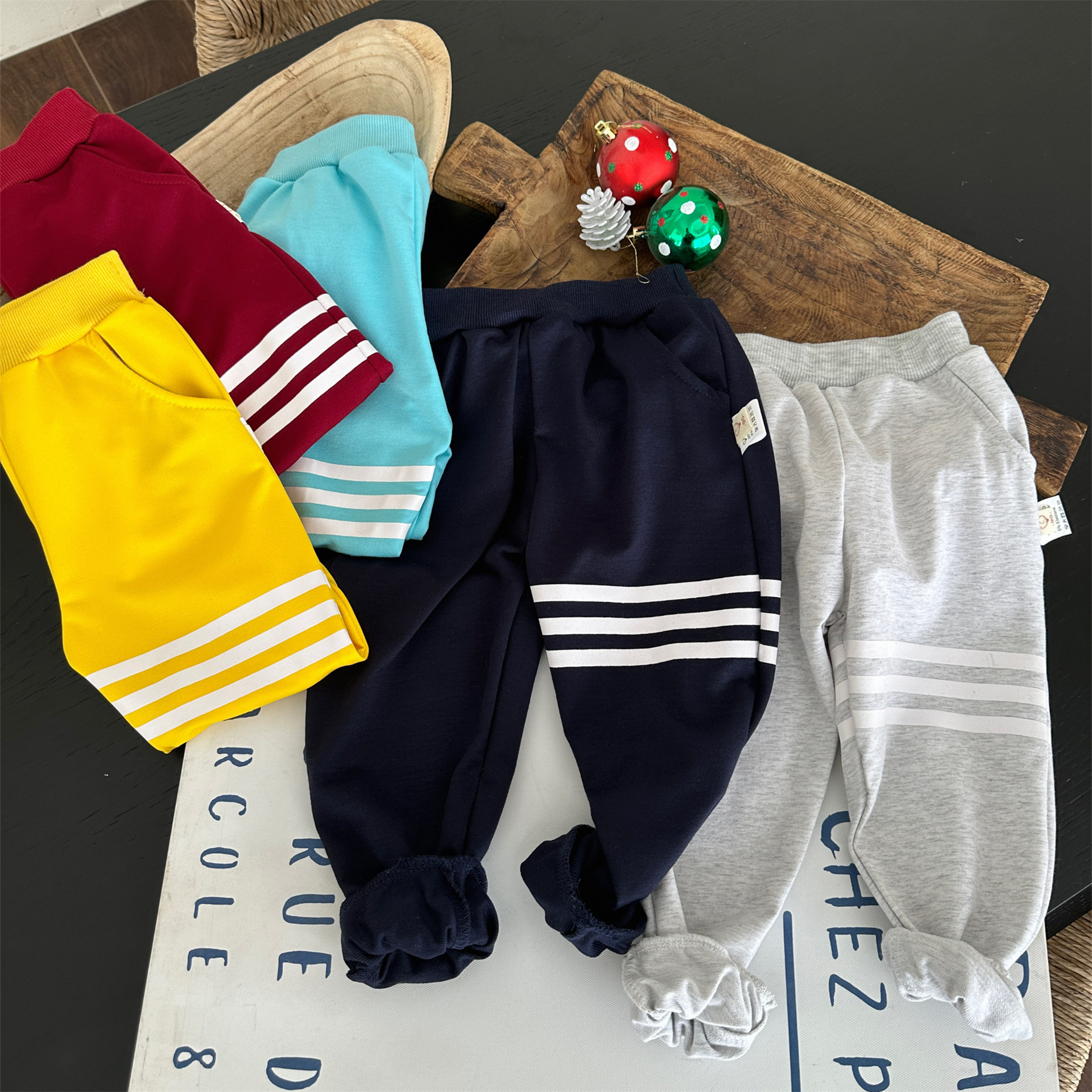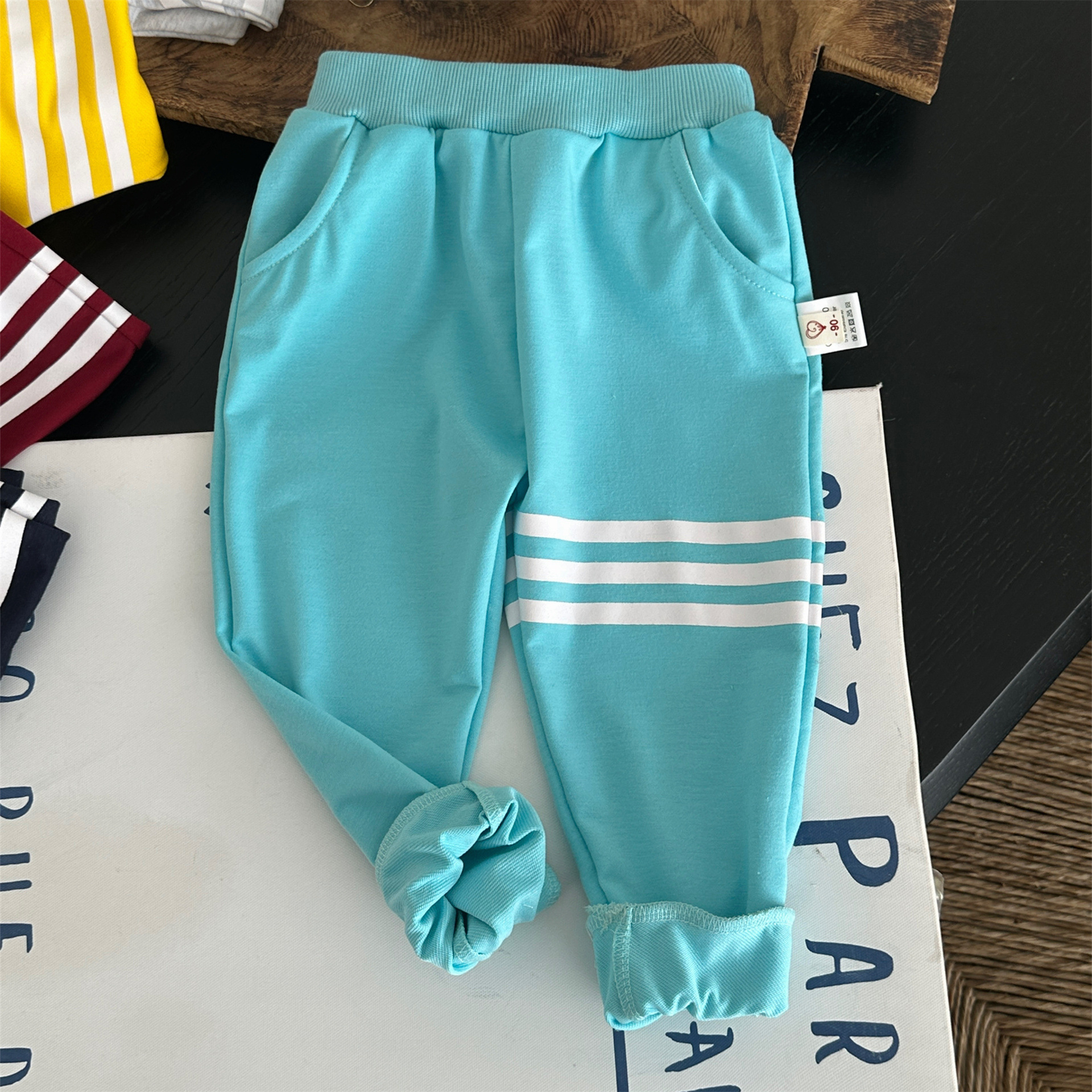 엄격한 선택 봄 새로운 어린이 캐주얼 바지 어린이 줄무늬 스포츠 바지 남성 스웨트 팬츠 아동복 원피스 배달