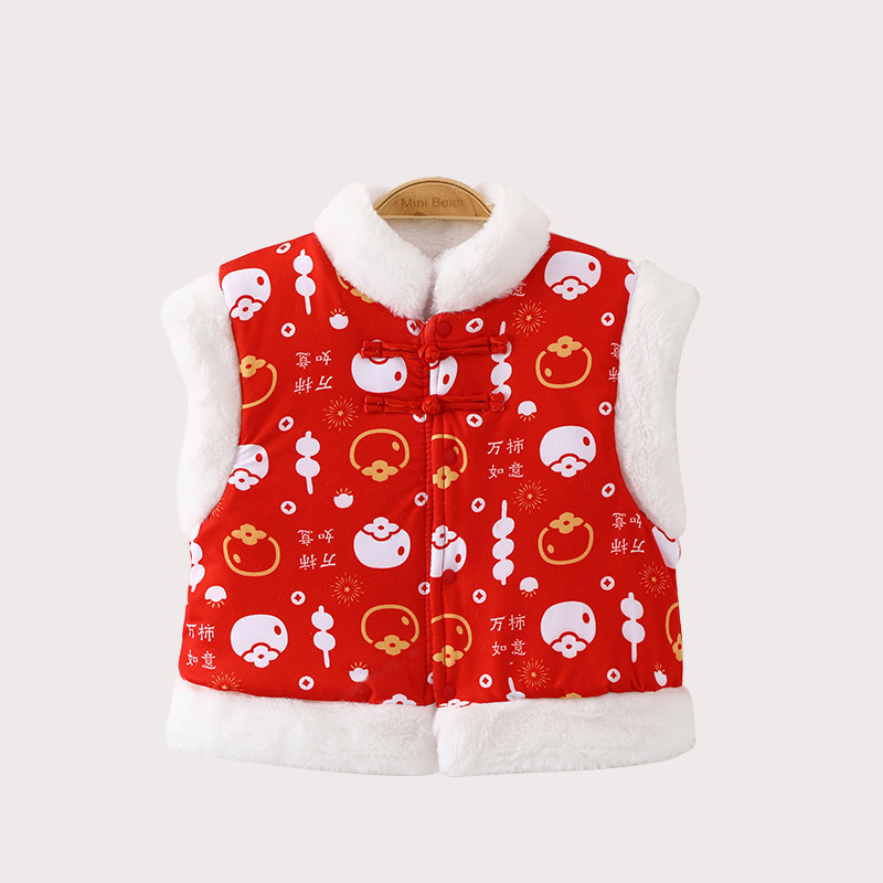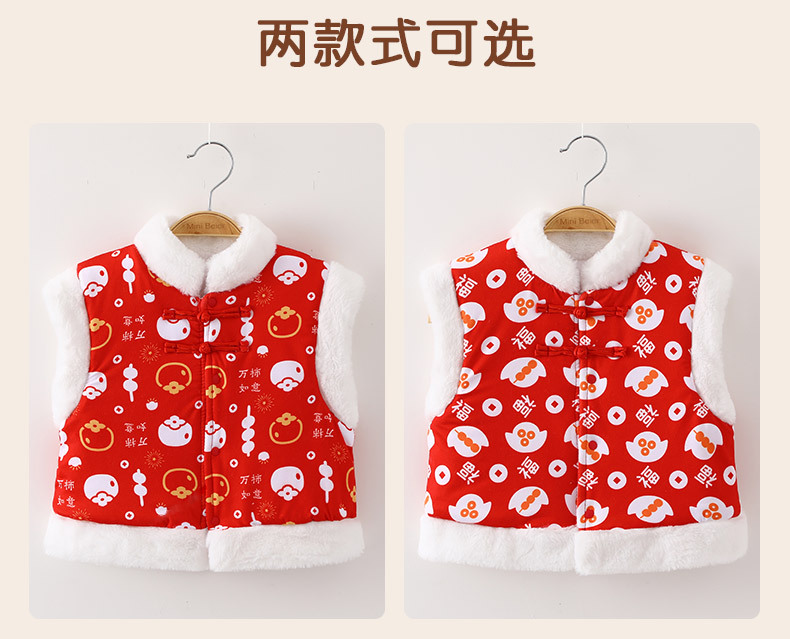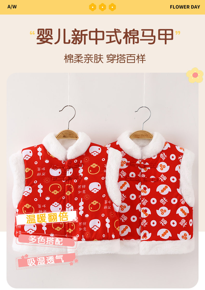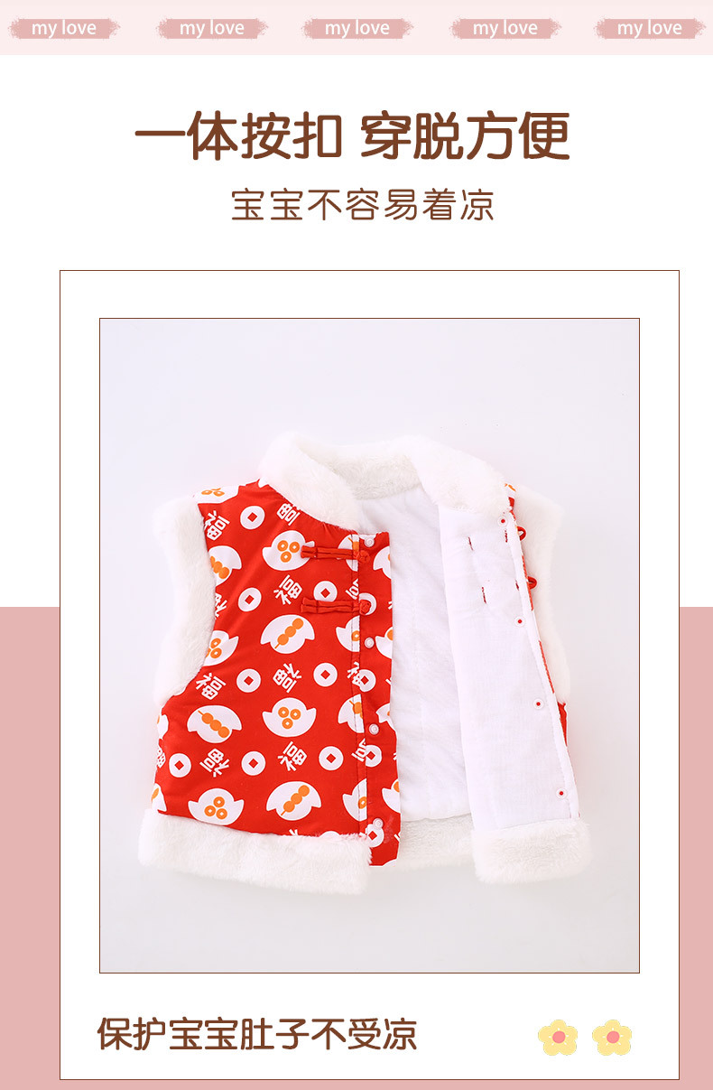 아기의 따뜻한 중국식 신년 옷을 입고 아기 기모 패딩 두꺼운 조끼 어린이 옷 겨울 조끼