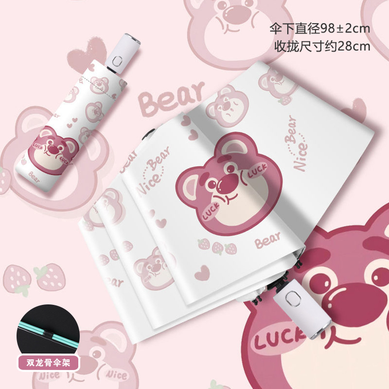 딸기곰 안전 반동 방지 우산 자외선 차단 양용 접이식 자동 우산