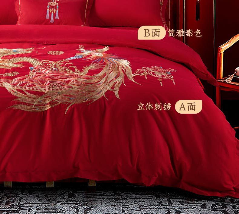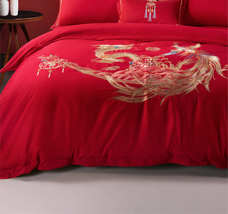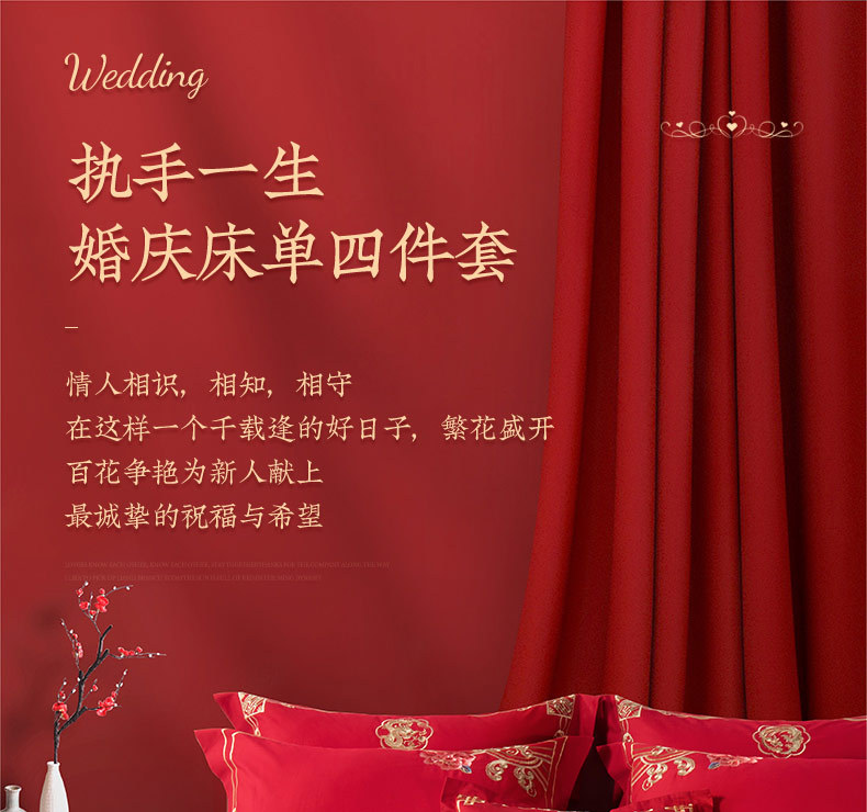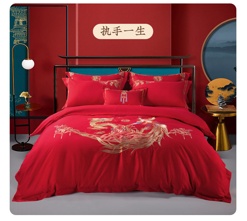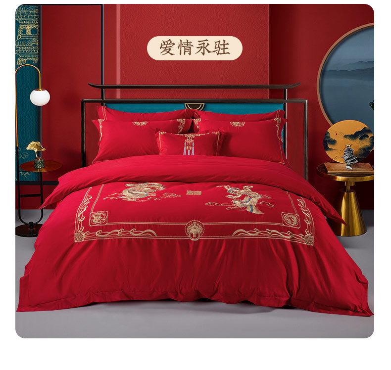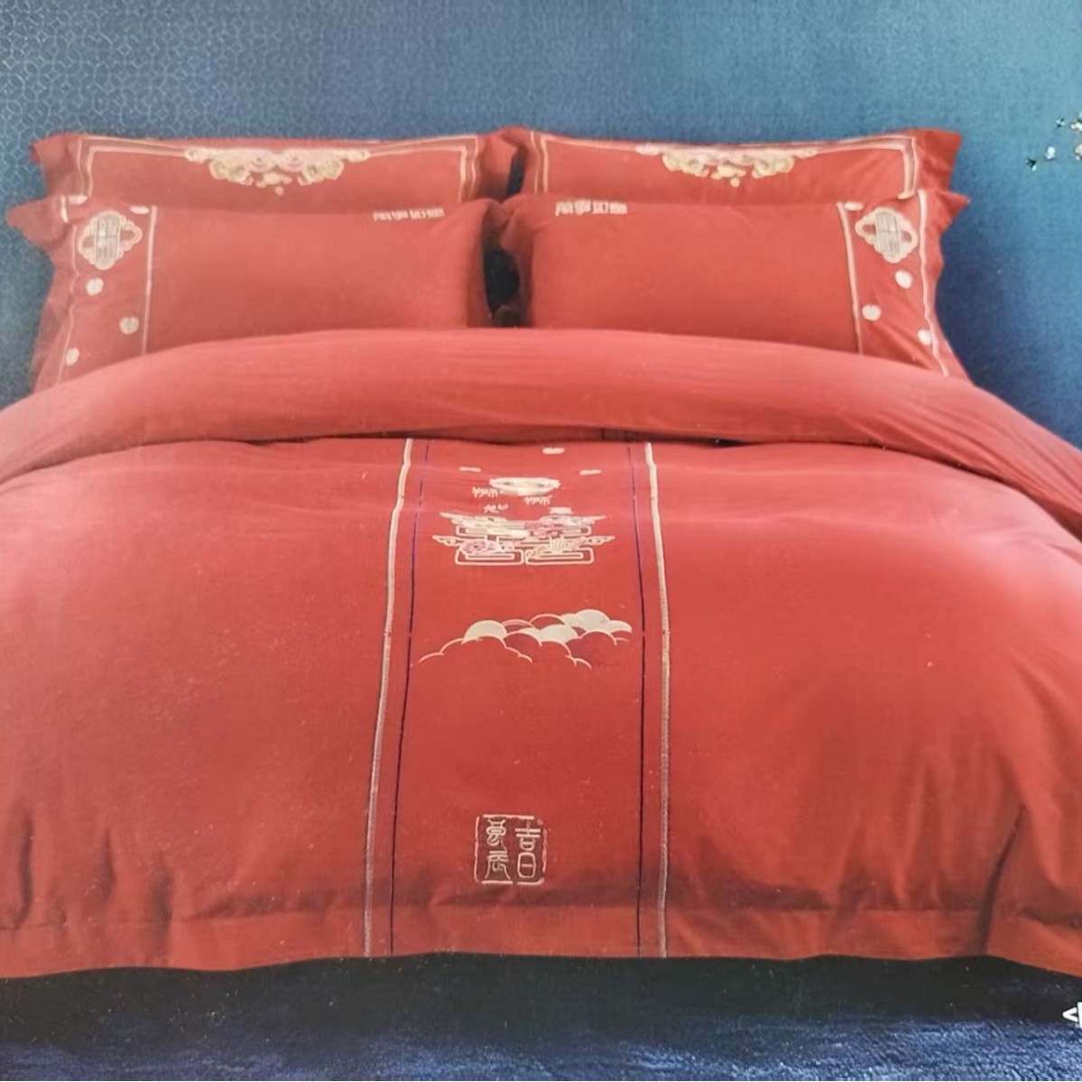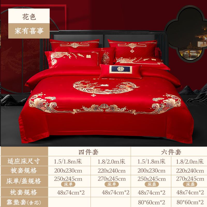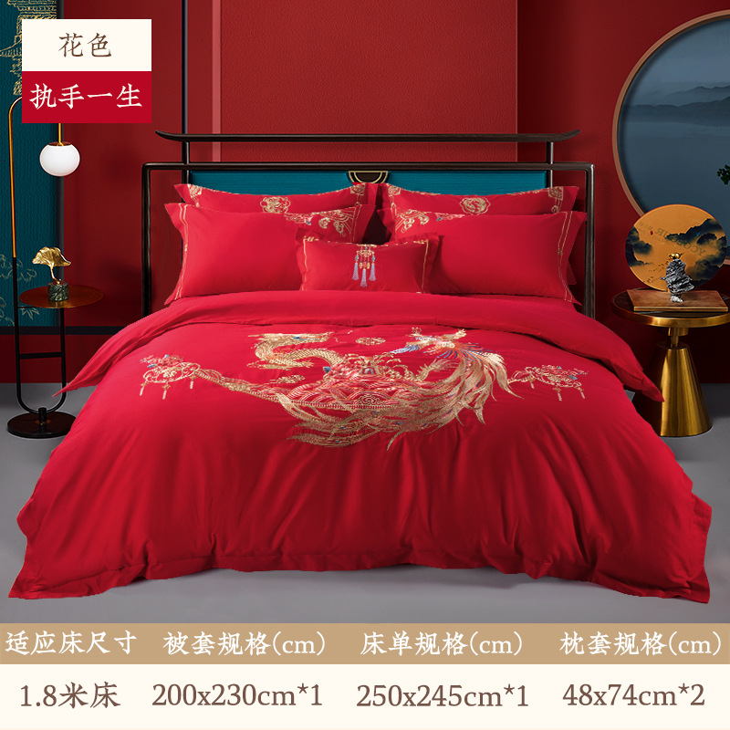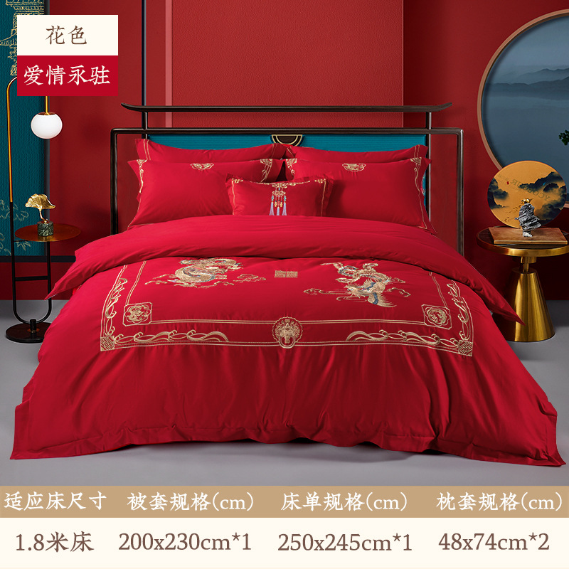 Yuanmeng 웨딩 침대 시트 4 피스 세트 웨딩 4 피스 세트 밝은 빨간색 웨딩 침대 시트 퀼트 커버 침구