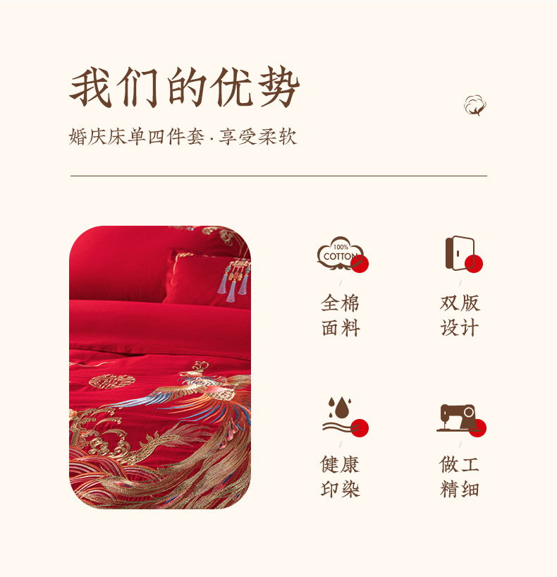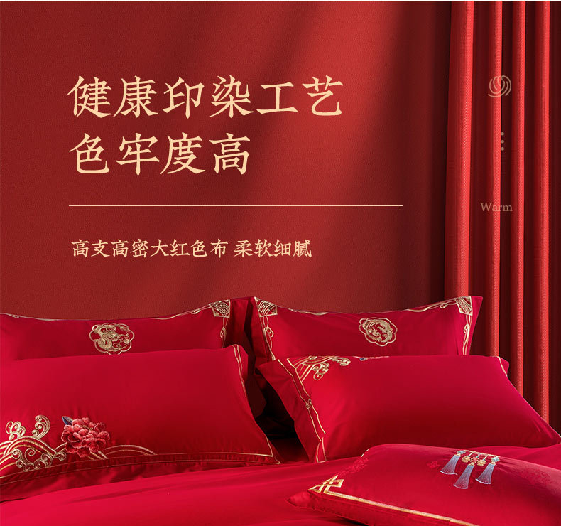 Yuanmeng 웨딩 침대 시트 4 피스 세트 웨딩 4 피스 세트 밝은 빨간색 웨딩 침대 시트 퀼트 커버 침구스토어 가기