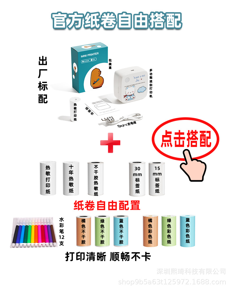 出厂标配:机器*1+数据线*1+说明书*1+打印纸*1