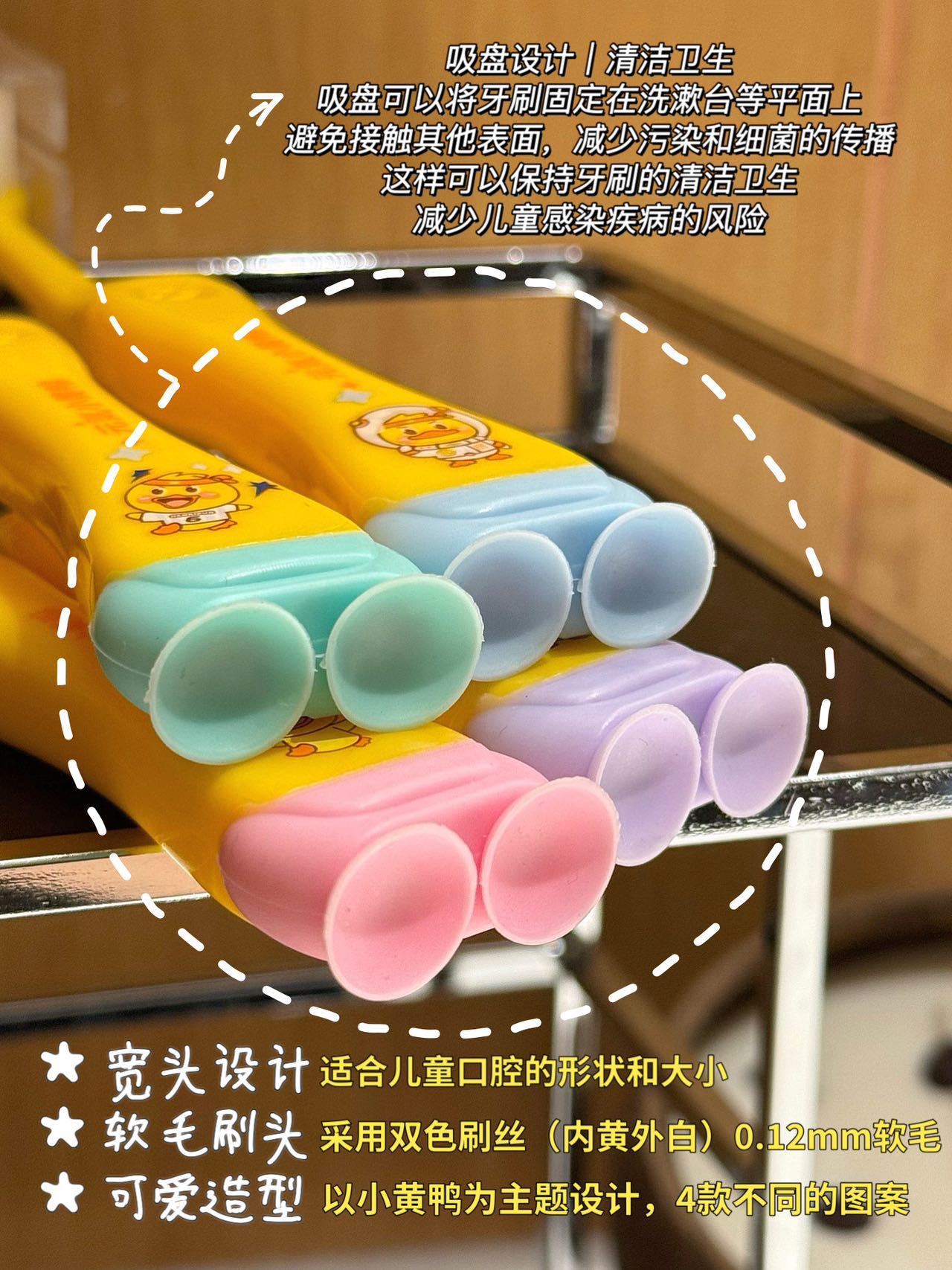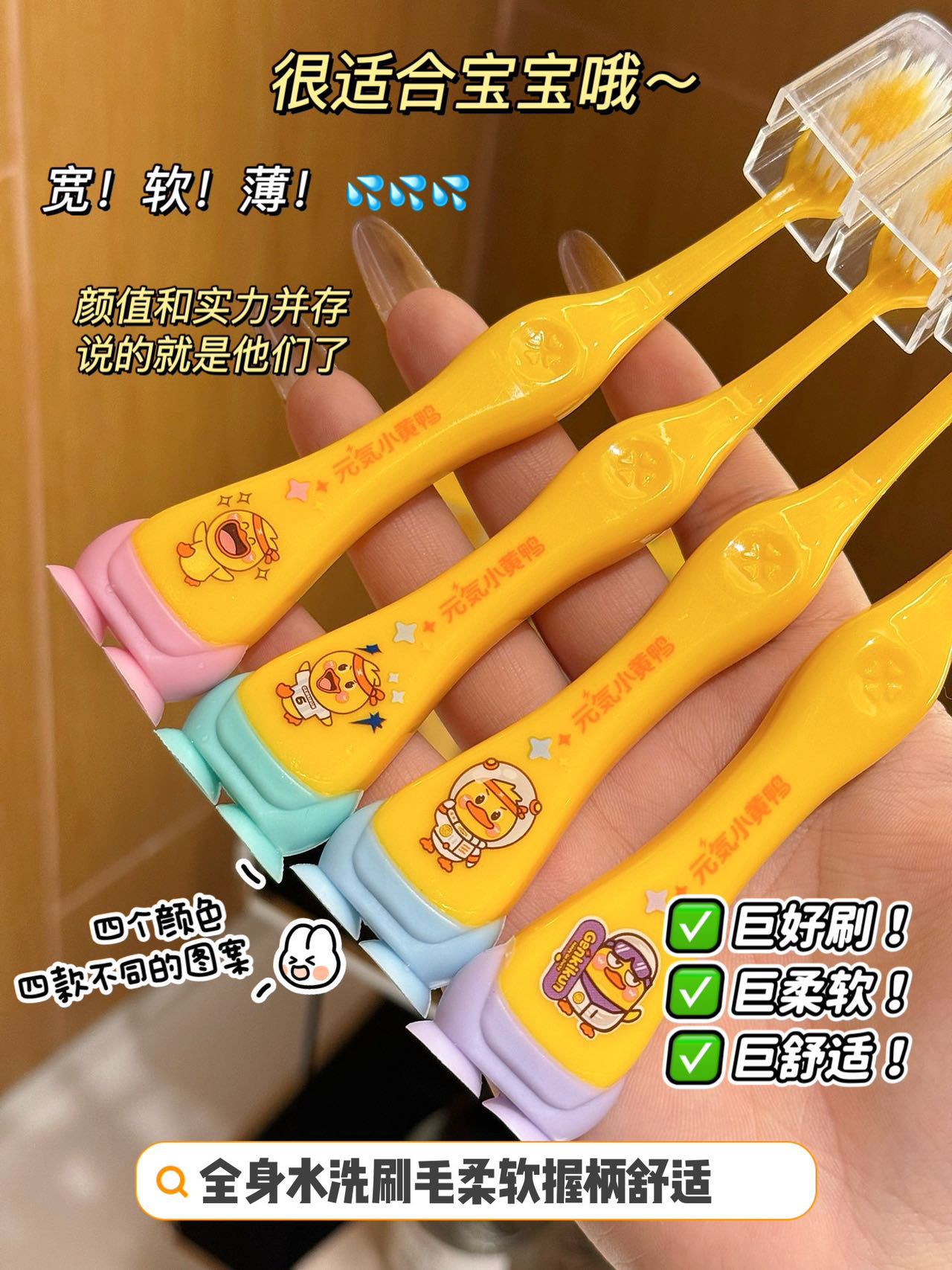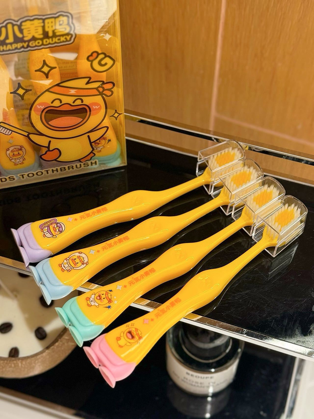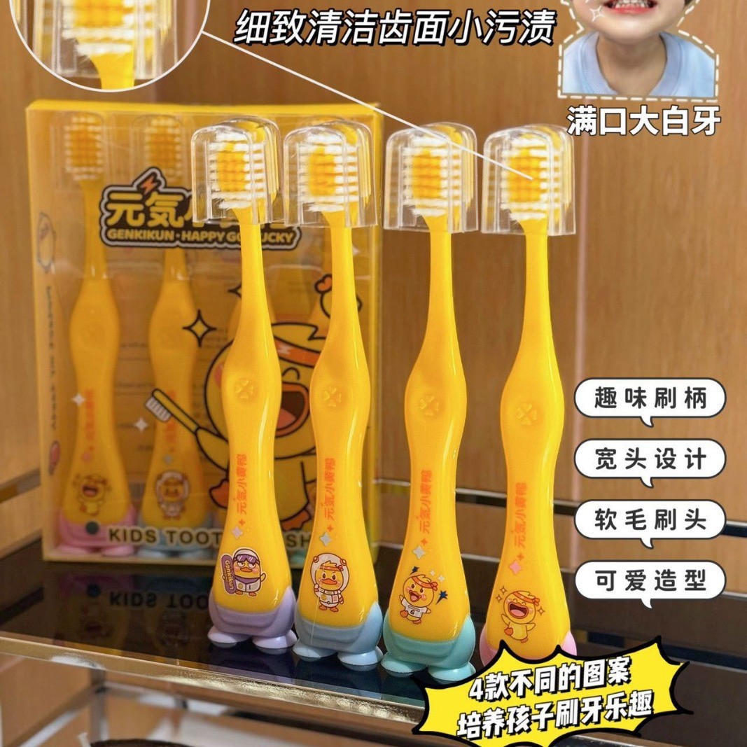 활기 넘치는 작은 노란 오리 어린이 칫솔 4 PC 가구 칼집 빨판 바닥 와이드 헤드 소프트 헤어 칫솔 도매