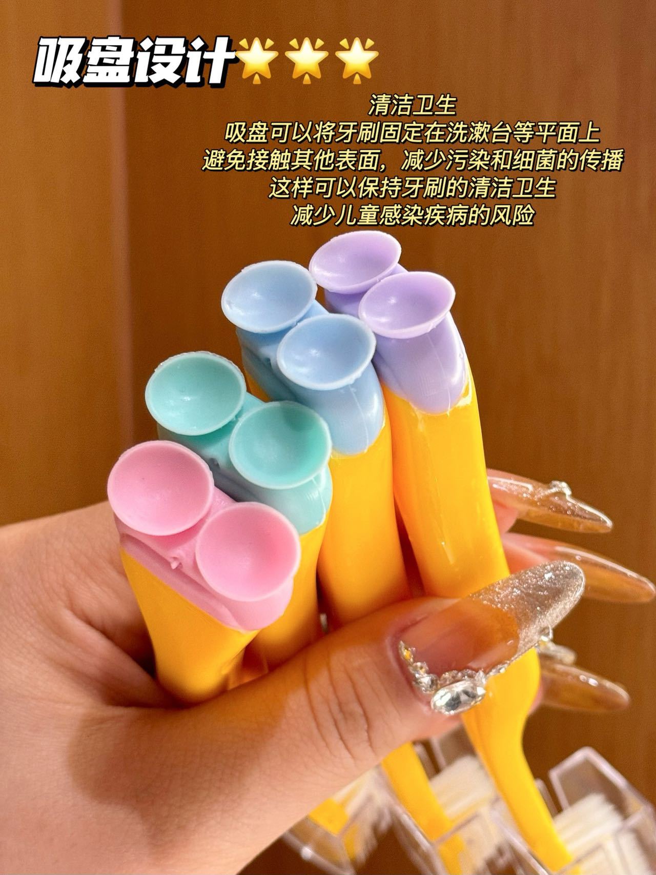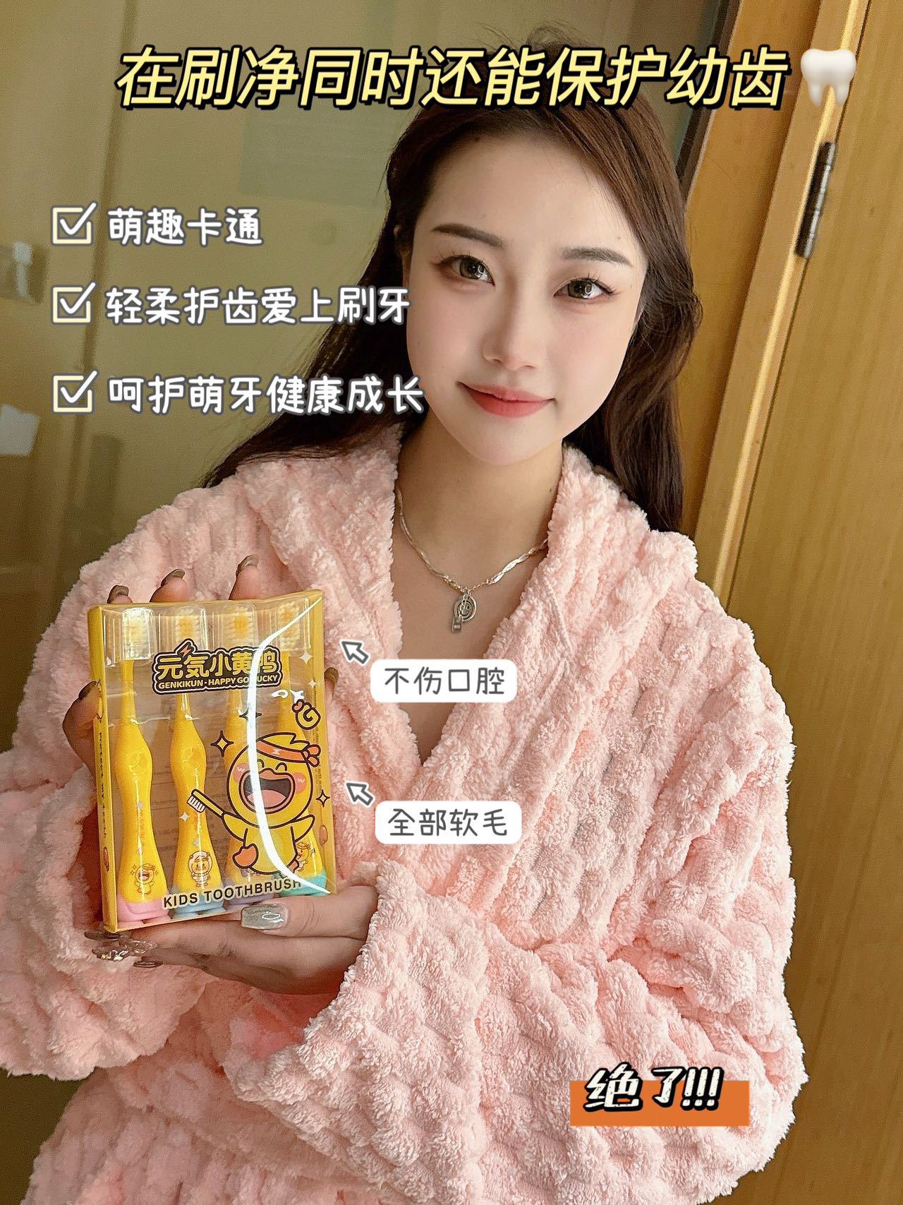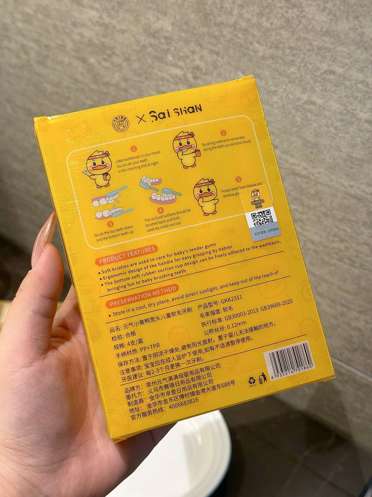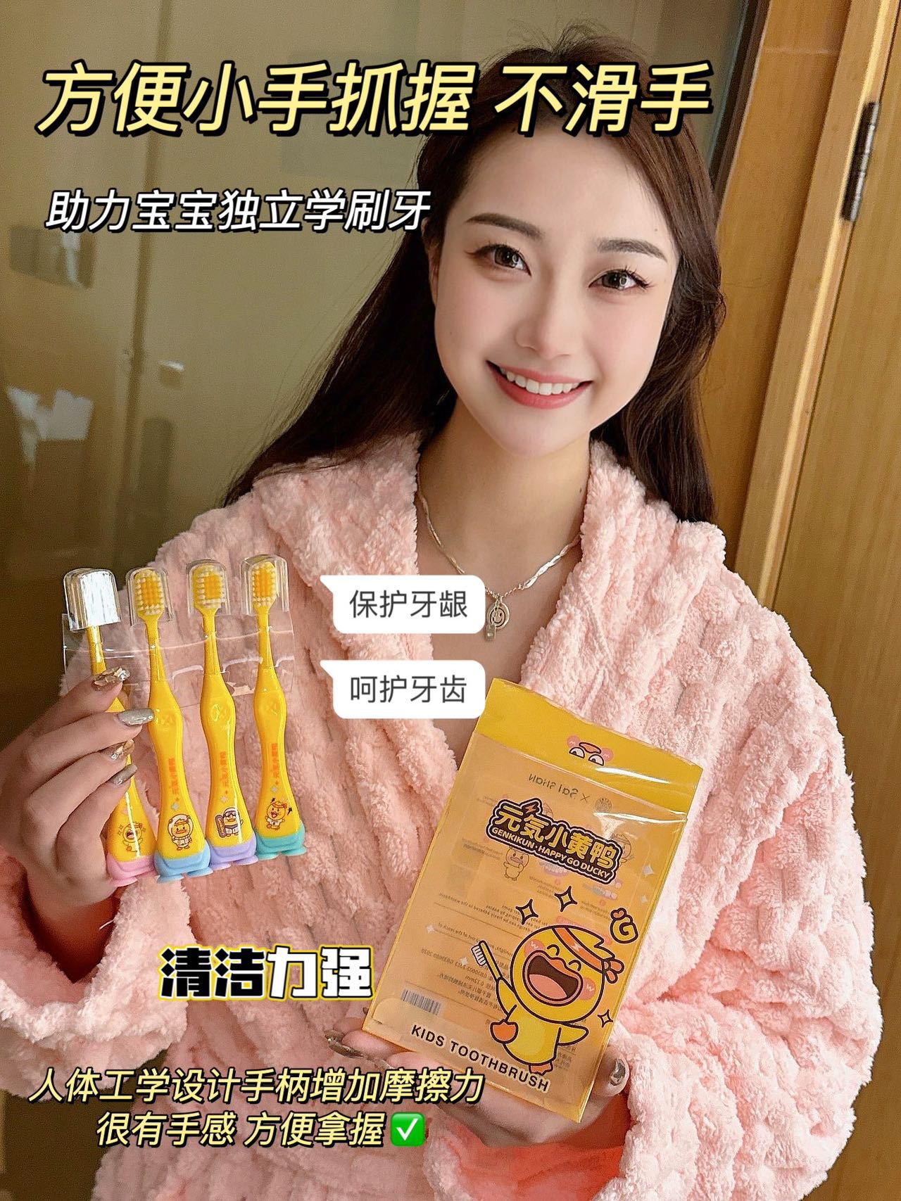 활기 넘치는 작은 노란 오리 어린이 칫솔 4 PC 가구 칼집 빨판 바닥 와이드 헤드 소프트 헤어 칫솔 도매