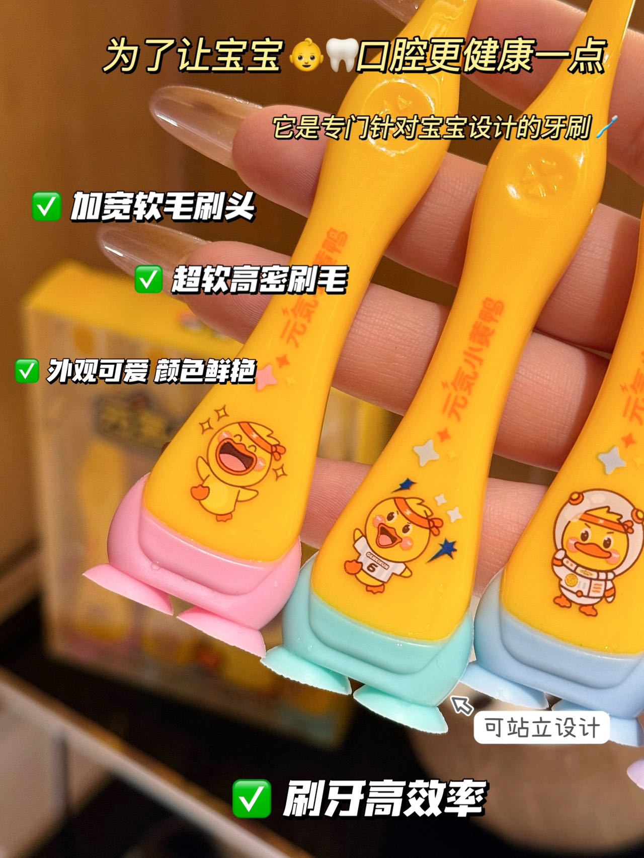활기 넘치는 작은 노란 오리 어린이 칫솔 4 PC 가구 칼집 빨판 바닥 와이드 헤드 소프트 헤어 칫솔 도매스토어 가기