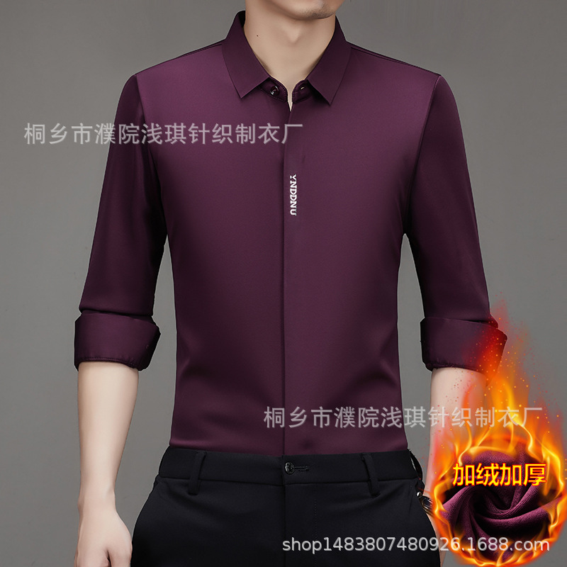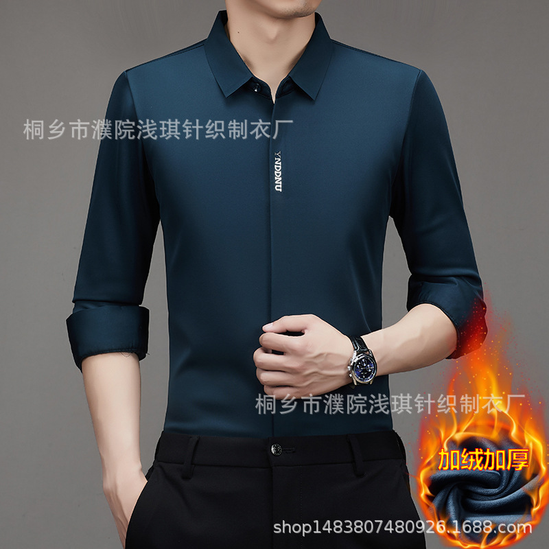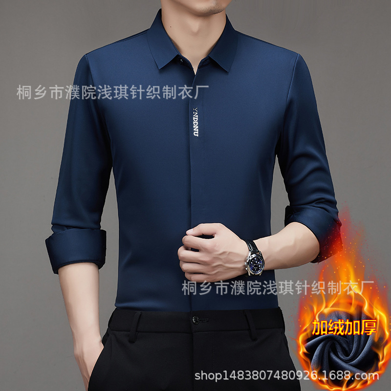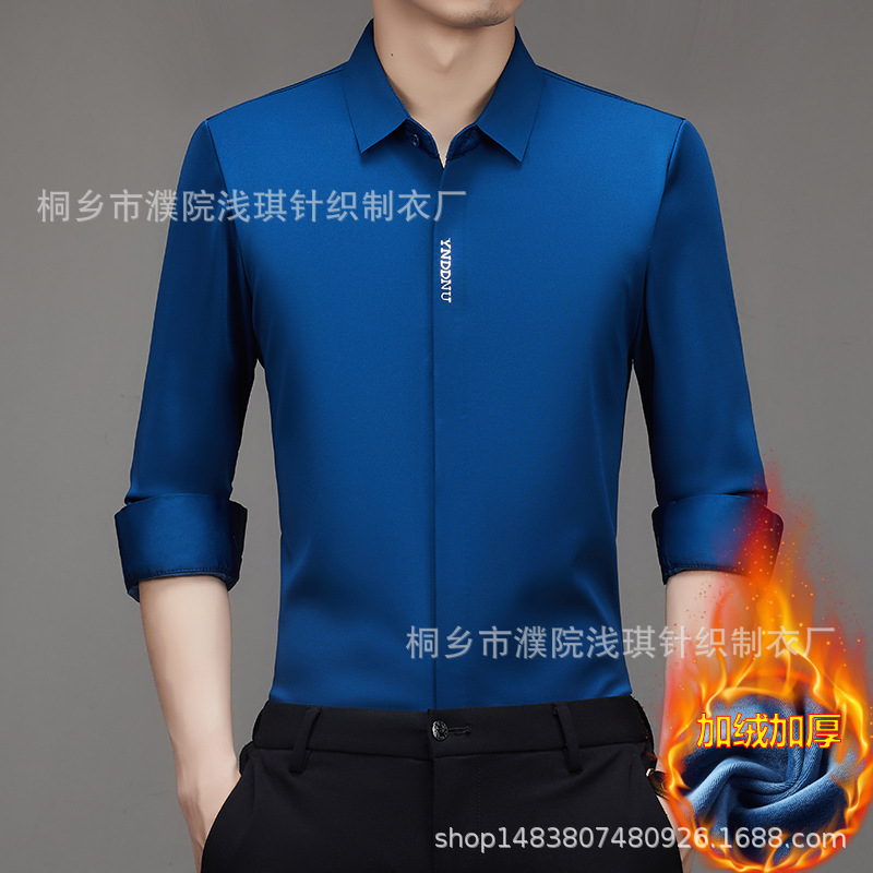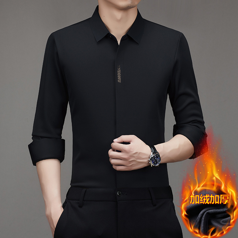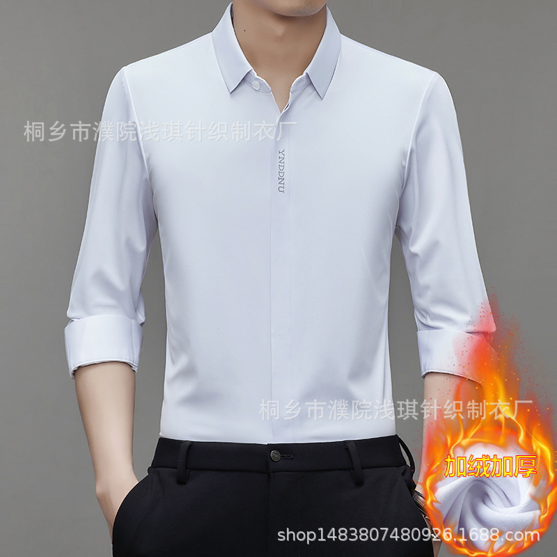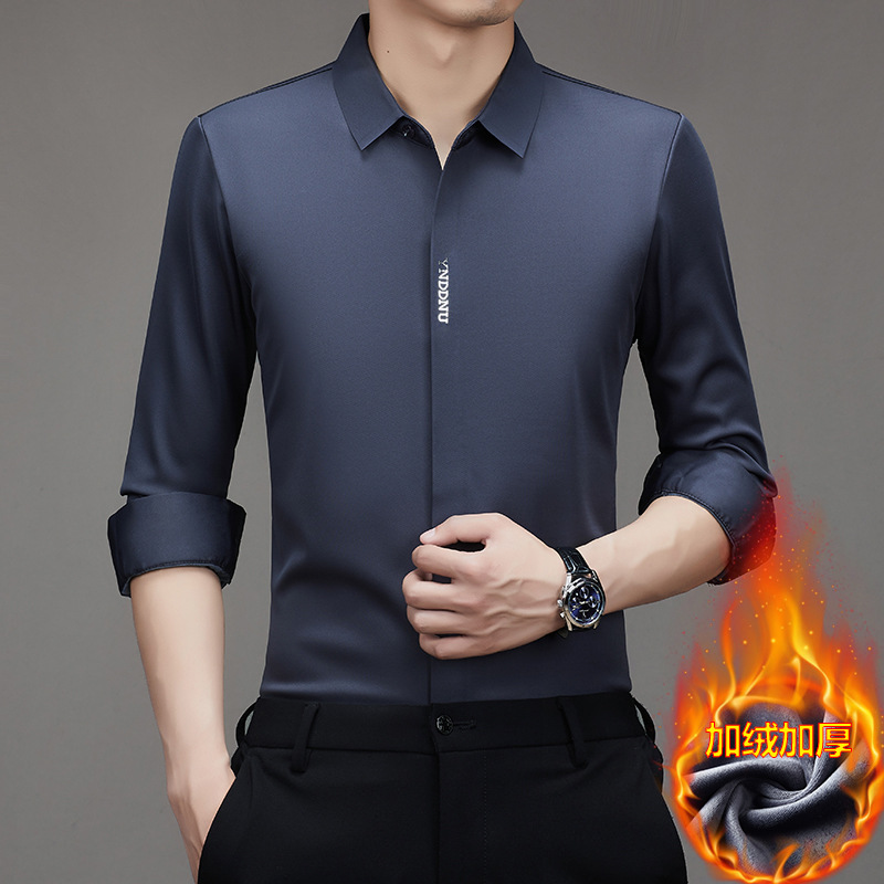 같은 겨울 남성 긴 소매 기모 패딩 셔츠 비즈니스 원활한 셔츠를 흔들어 머리카락을 다림질하십시오.