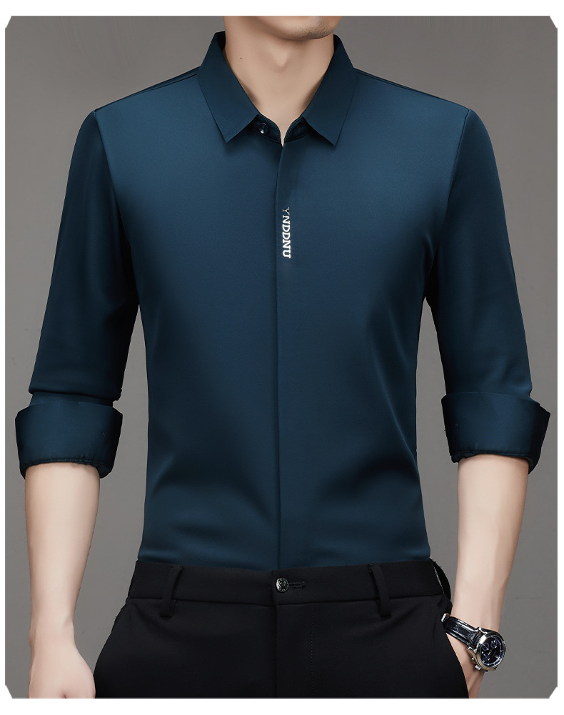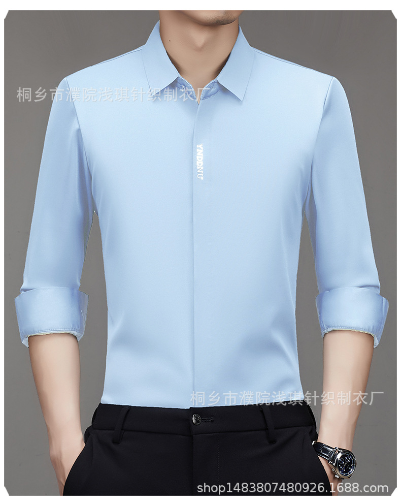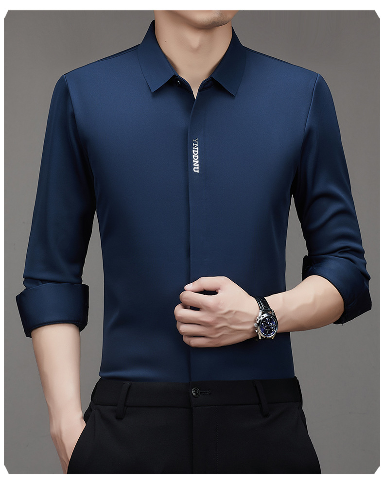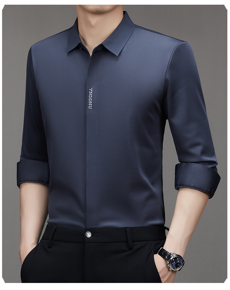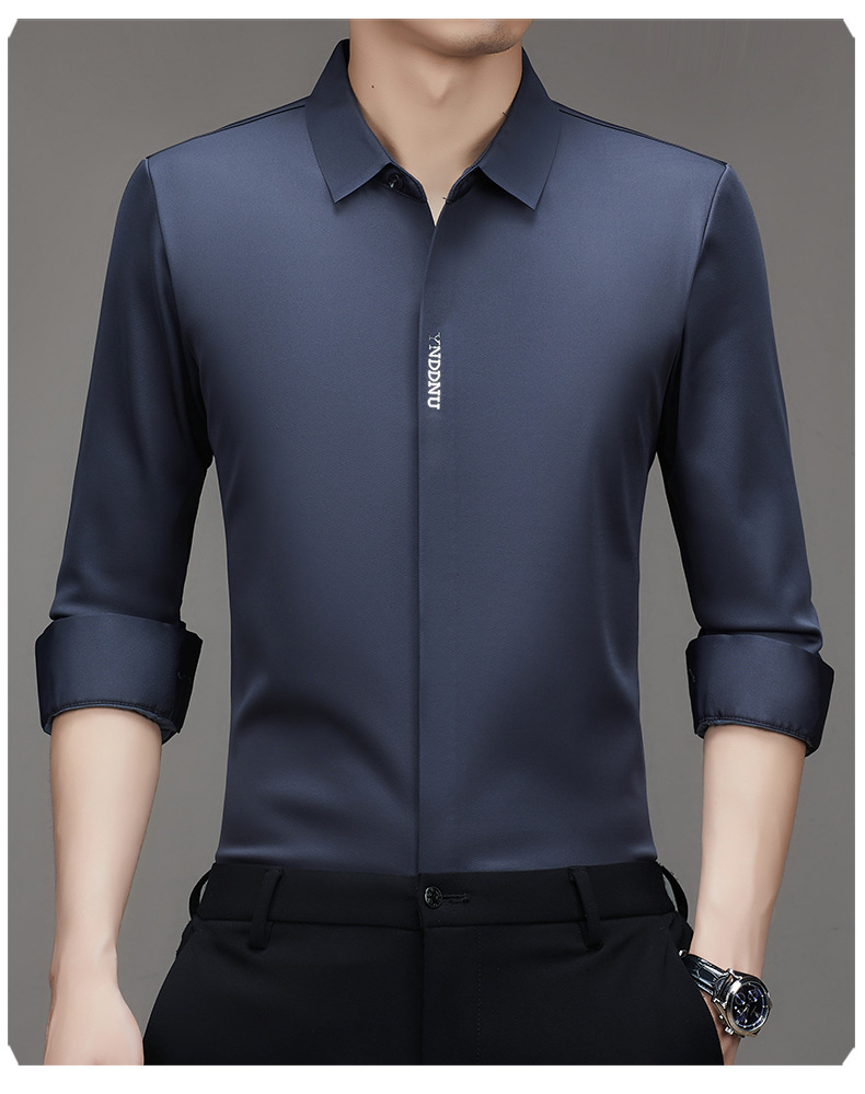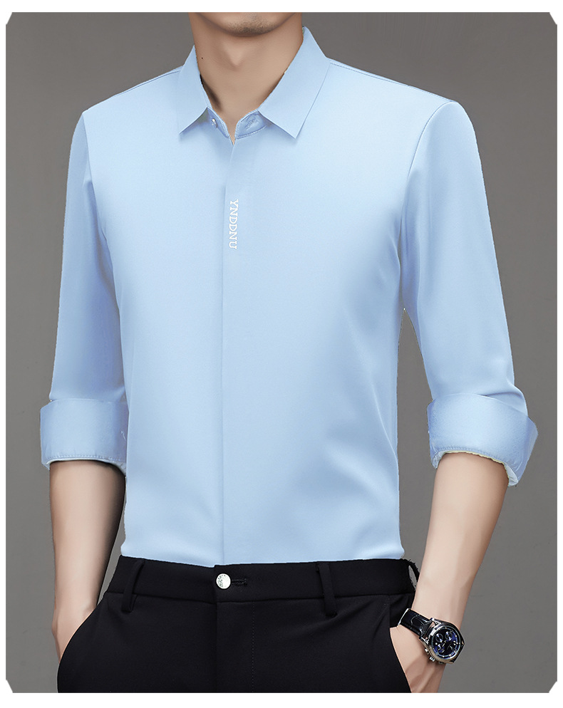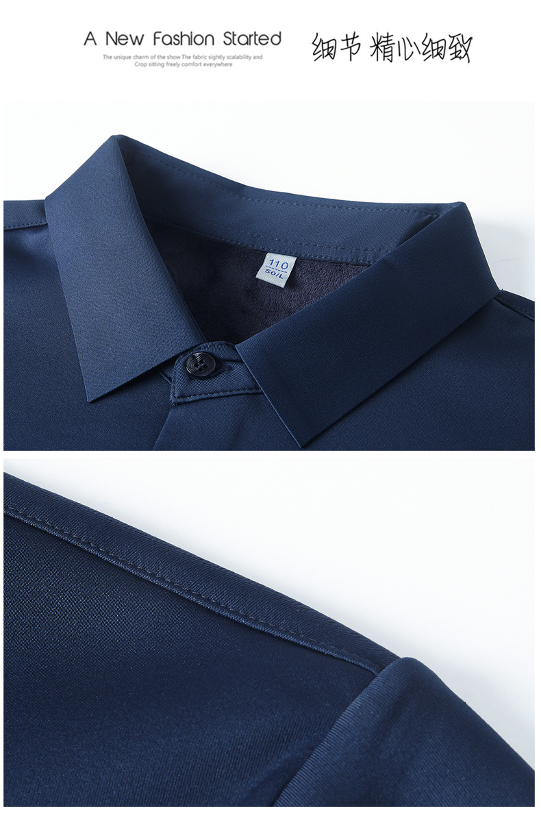 같은 겨울 남성 긴 소매 기모 패딩 셔츠 비즈니스 원활한 셔츠를 흔들어 머리카락을 다림질하십시오.