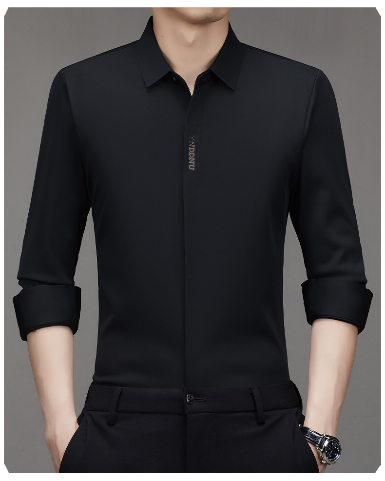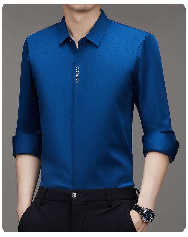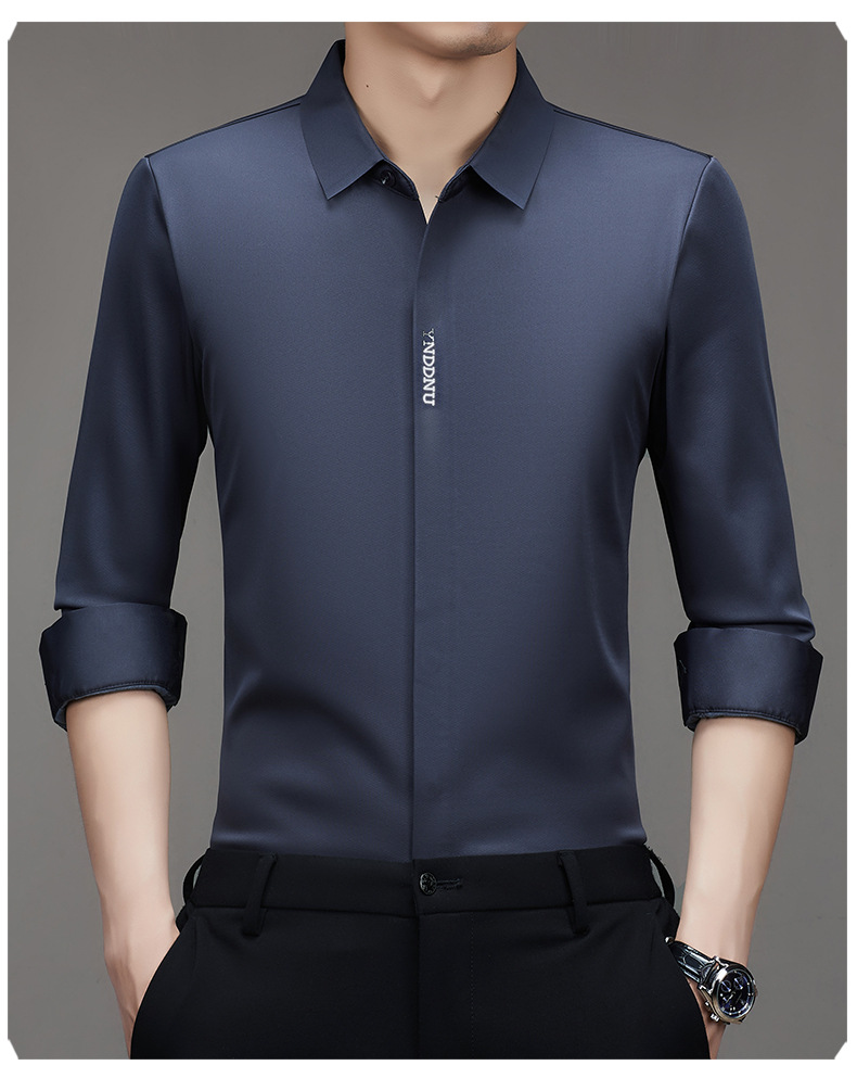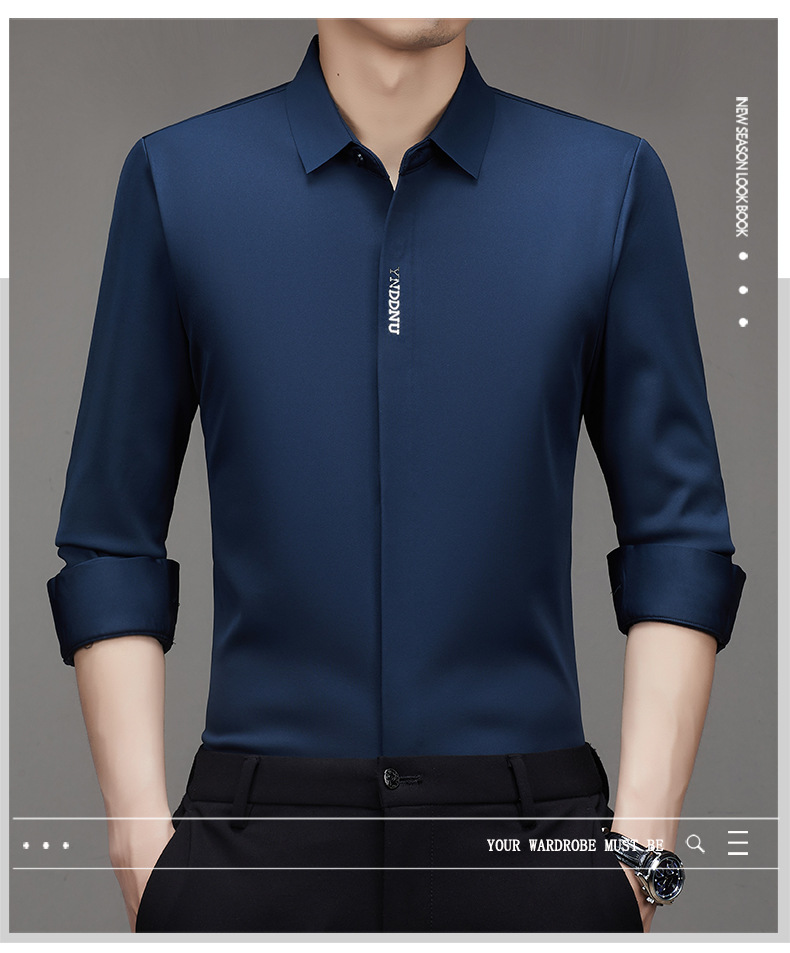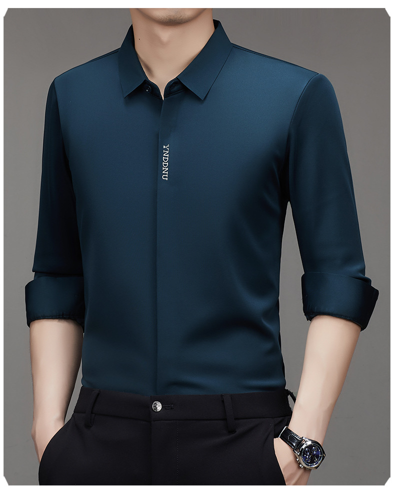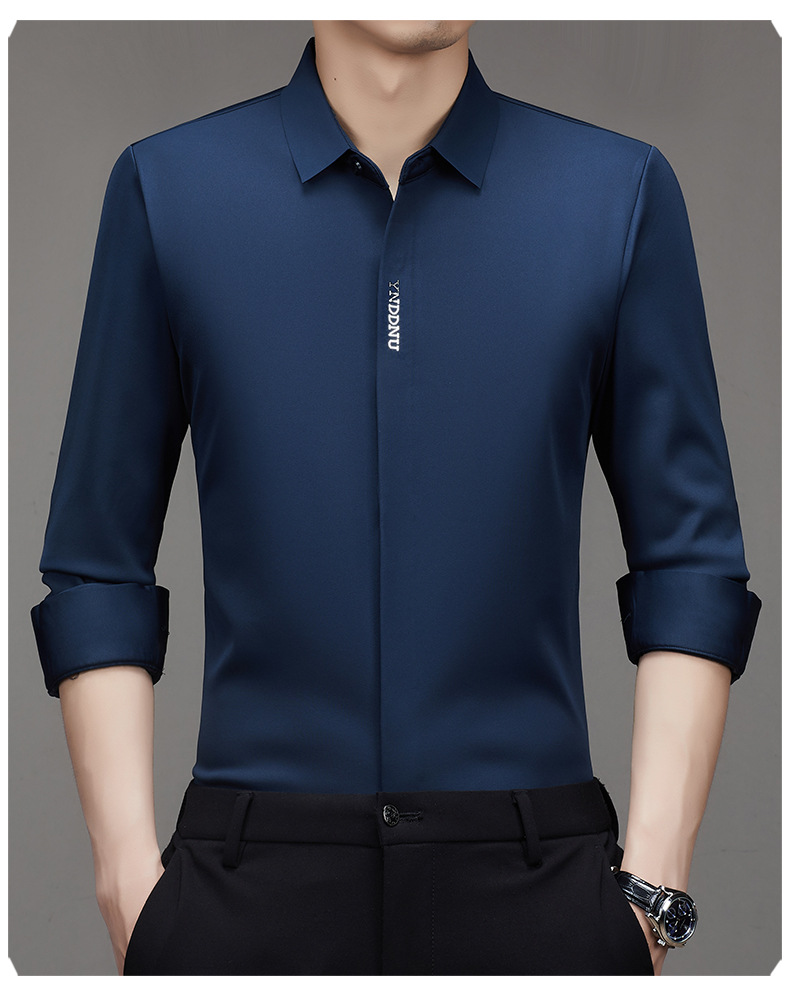 같은 겨울 남성 긴 소매 기모 패딩 셔츠 비즈니스 원활한 셔츠를 흔들어 머리카락을 다림질하십시오.