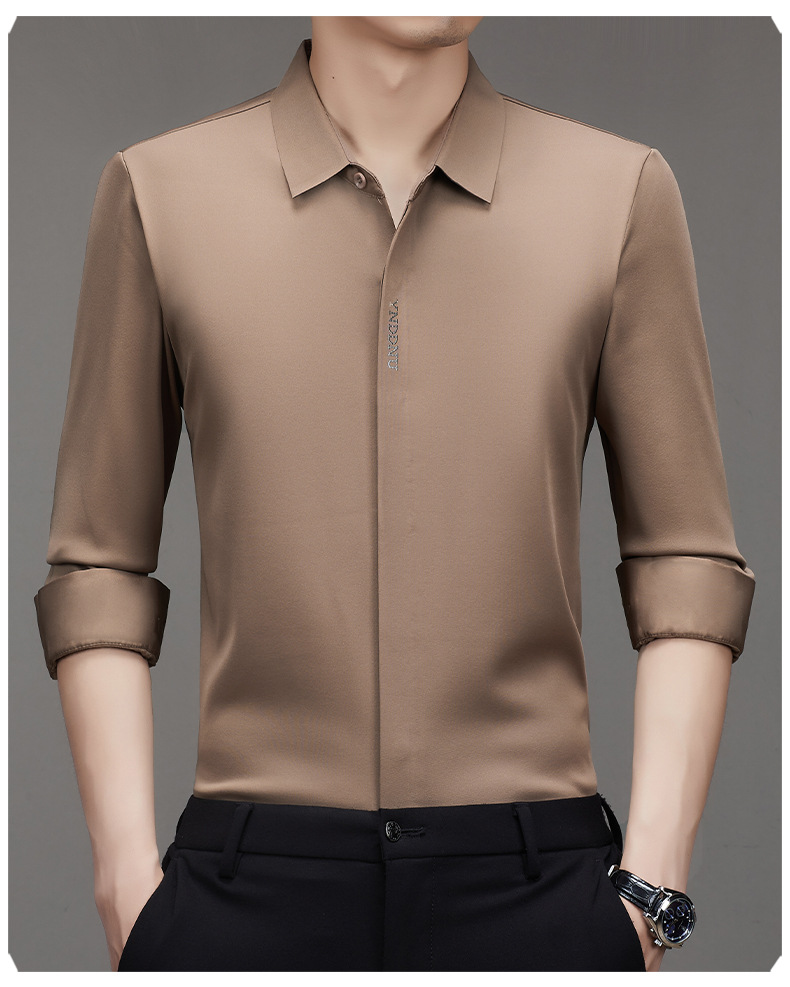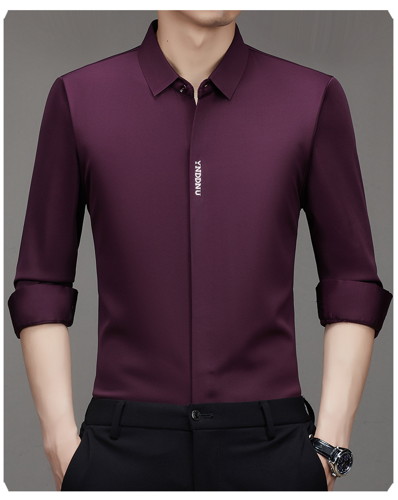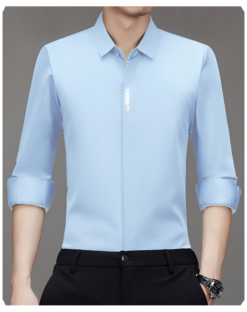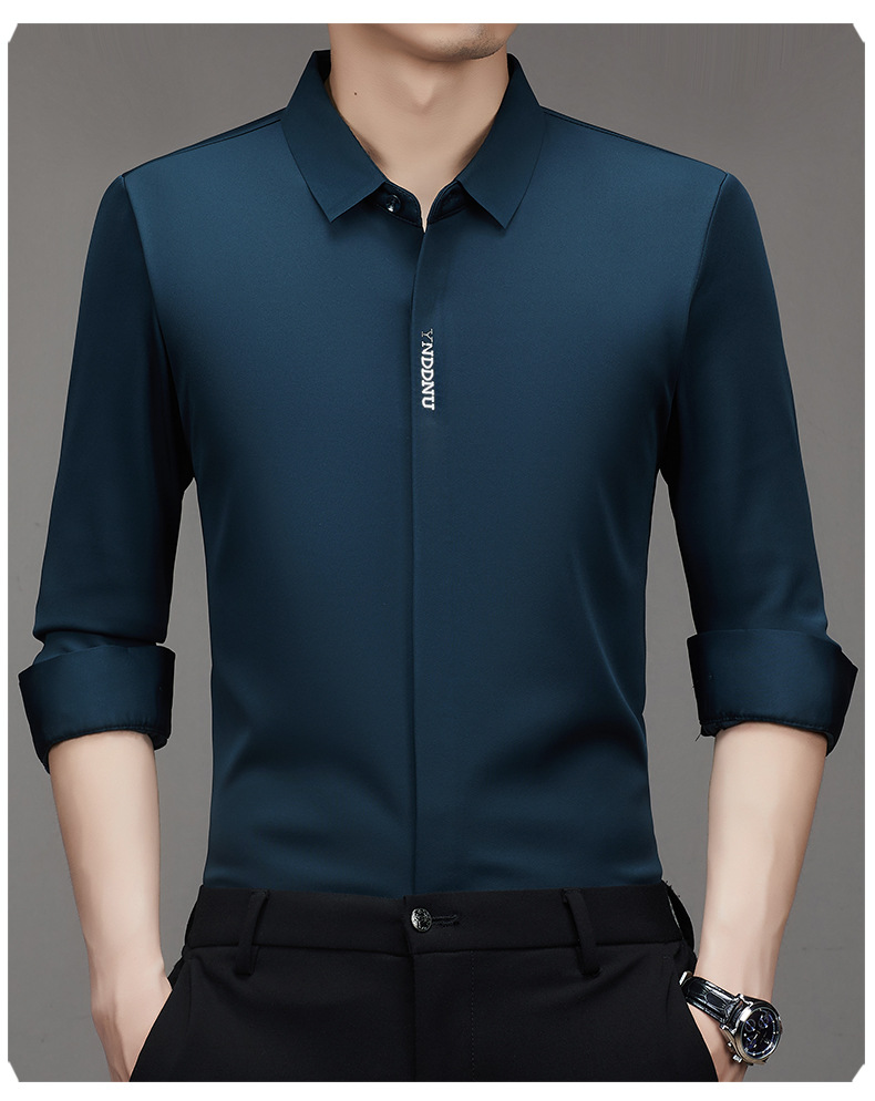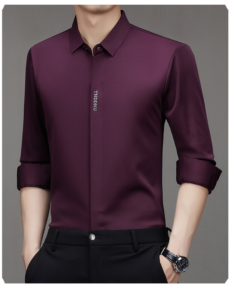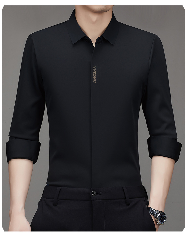 같은 겨울 남성 긴 소매 기모 패딩 셔츠 비즈니스 원활한 셔츠를 흔들어 머리카락을 다림질하십시오.