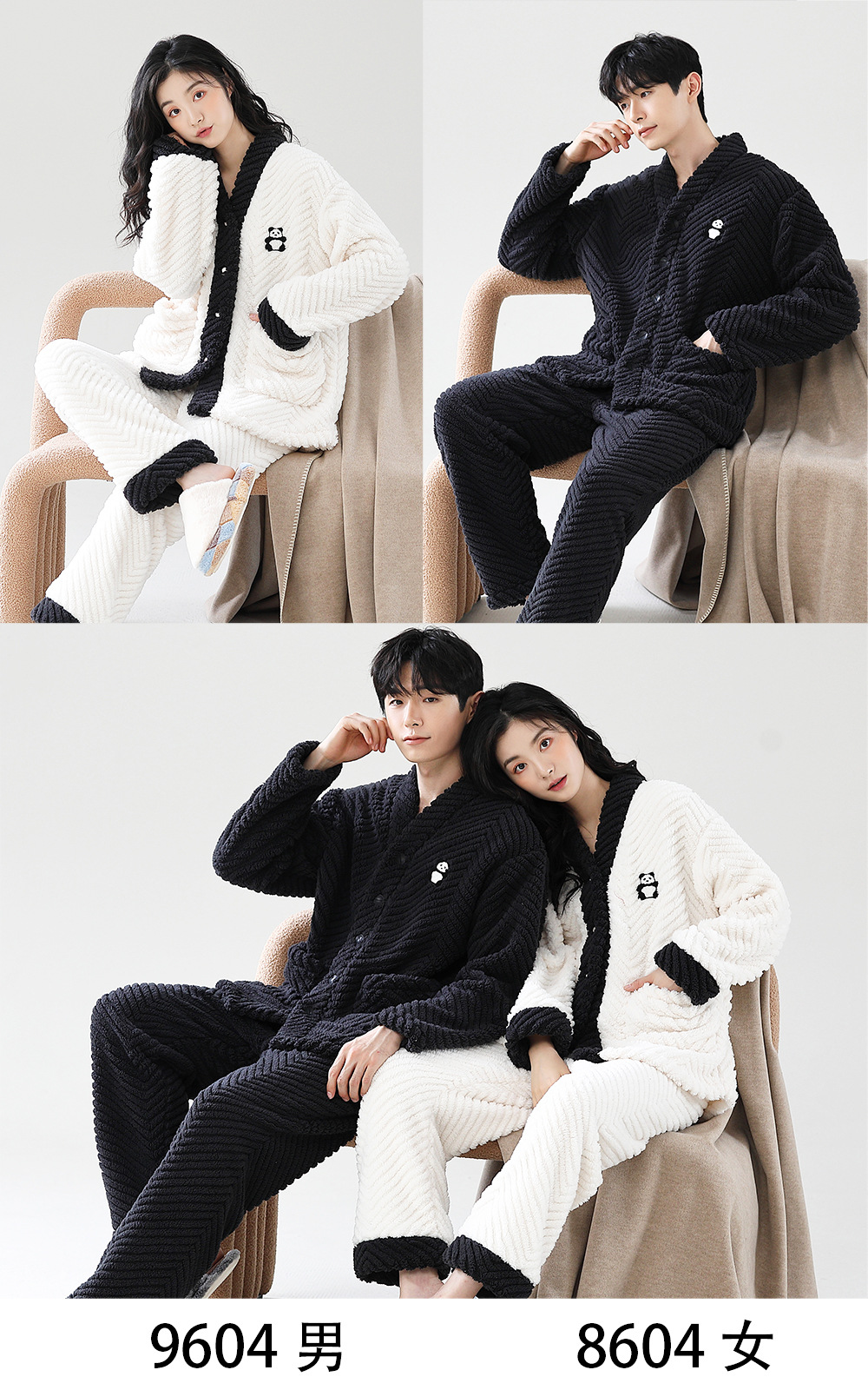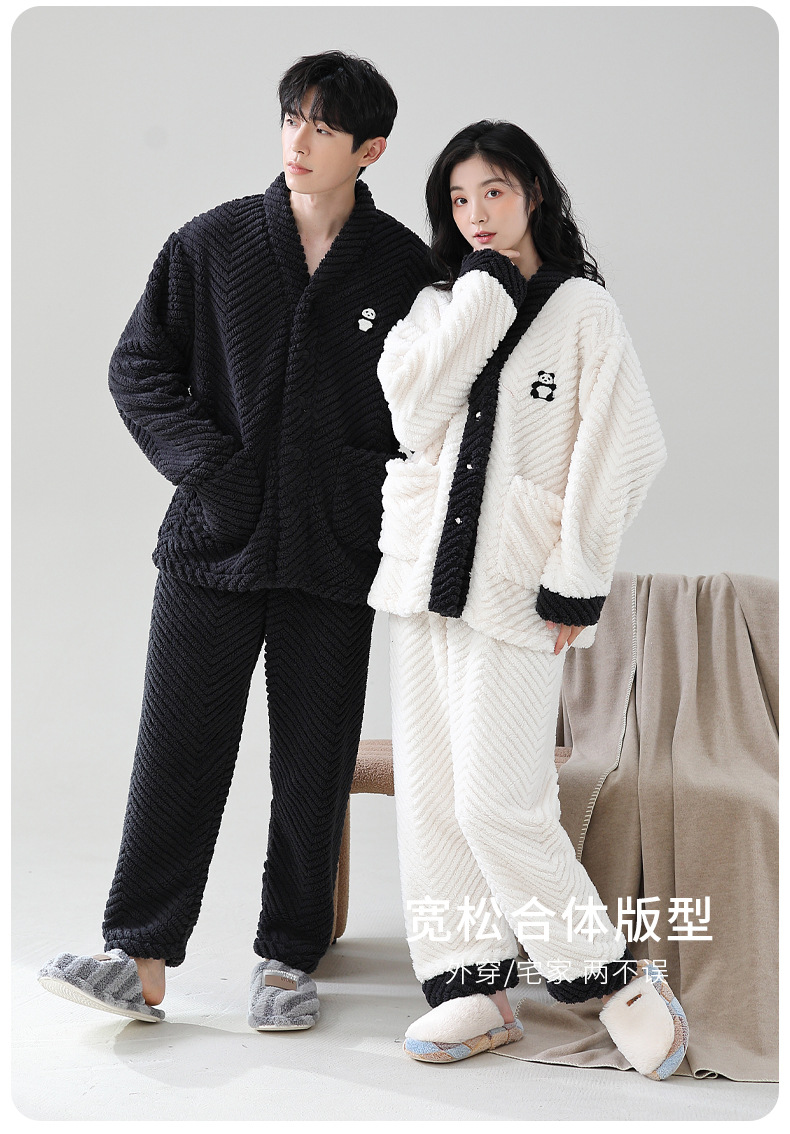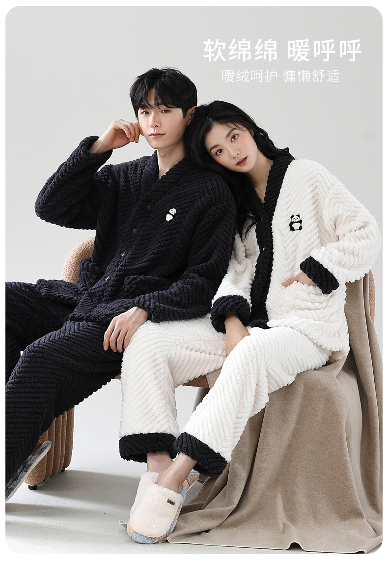 겨울 잠옷 여성 산호 양털 기모 두껍게 따뜻한 여성 남성 겨울 플란넬 커플 홈웨어 세트스토어 가기