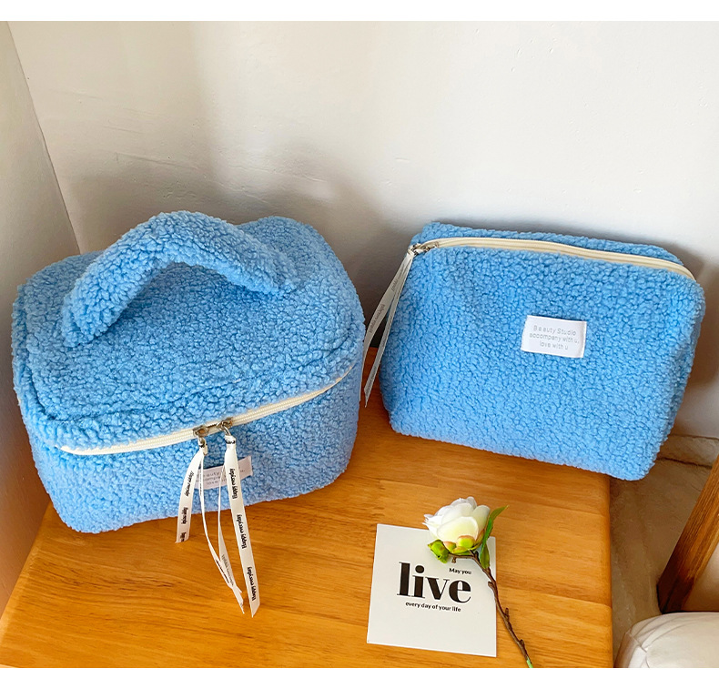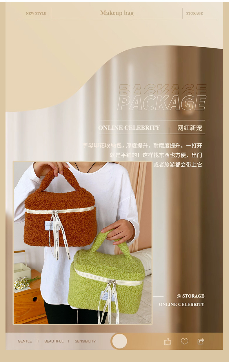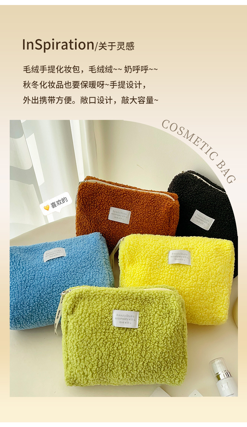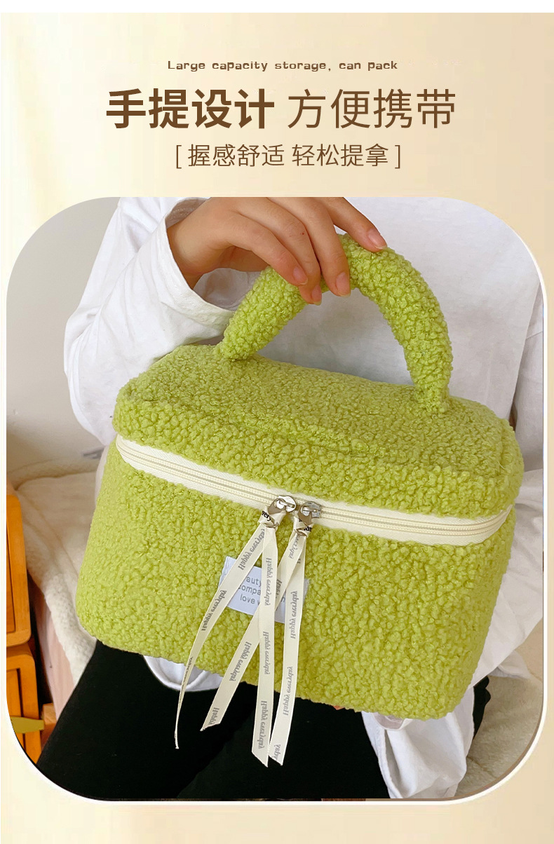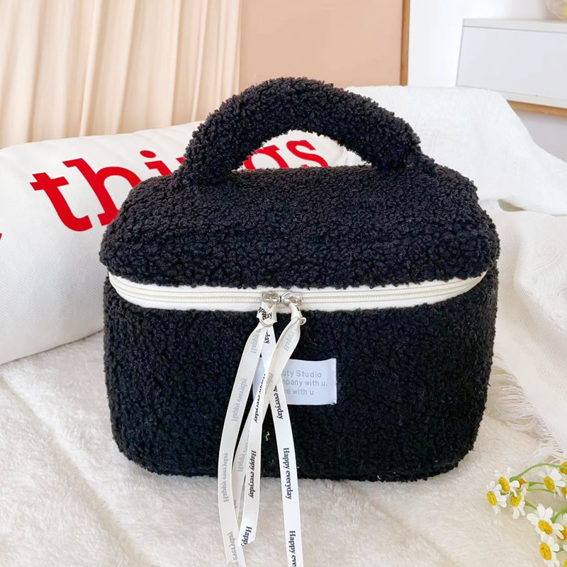 귀여운 양가죽 모피 한국 화장품 가방 간단한 휴대용 스킨 케어 가방 대용량 소녀 보관 가방