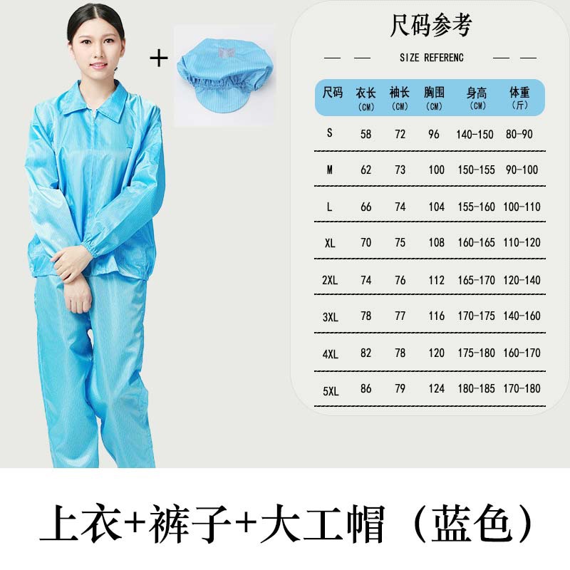 파란색 정전기 방지 분할 작업복 공장 작업장 깨끗한 분할 세트 보편적 인 식품 방진 정적 옷스토어 가기