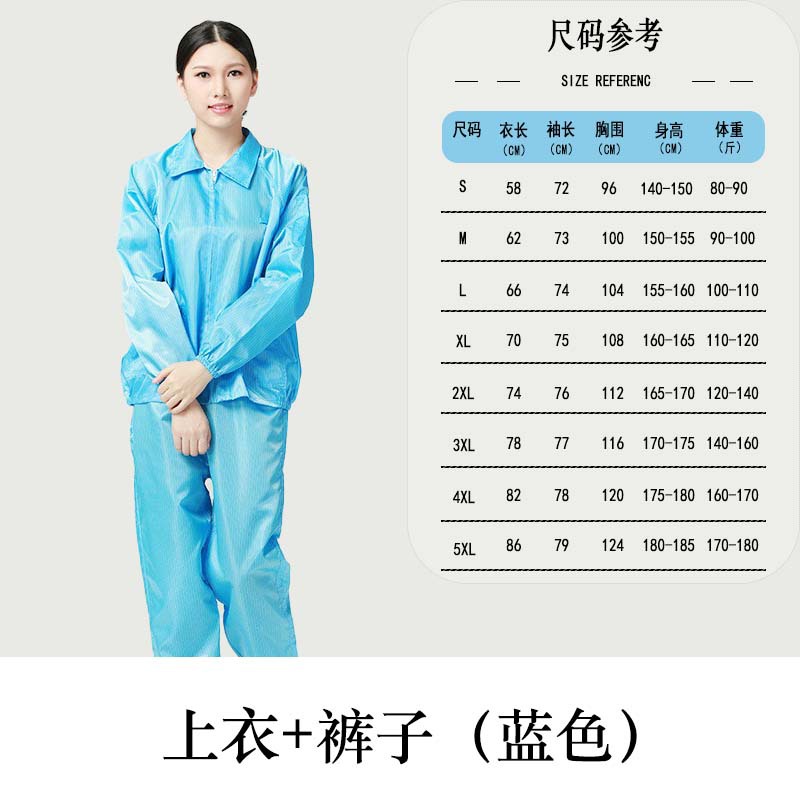 蓝色防静电分体工作服工厂车间洁净分体套装男女通用食品防尘静电服
