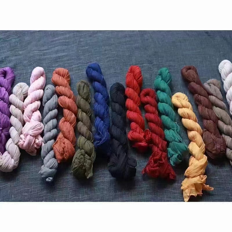 대외 무역면 및 린넨 스카프 색상 매칭 트위스트 구겨진 스카프 여성의 얇은 스카프 주름 스카프 다목적 단색 목도리