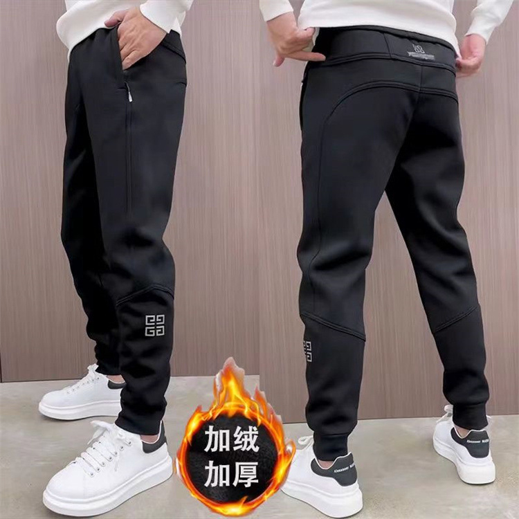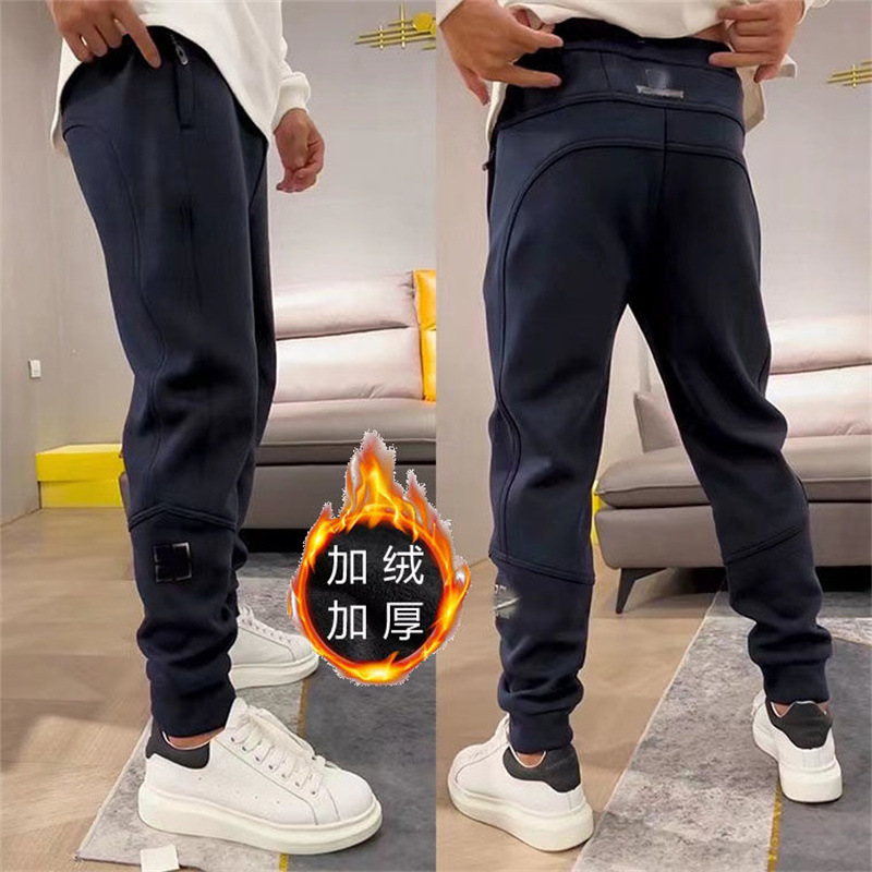 가을과 겨울 새로운 남성 캐주얼 바지 미로에 기모 유행 남자 슬림 올 매치 스트레치 프린트 꽃 활 발 바지