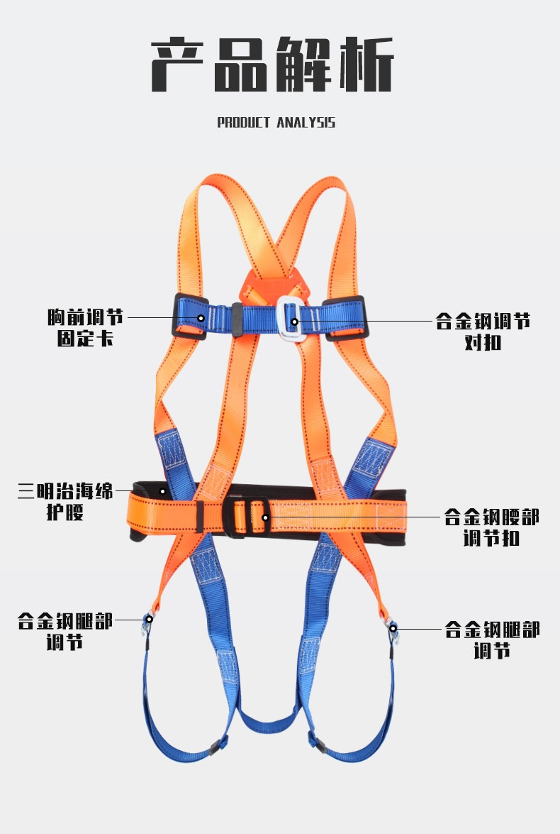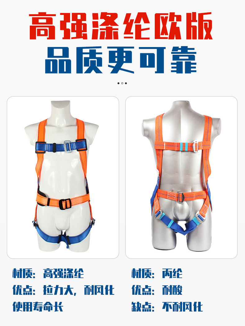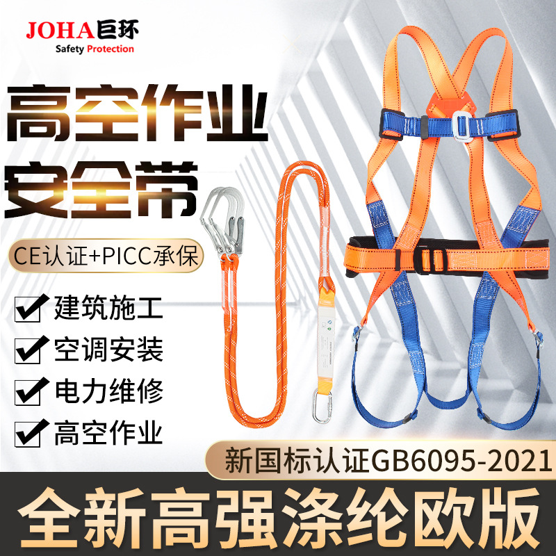 고고도 안전벨트, 크로스보더 아마존 야외 작업용 폴리에스터 섬유 안전 로프, 5점식 이중 후크 안전벨트스토어 가기