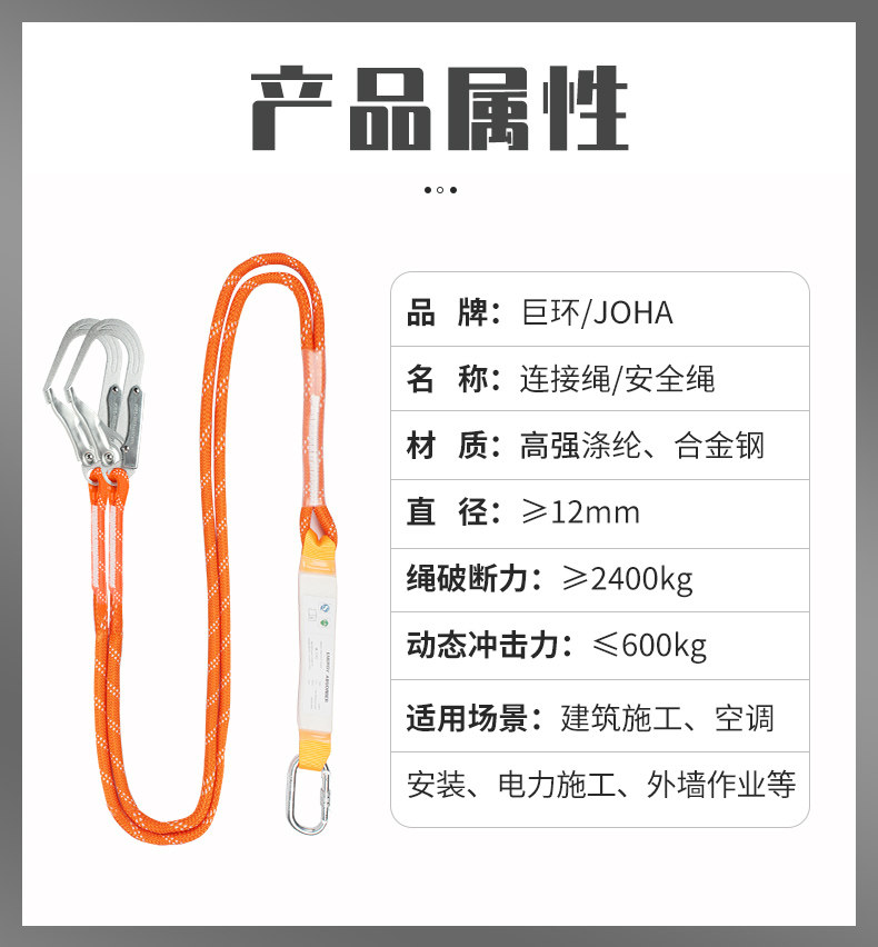 • 폴리 에스테르 섬유 안전 벨트 + 단일 로프 단일 후크 3 m