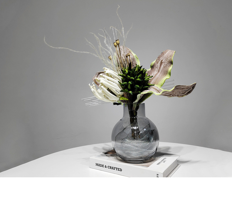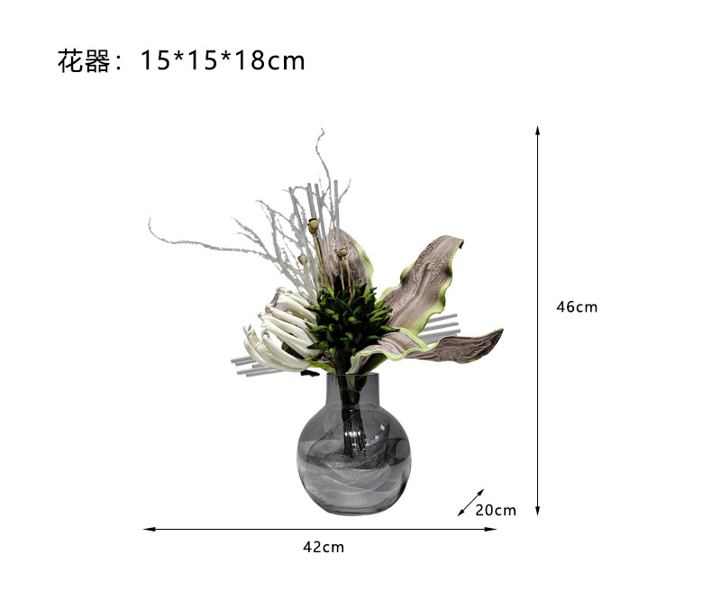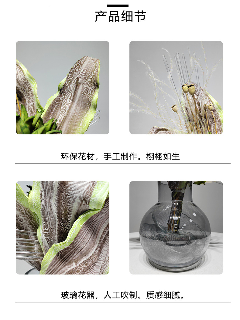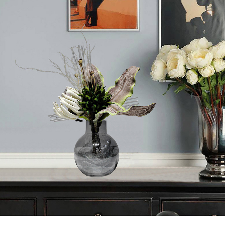현대 유리 꽃병 꽃꽂이 인공 꽃 거실 홈 부드러운 장식 식탁 장식 꽃 녹색 식물 장식