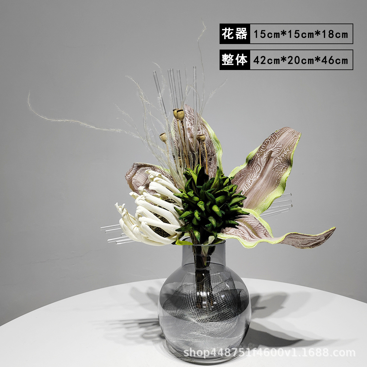 현대 유리 꽃병 꽃꽂이 인공 꽃 거실 홈 부드러운 장식 식탁 장식 꽃 녹색 식물 장식스토어 가기