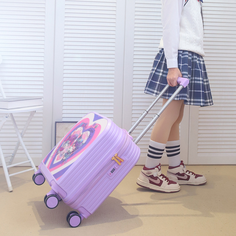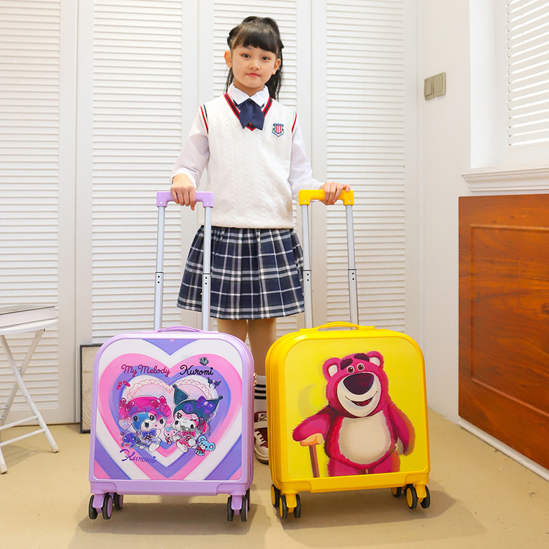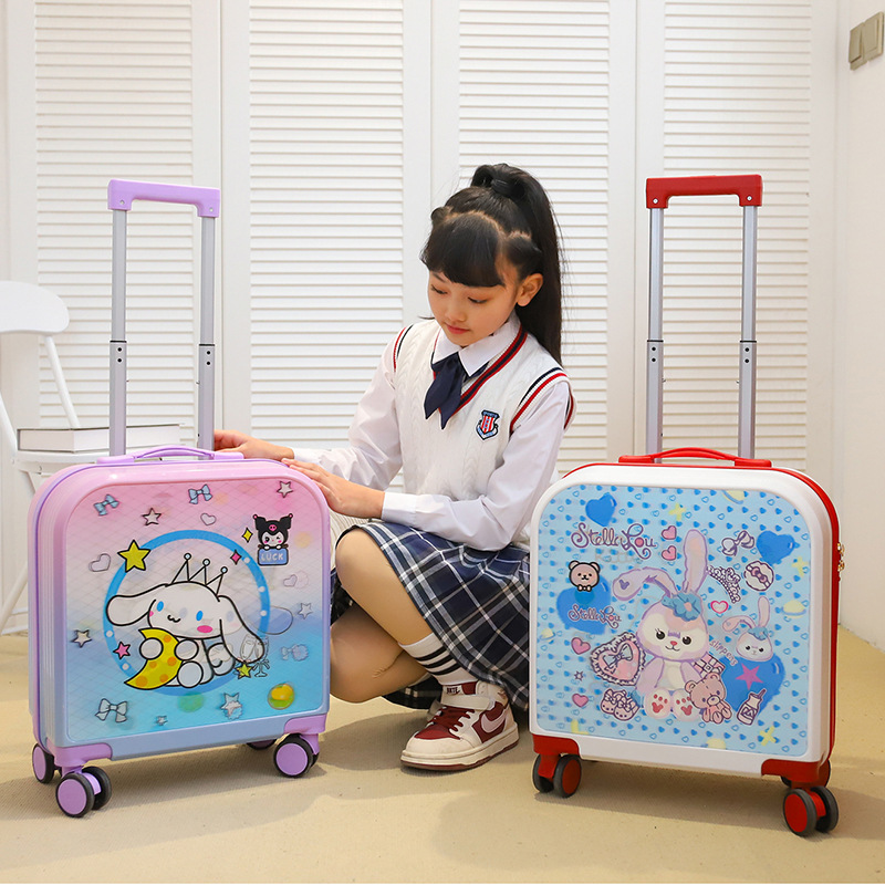 새로운 3D 가변 그림 어린이 수하물 케이스 그라디언트 컬러 음소거 유니버설 휠 어린이 트롤리 케이스 놀이 가방스토어 가기