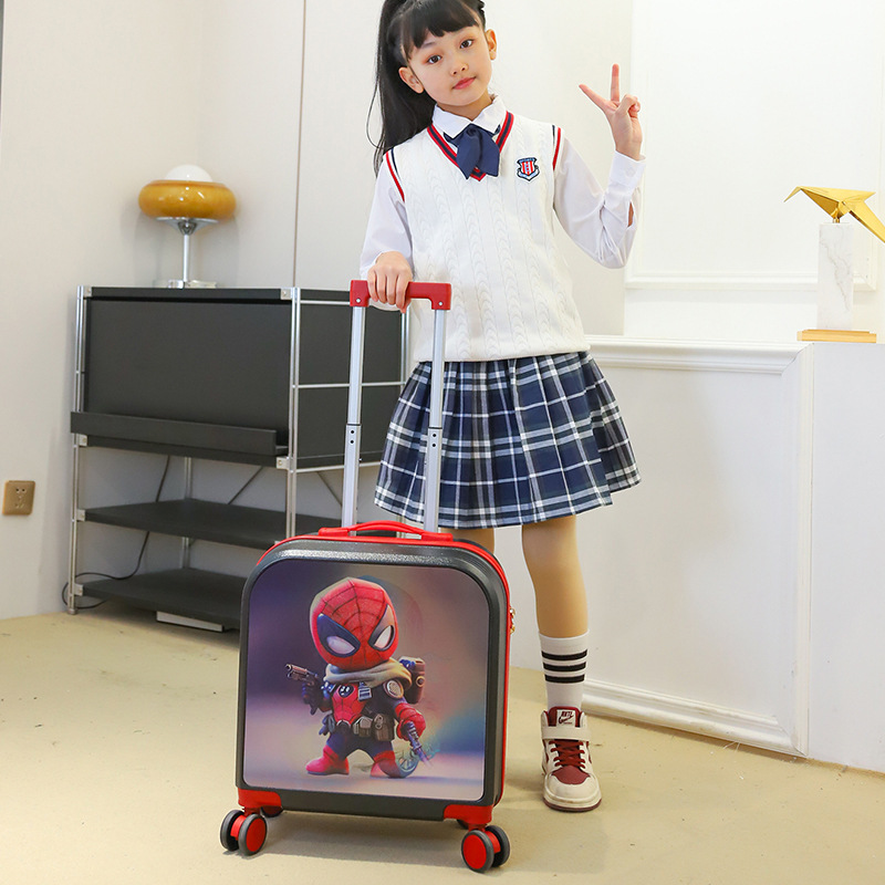 새로운 3D 가변 그림 어린이 수하물 케이스 그라디언트 컬러 음소거 유니버설 휠 어린이 트롤리 케이스 놀이 가방