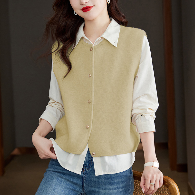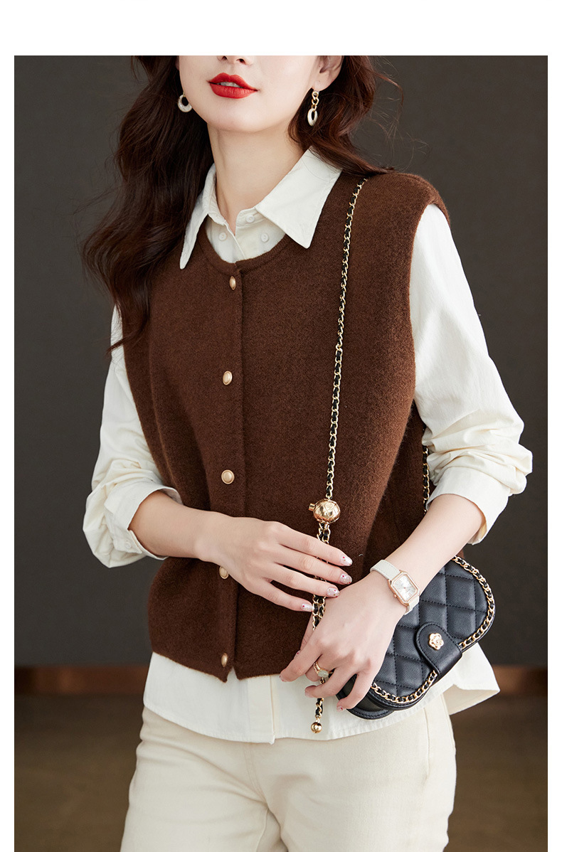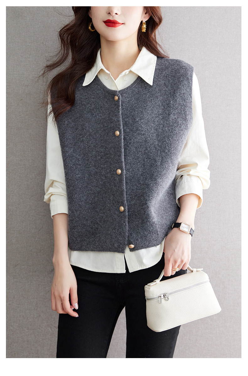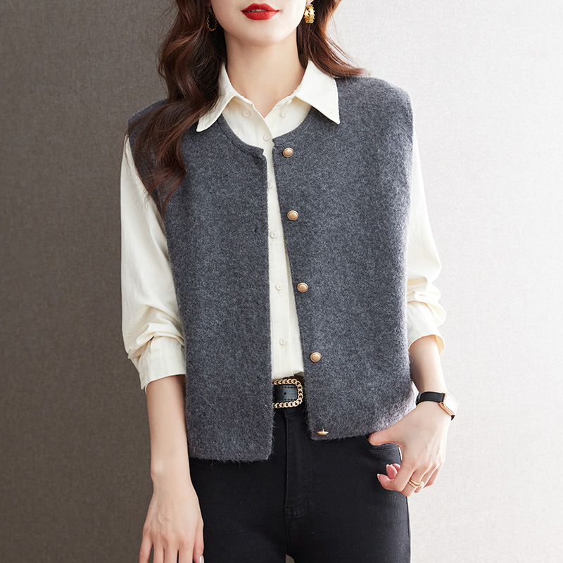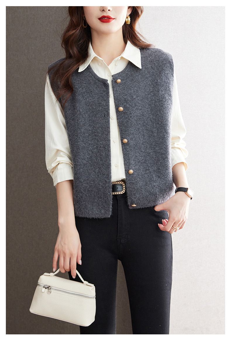 공장 직판 라운드넥 민소매 조끼 2026 봄 가디건 레이어드 조끼 가을 겨울 여성용 따뜻한 스웨터 자켓 니트