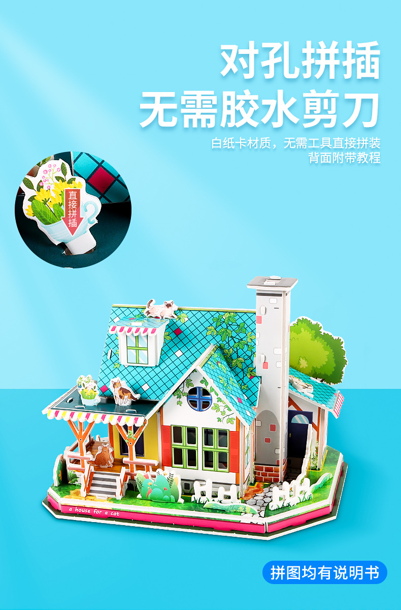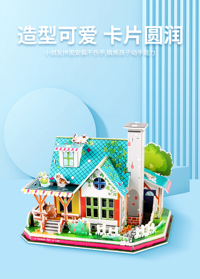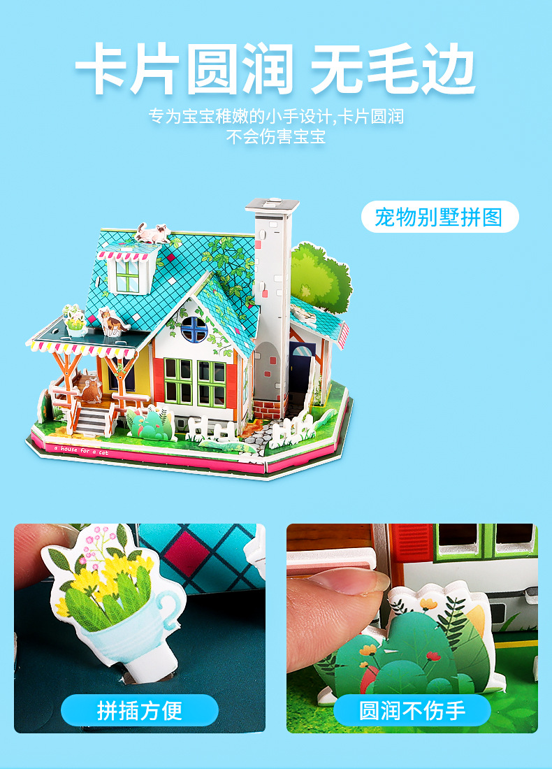3D 3D 퍼즐 애완 동물 빌라 어린이 교육 조기 교육 장난감 퍼즐 퍼즐 모델스토어 가기