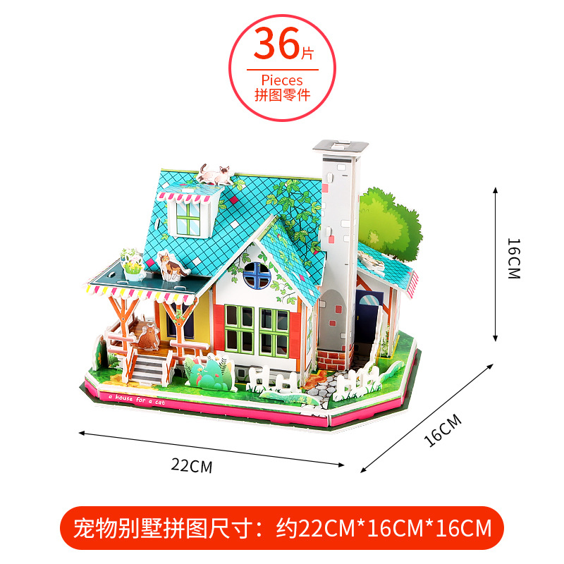 3D 3D 퍼즐 애완 동물 빌라 어린이 교육 조기 교육 장난감 퍼즐 퍼즐 모델