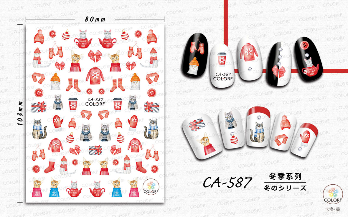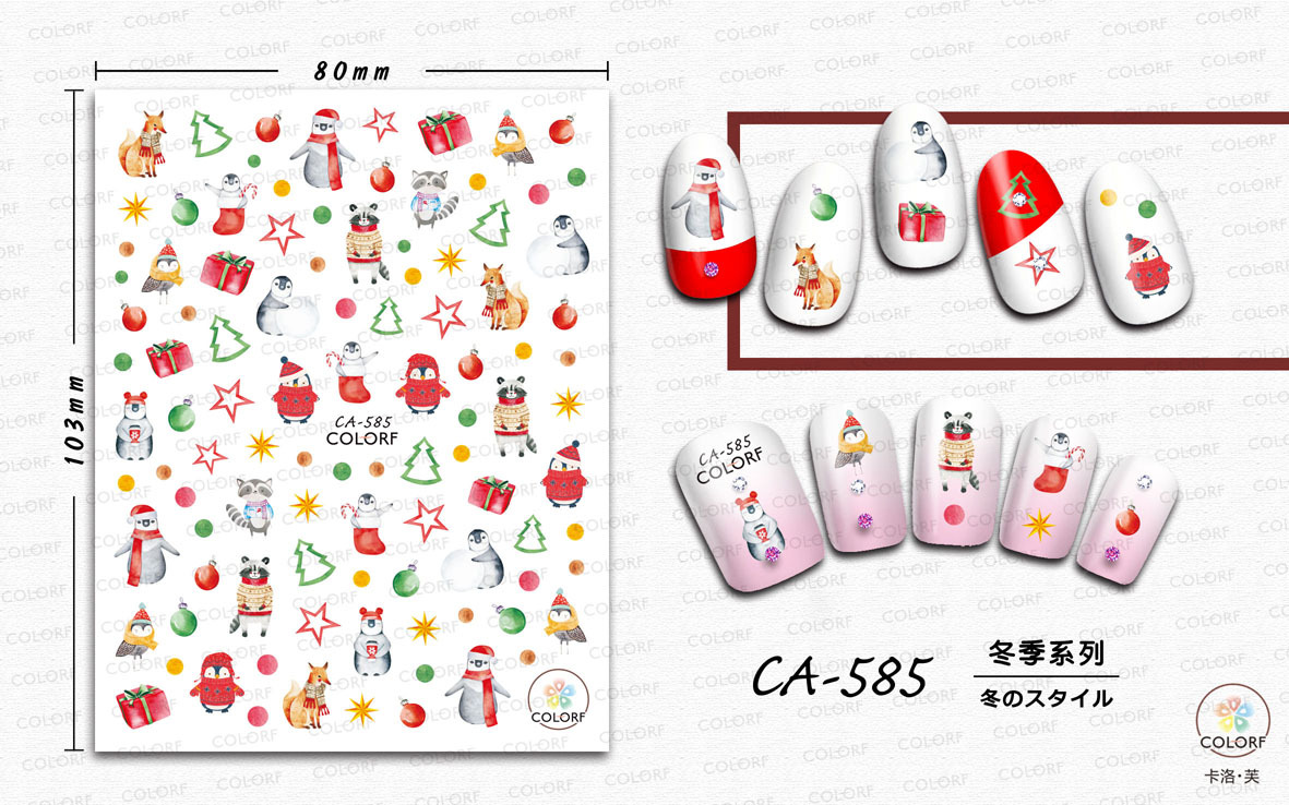 2024 인기있는 CA 시뮬레이션 네일 스티커 크리스마스 귀여운 만화 눈송이 네일 스티커 대외 무역 핫 세일스토어 가기