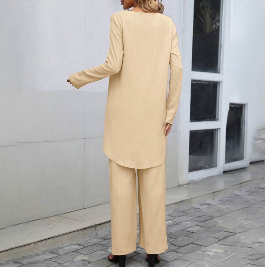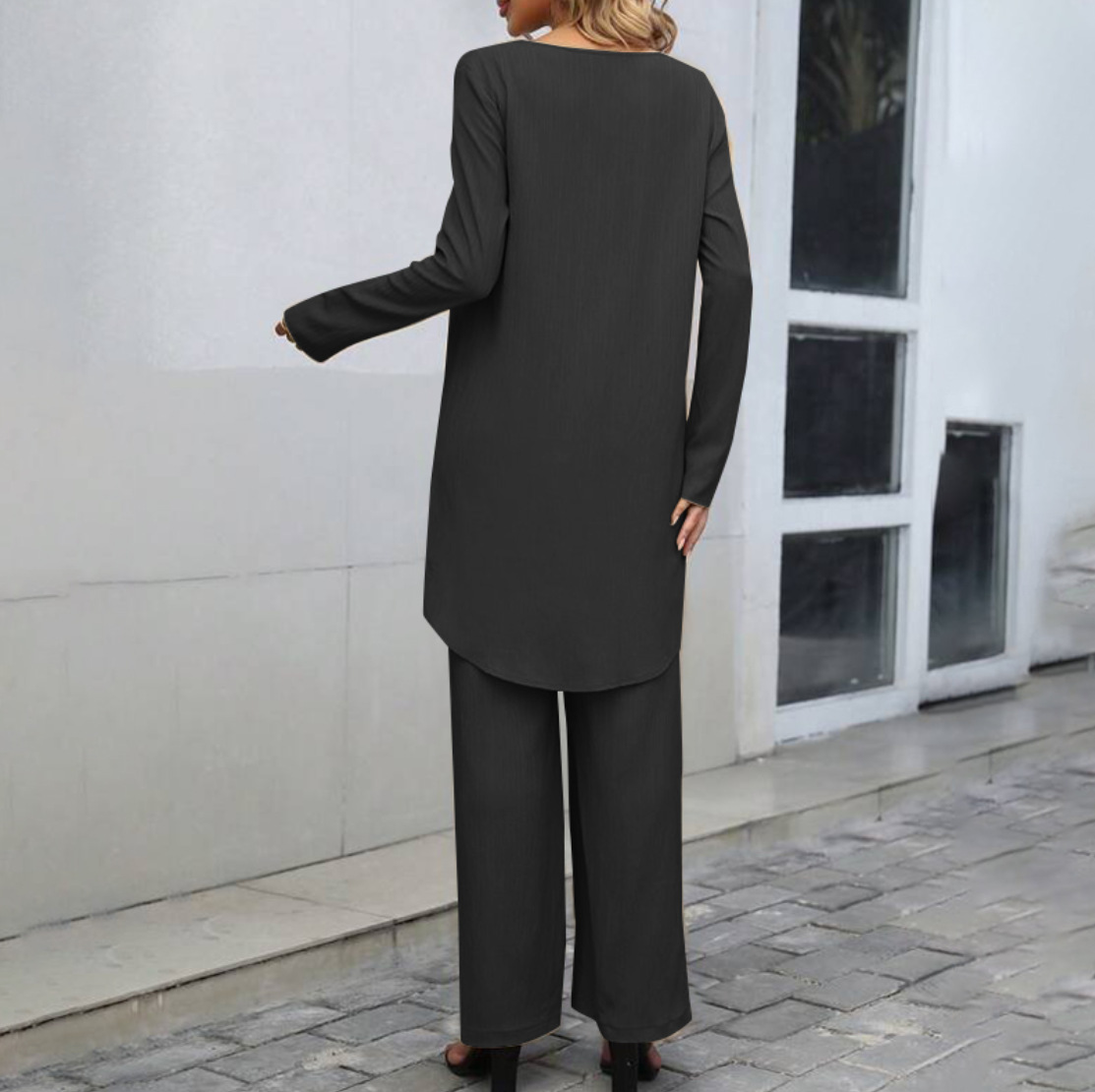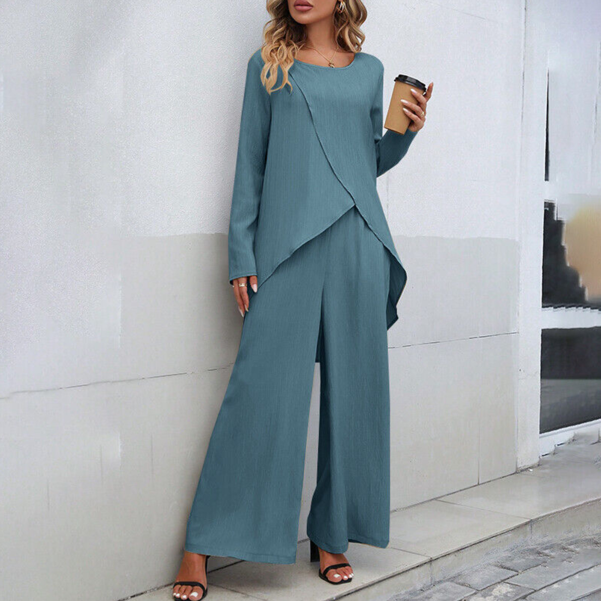 재고 가을 국경을 넘는 유럽과 미국의 대외 무역 여성의 긴 소매 불규칙한 밑단 상단 탄성 허리 와이드 다리 바지스토어 가기