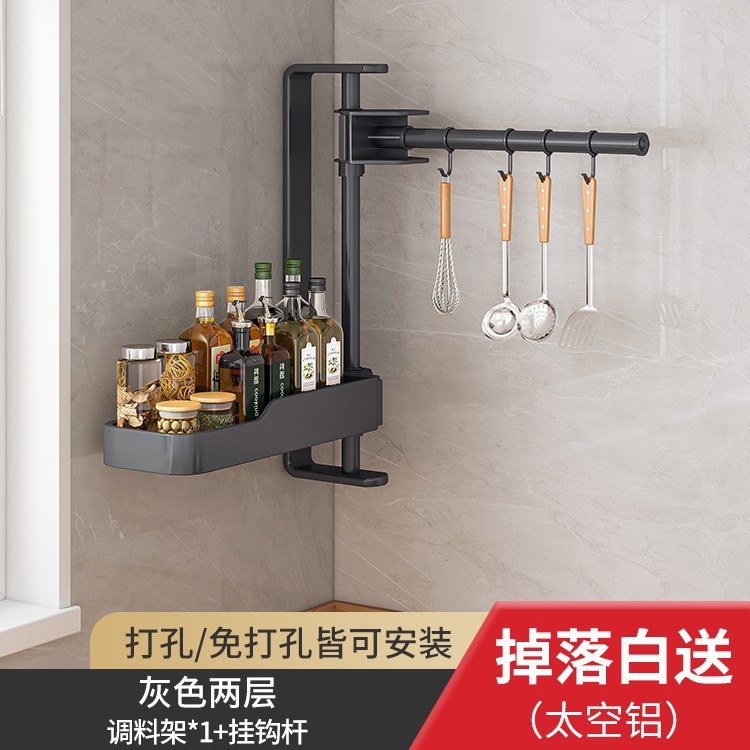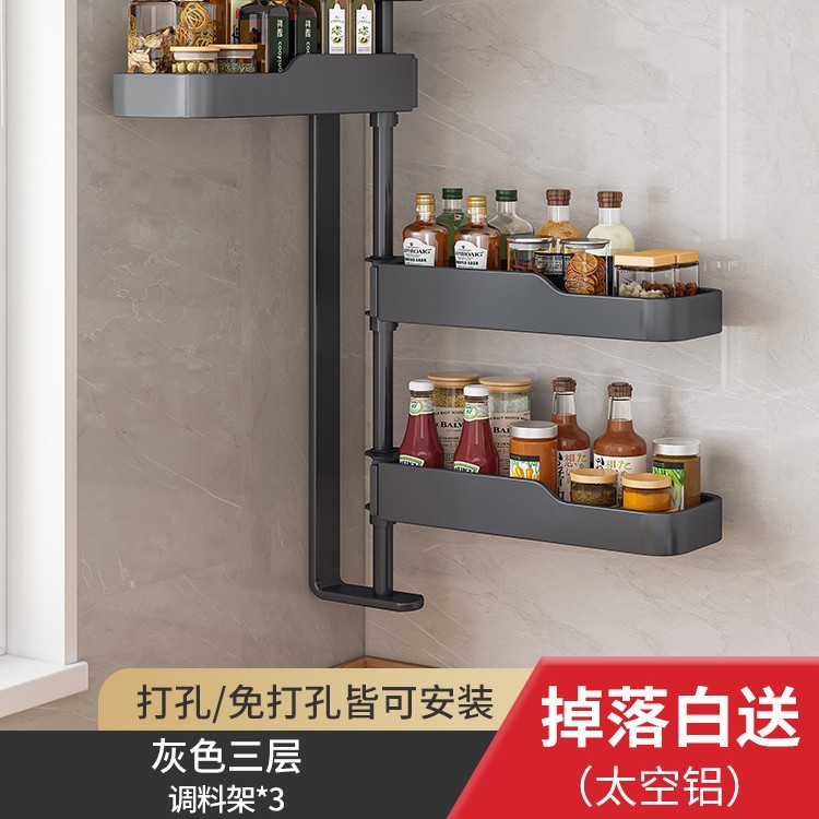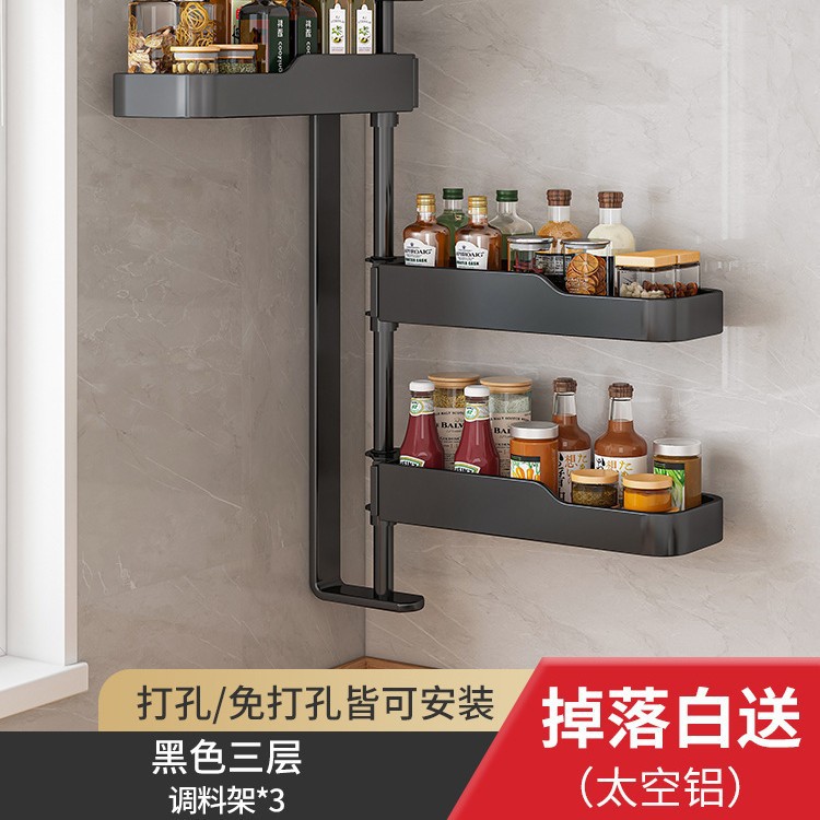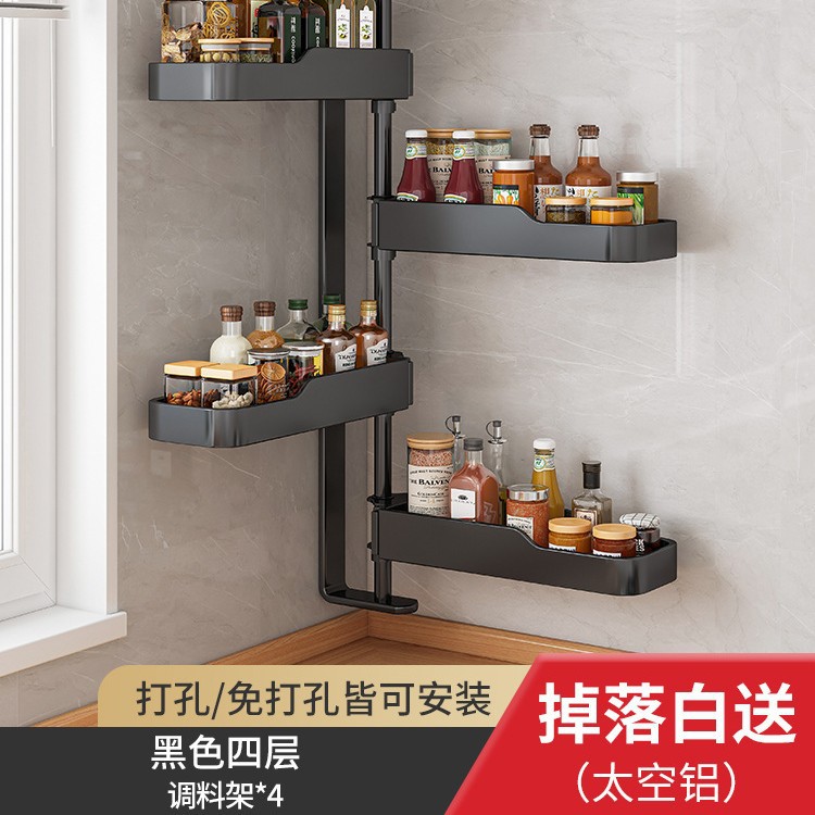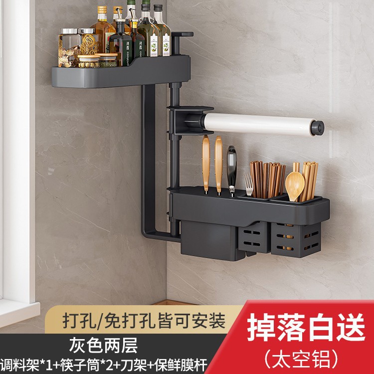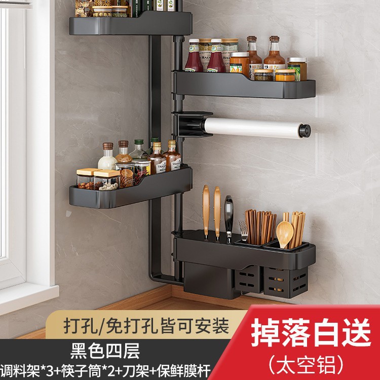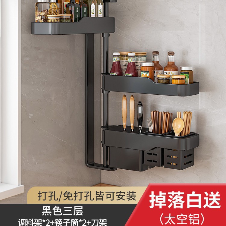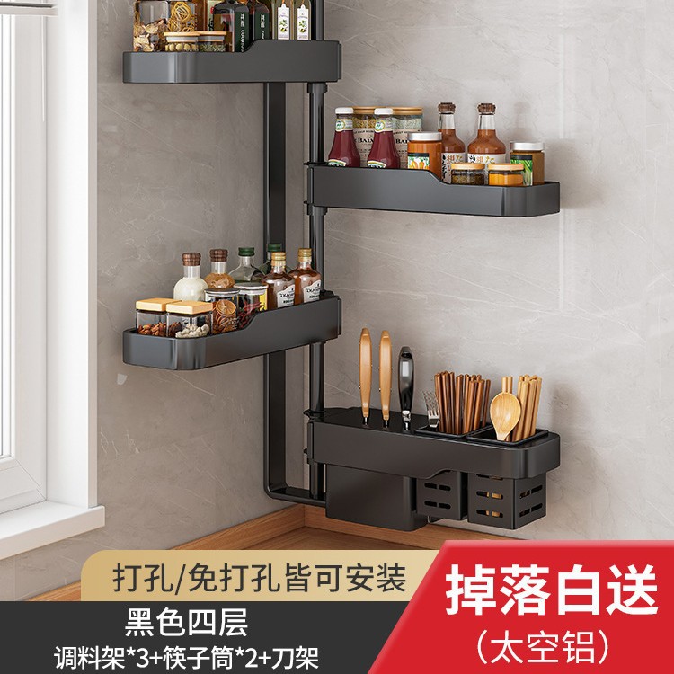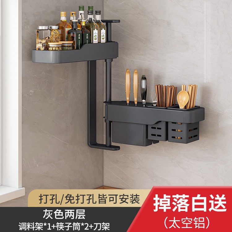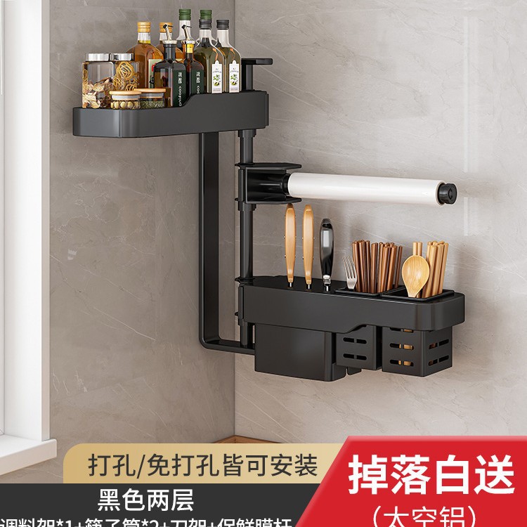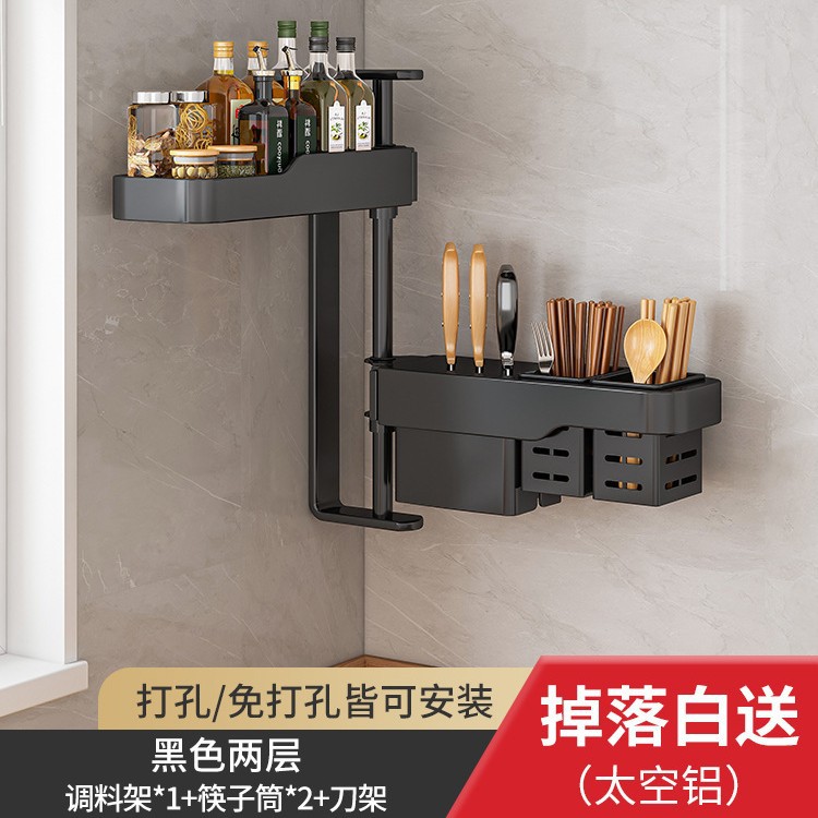 주방 회전 조미료 보관 선반 가정용 용품 나이프 홀더 젓가락 선반 조미료 펀치 프리 벽 장착 보관 랙스토어 가기