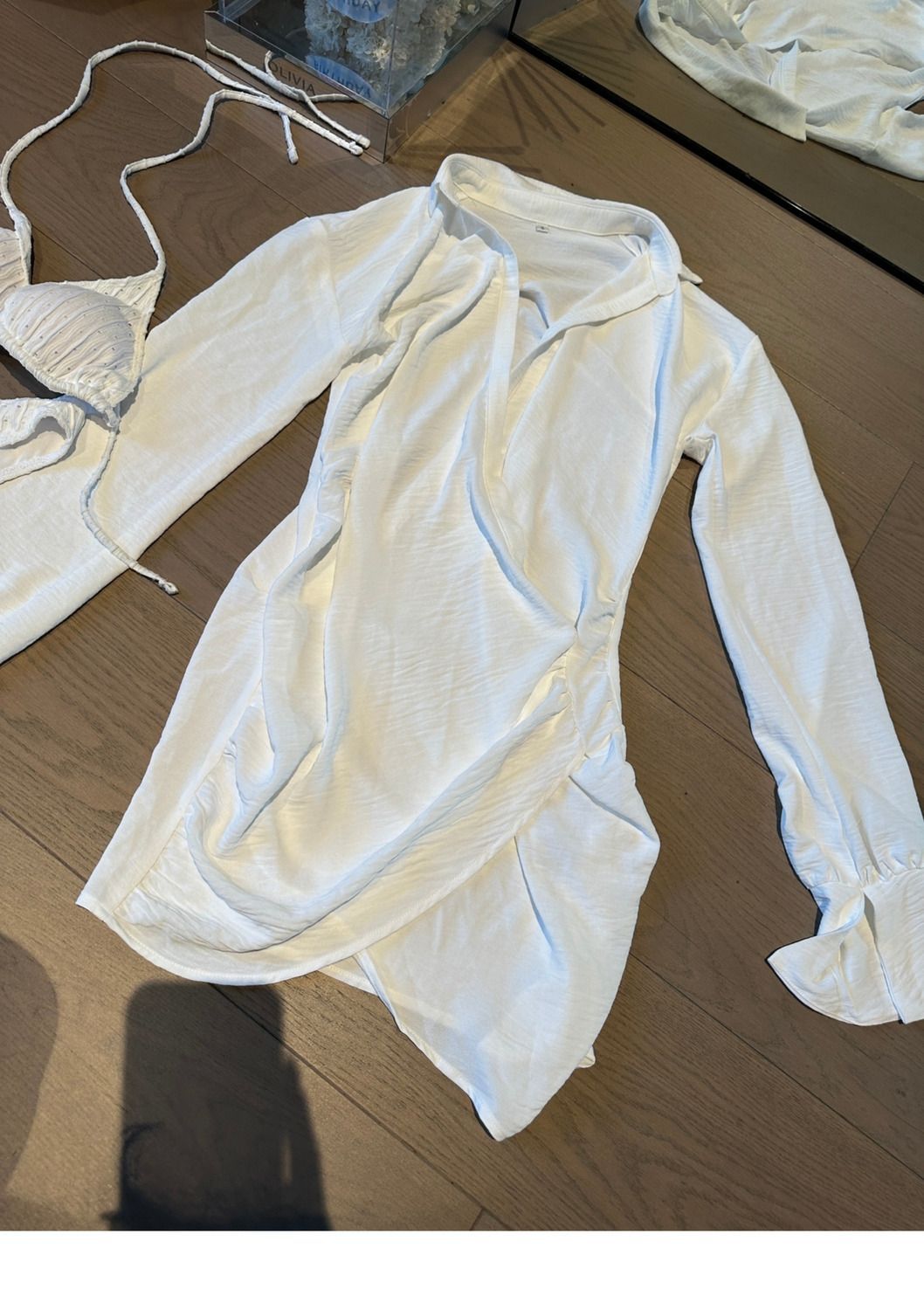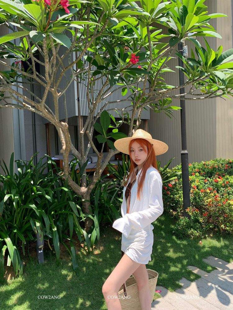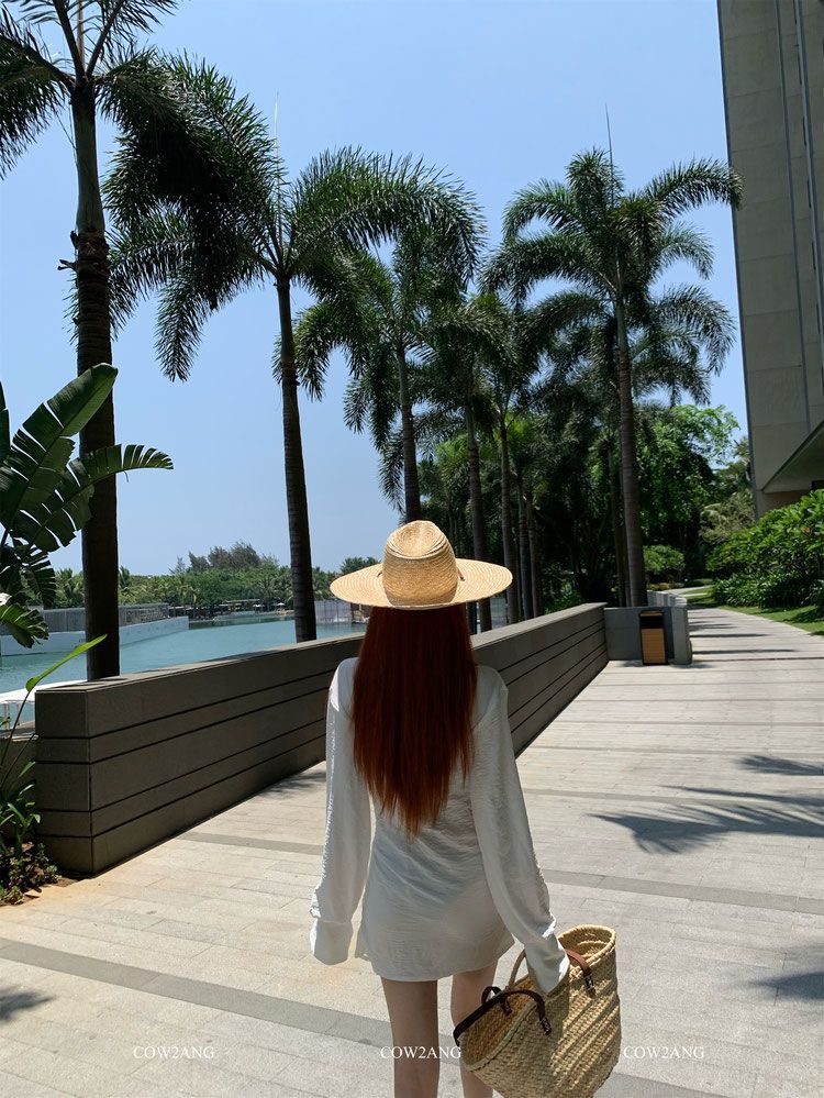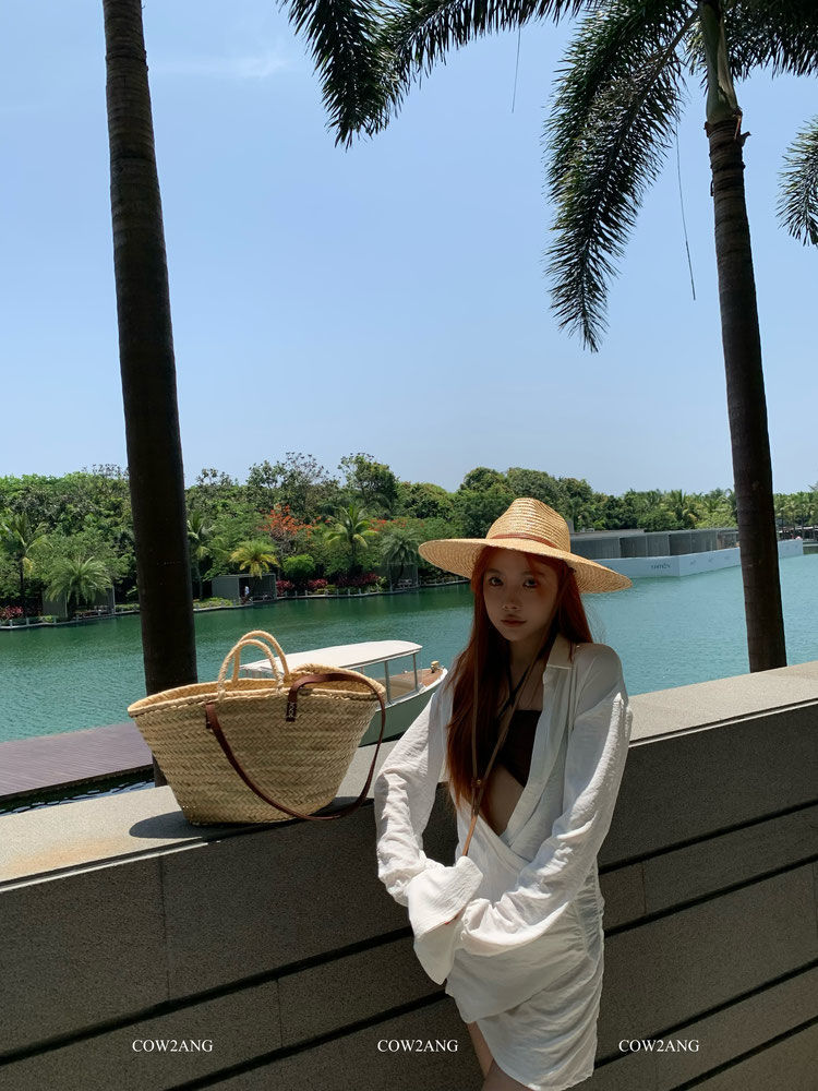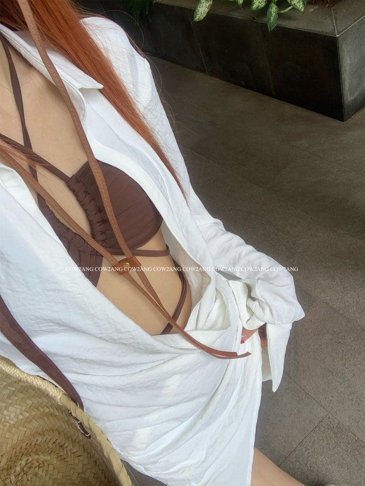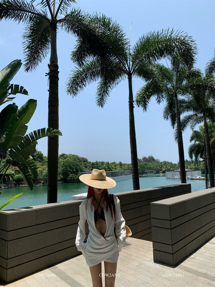 에 해변 해변 휴가 비키니 셔츠 스커트 수영복 여성 3 피스 세트 배꼽 덮음 인터넷 유명인 작은 가슴 더운 여름스토어 가기