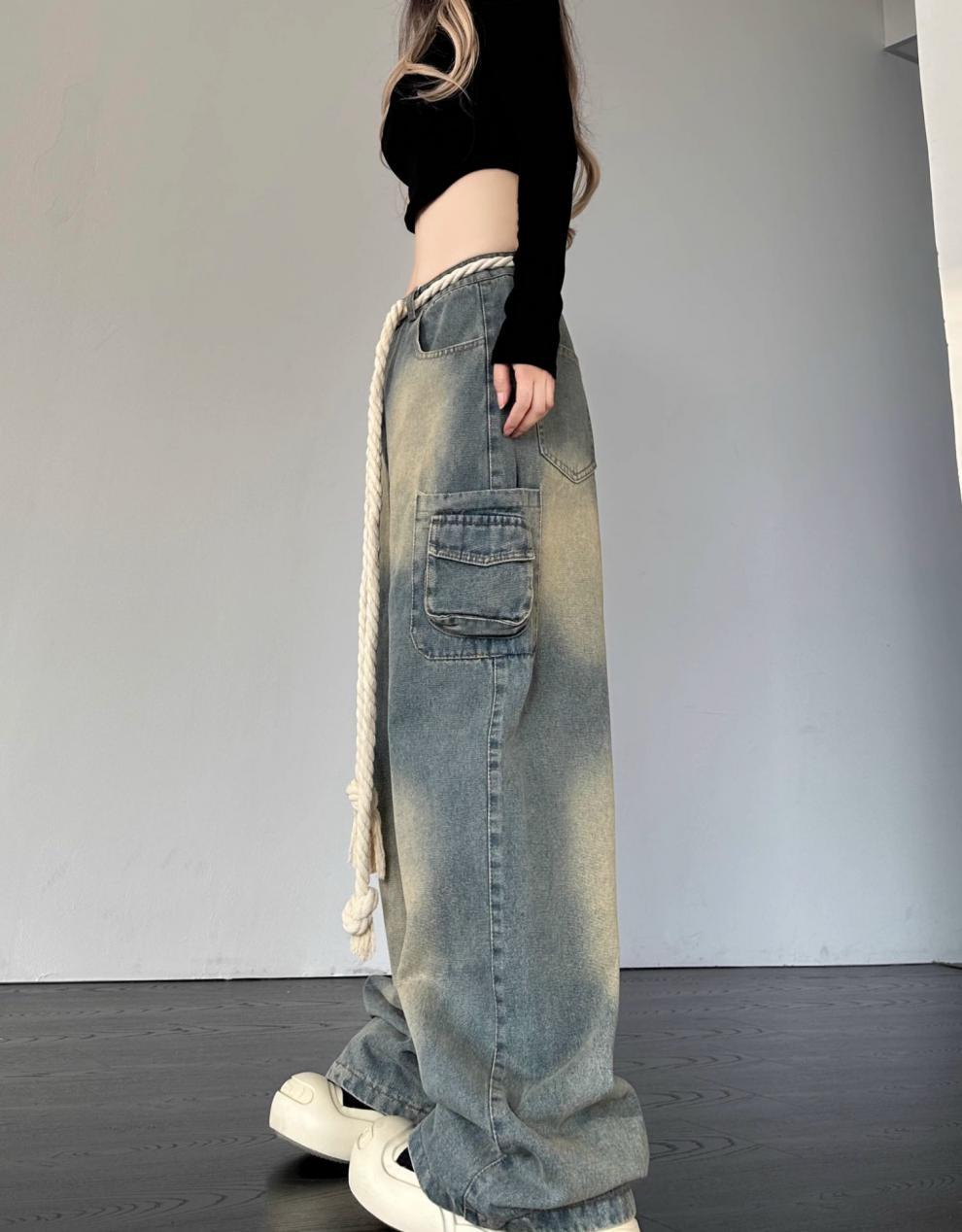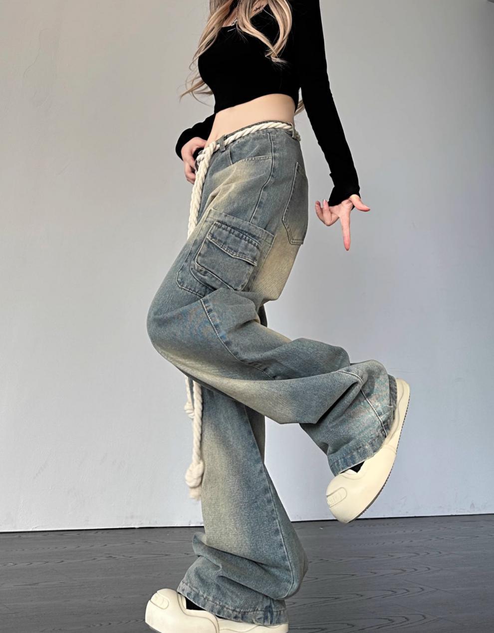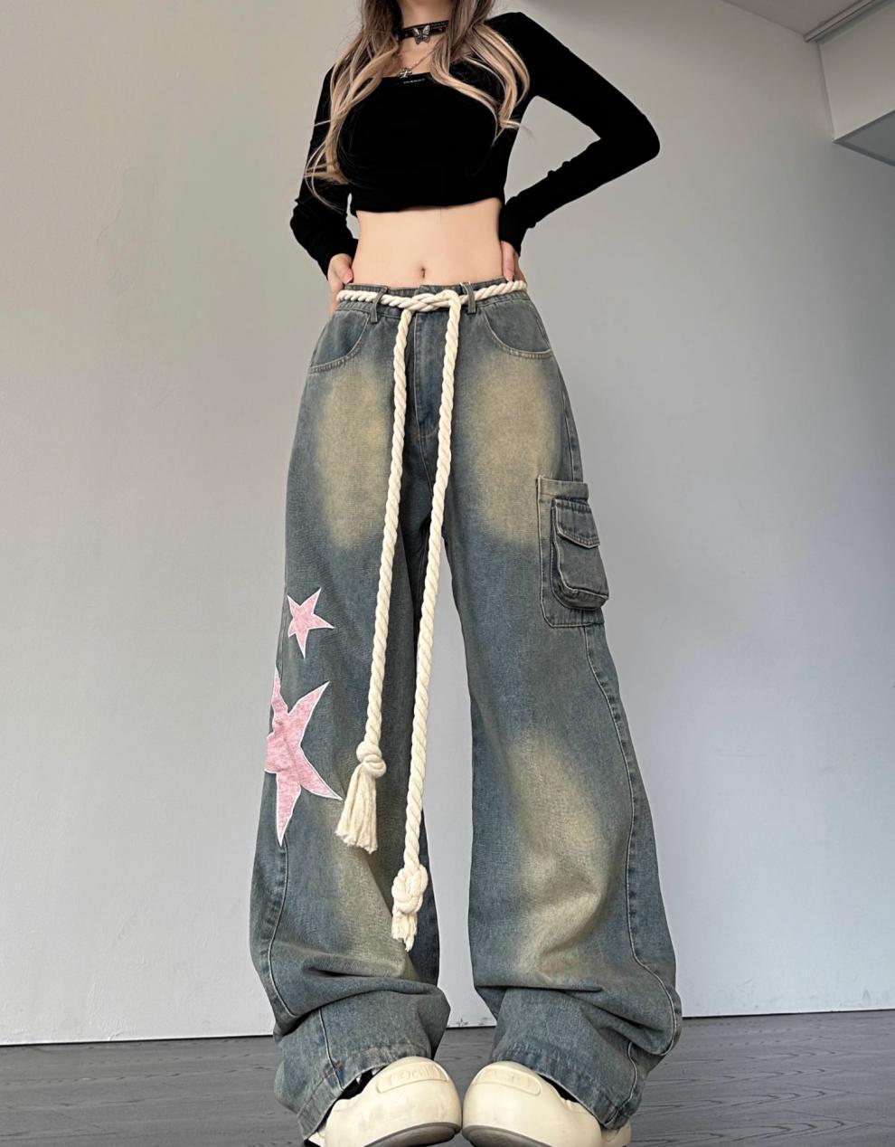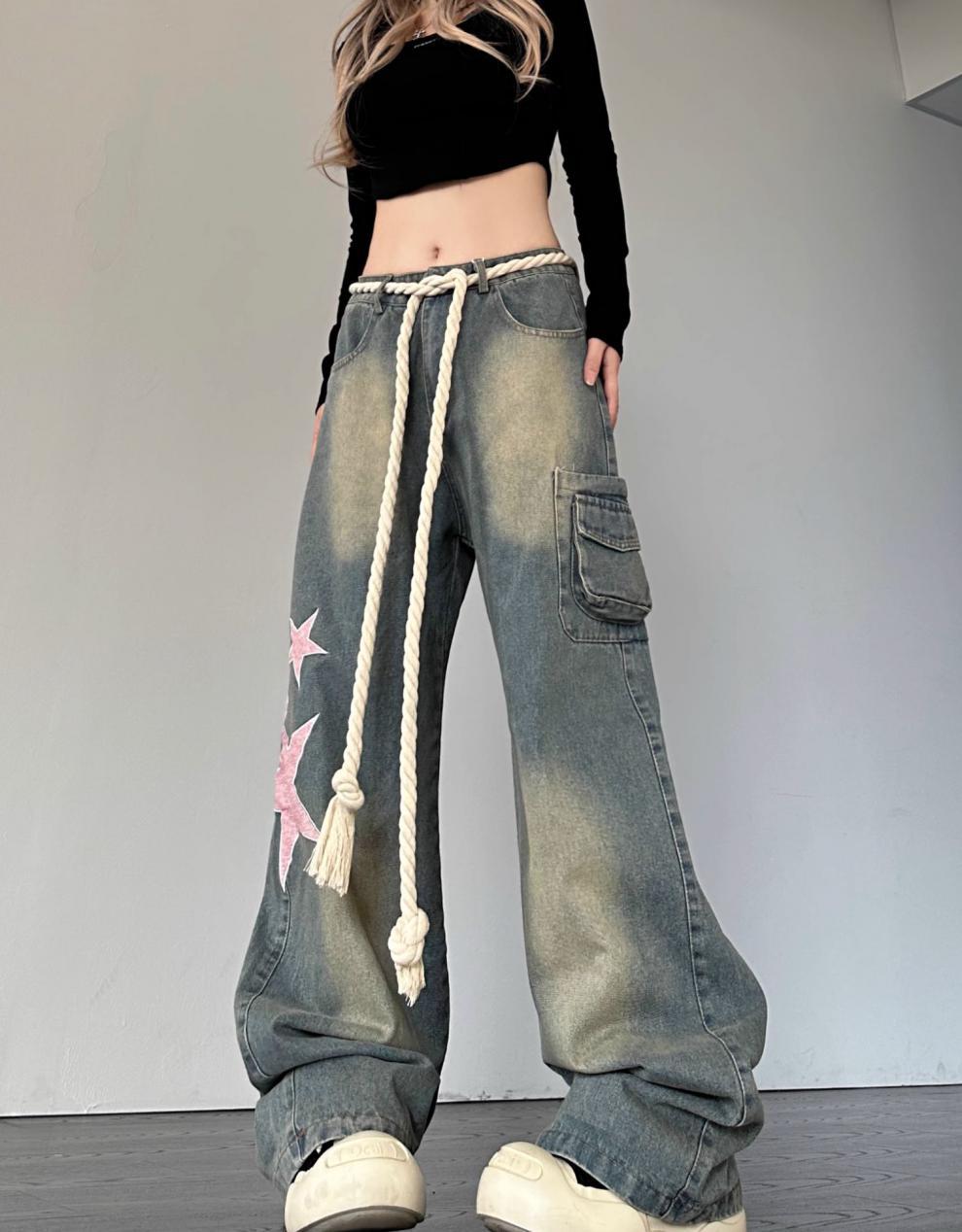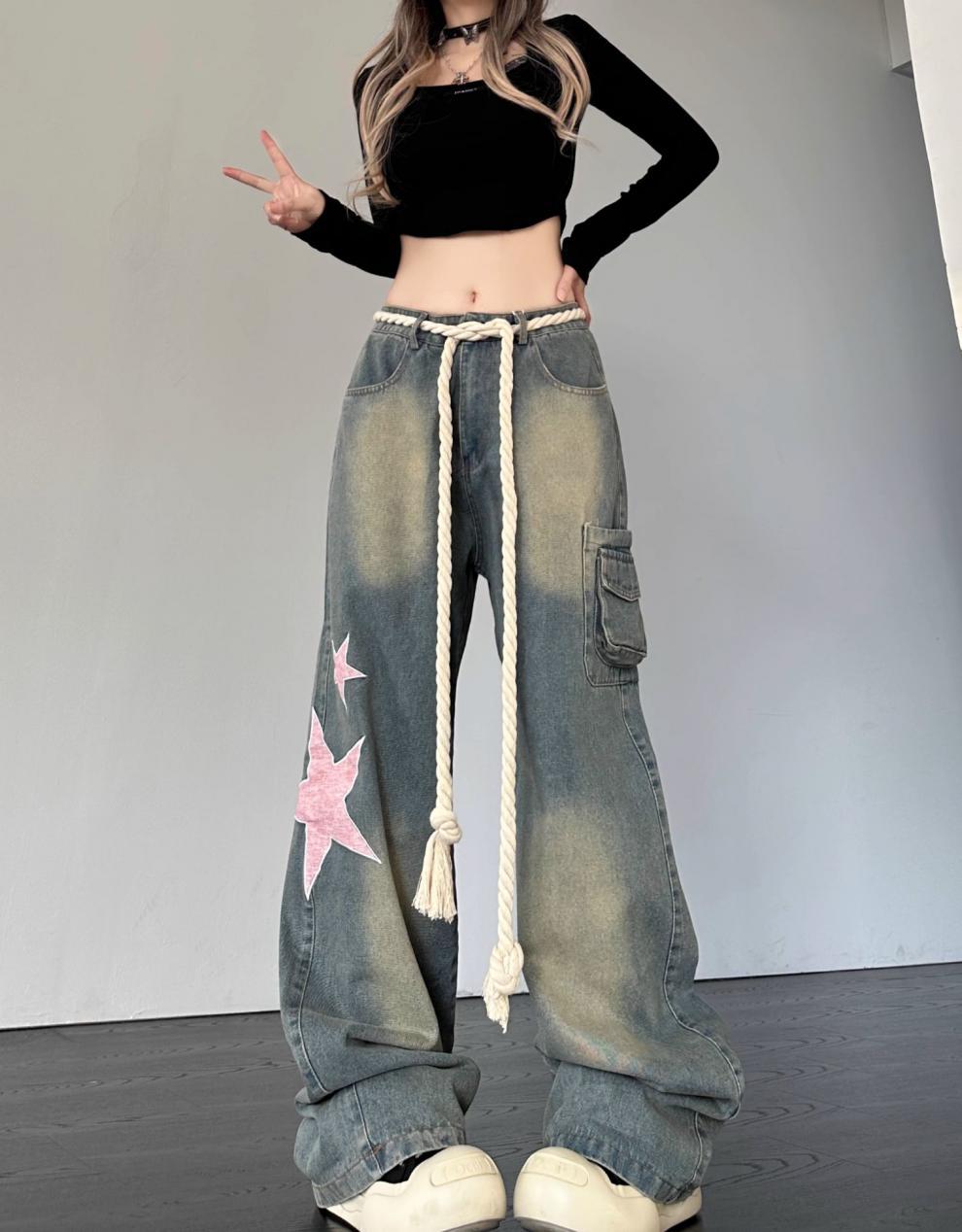 크로스 보더 아메리칸 레트로 스타 패치 디자인 청바지 여성 도파민 스트레이트 느슨한 슬리밍 틈새 바지스토어 가기