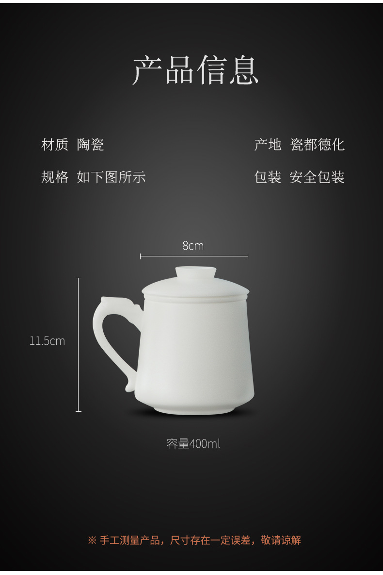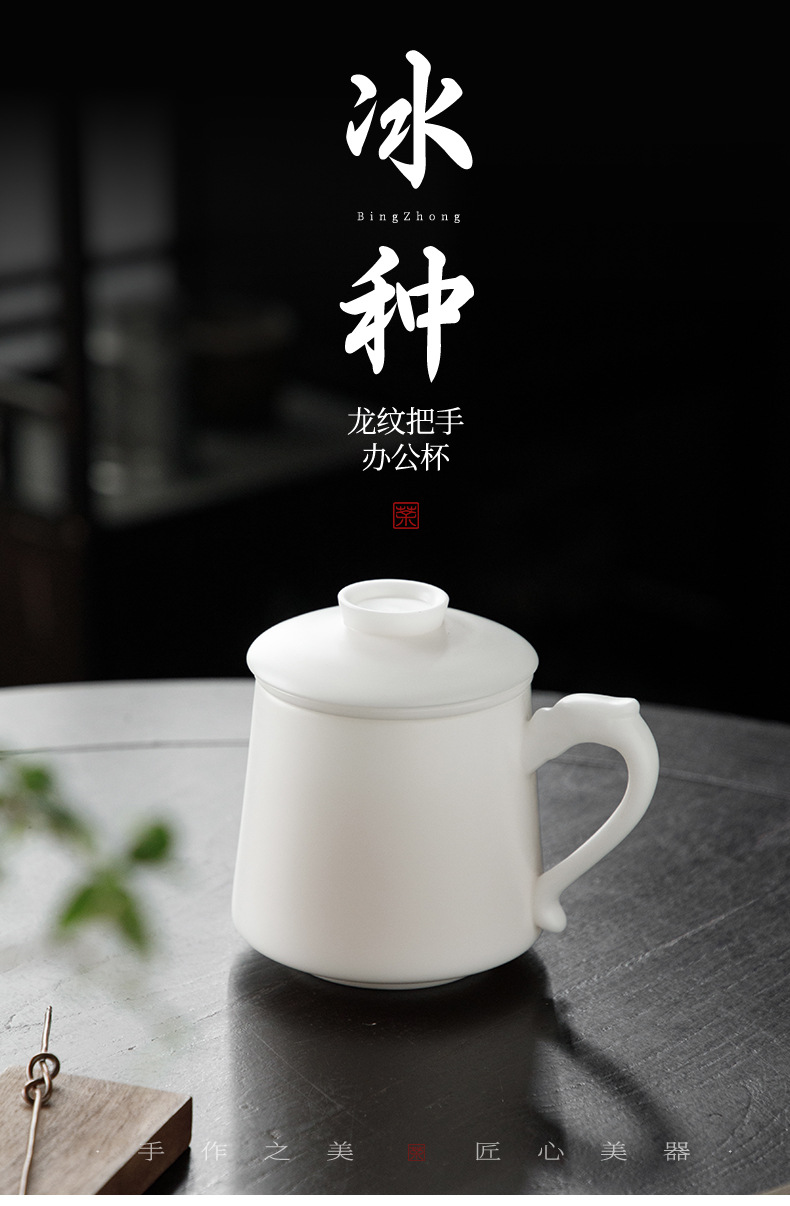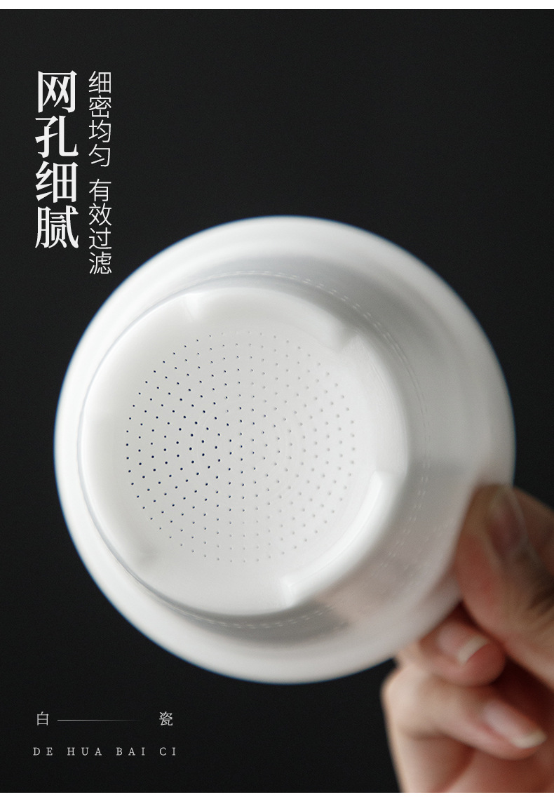 얼음 옥 도자기 사무실 컵 Dehua 흰색 도자기 차 분리 차 컵 뚜껑 필터 비즈니스 선물 세트 로고스토어 가기