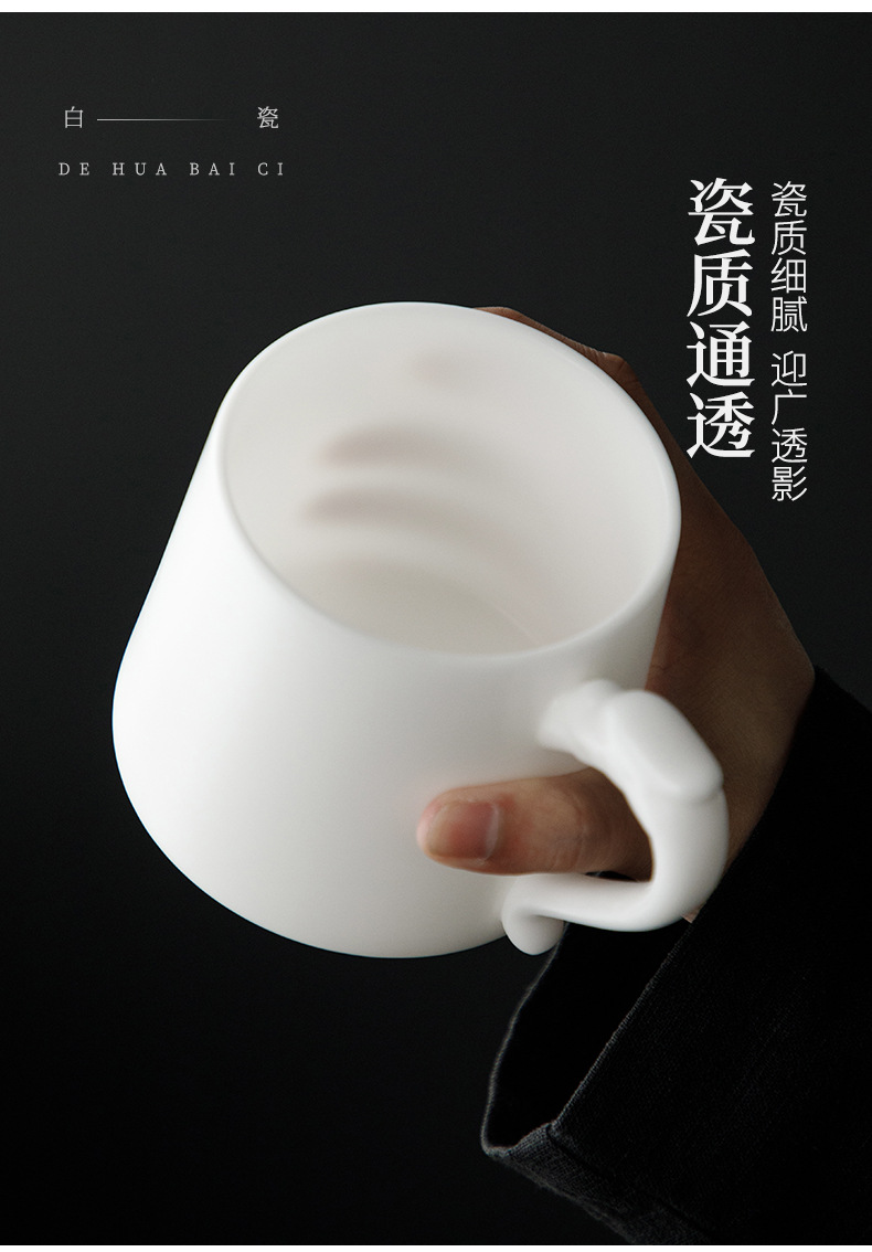 얼음 옥 도자기 사무실 컵 Dehua 흰색 도자기 차 분리 차 컵 뚜껑 필터 비즈니스 선물 세트 로고