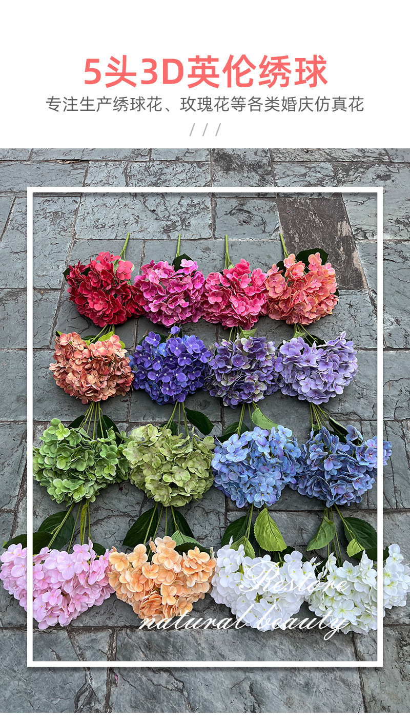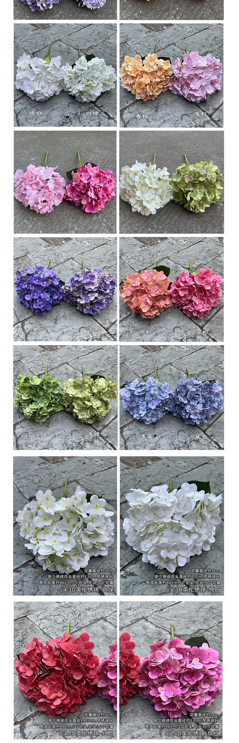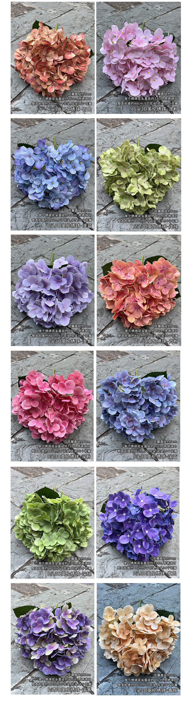 해외 무역 3D 무리 수국 공장 5 3D 영국 수국 흰색 결혼식 도로 장식 가짜 꽃 도매